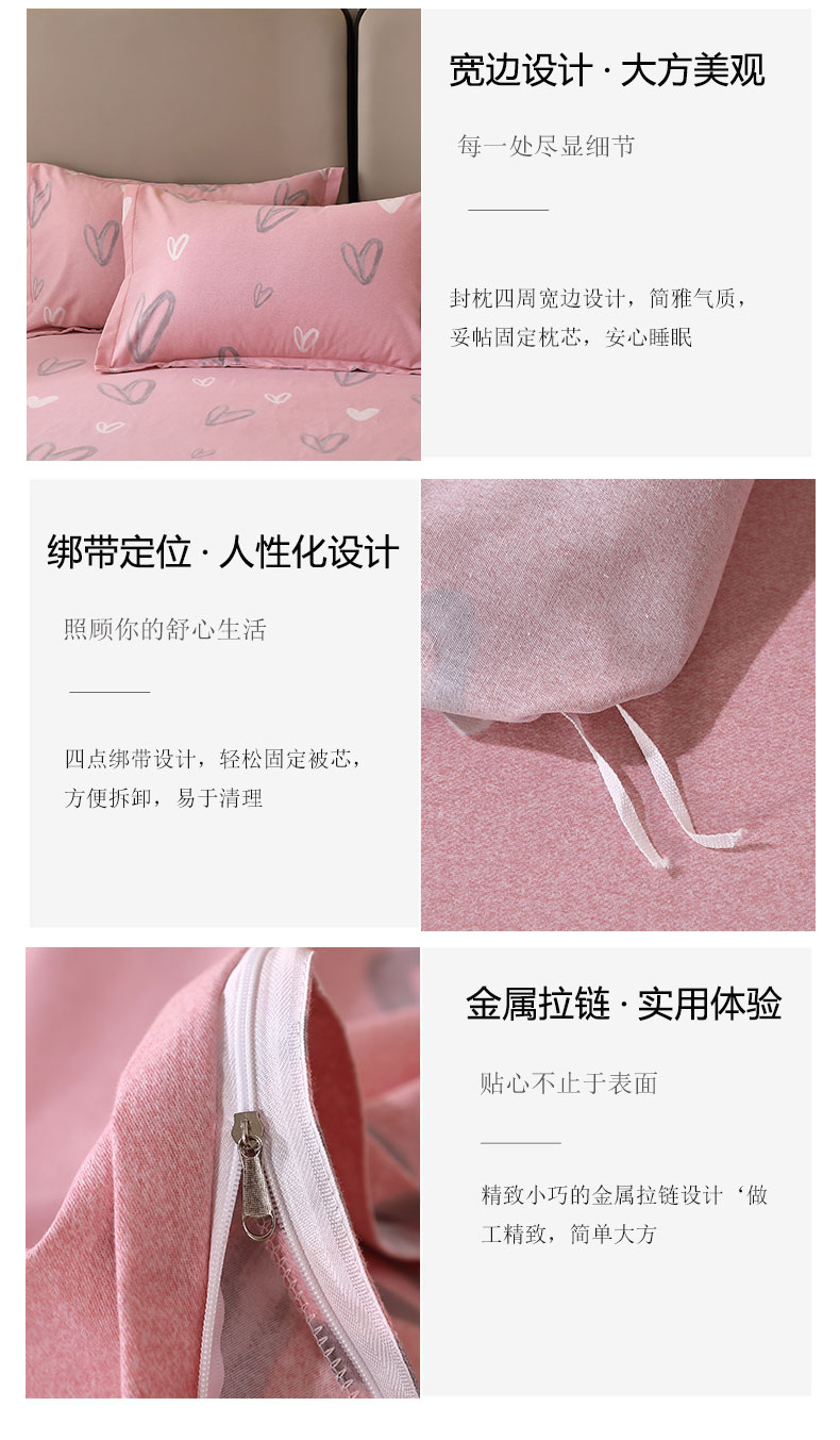 商品名称:馨雅家纺 2025新款全棉纯棉磨毛系列四件套 杉杉恋曲-粉