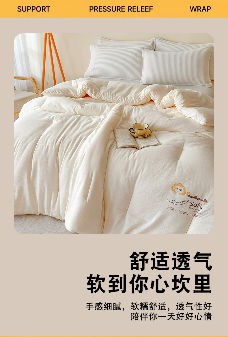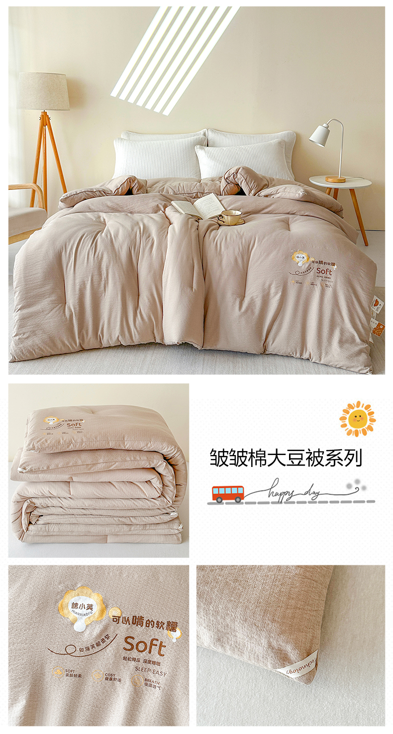 • 91家纺网 家纺一手货源 找家纺 (总)欧夏家纺 2025新款亲肤舒适皱皱棉小芙提花大豆被被子被芯,奶昔白,润粉色,雾银灰,香槟色