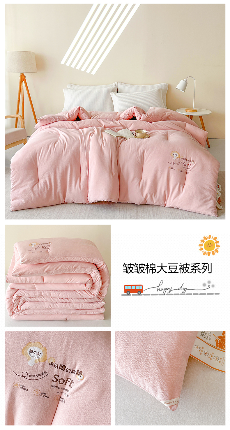 • 91家纺网 家纺一手货源 找家纺 欧夏家纺 2025新款亲肤舒适皱皱棉小芙提花大豆被被子被芯 润粉色