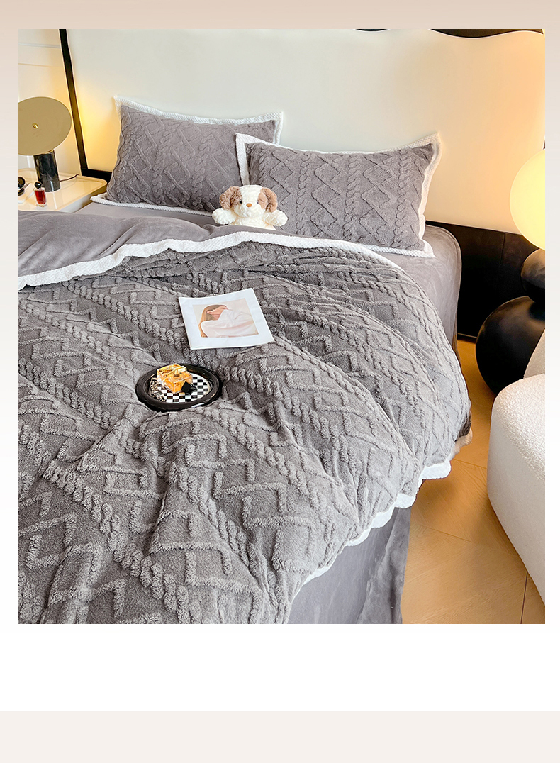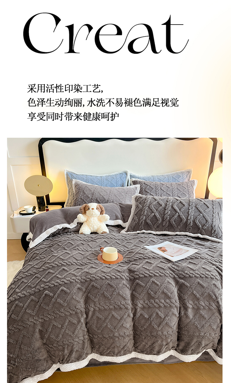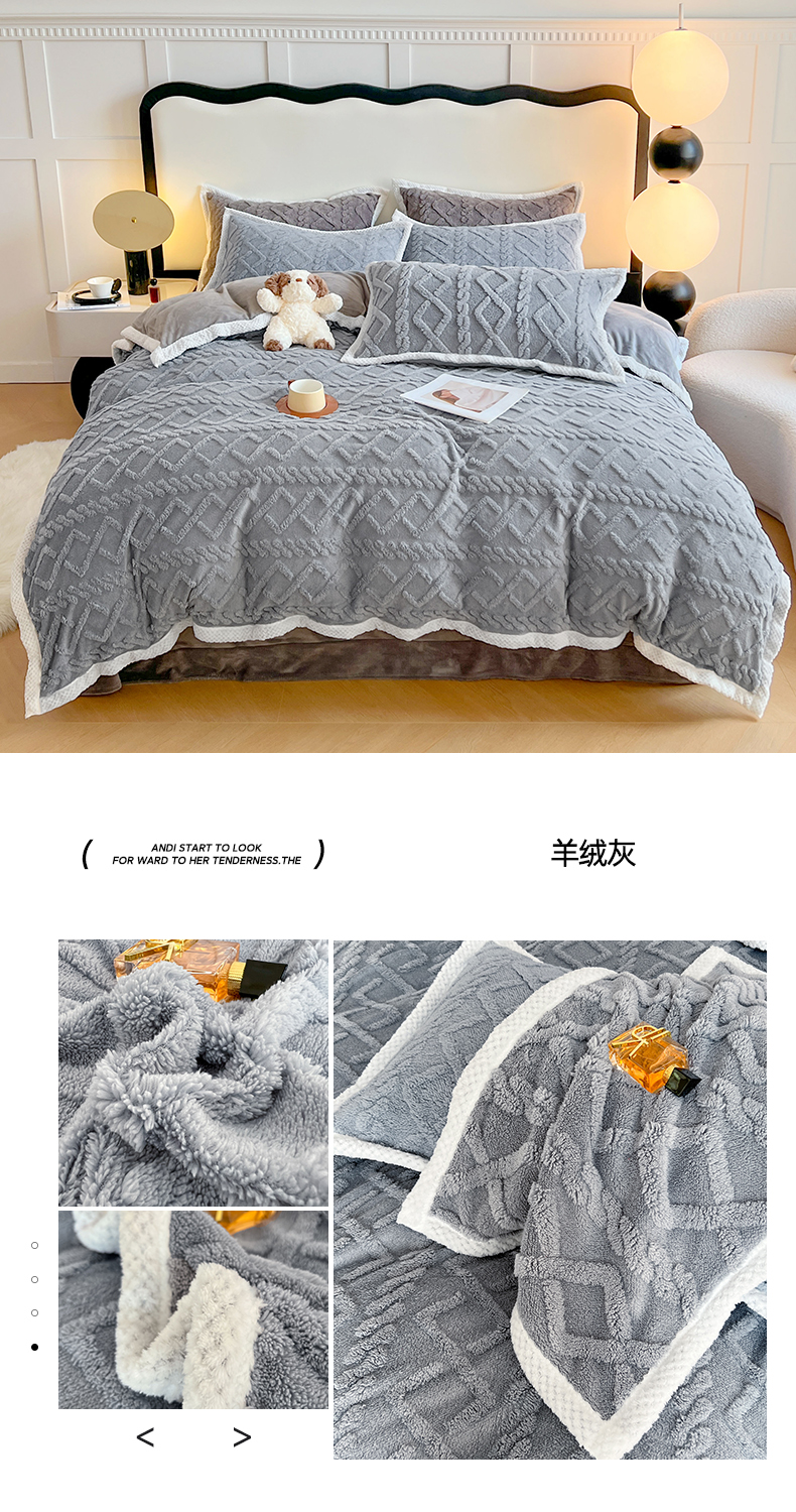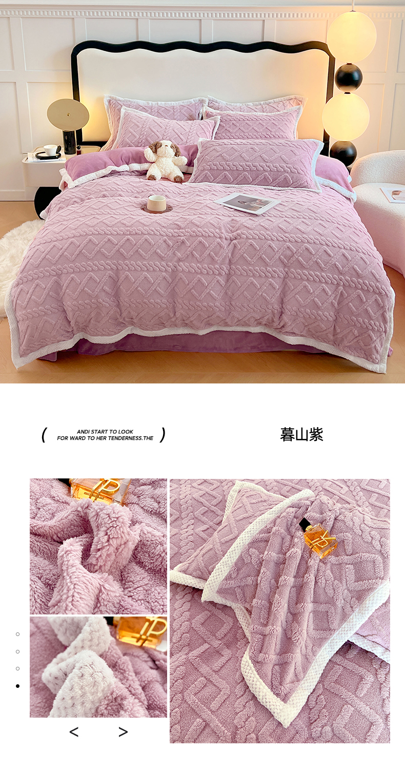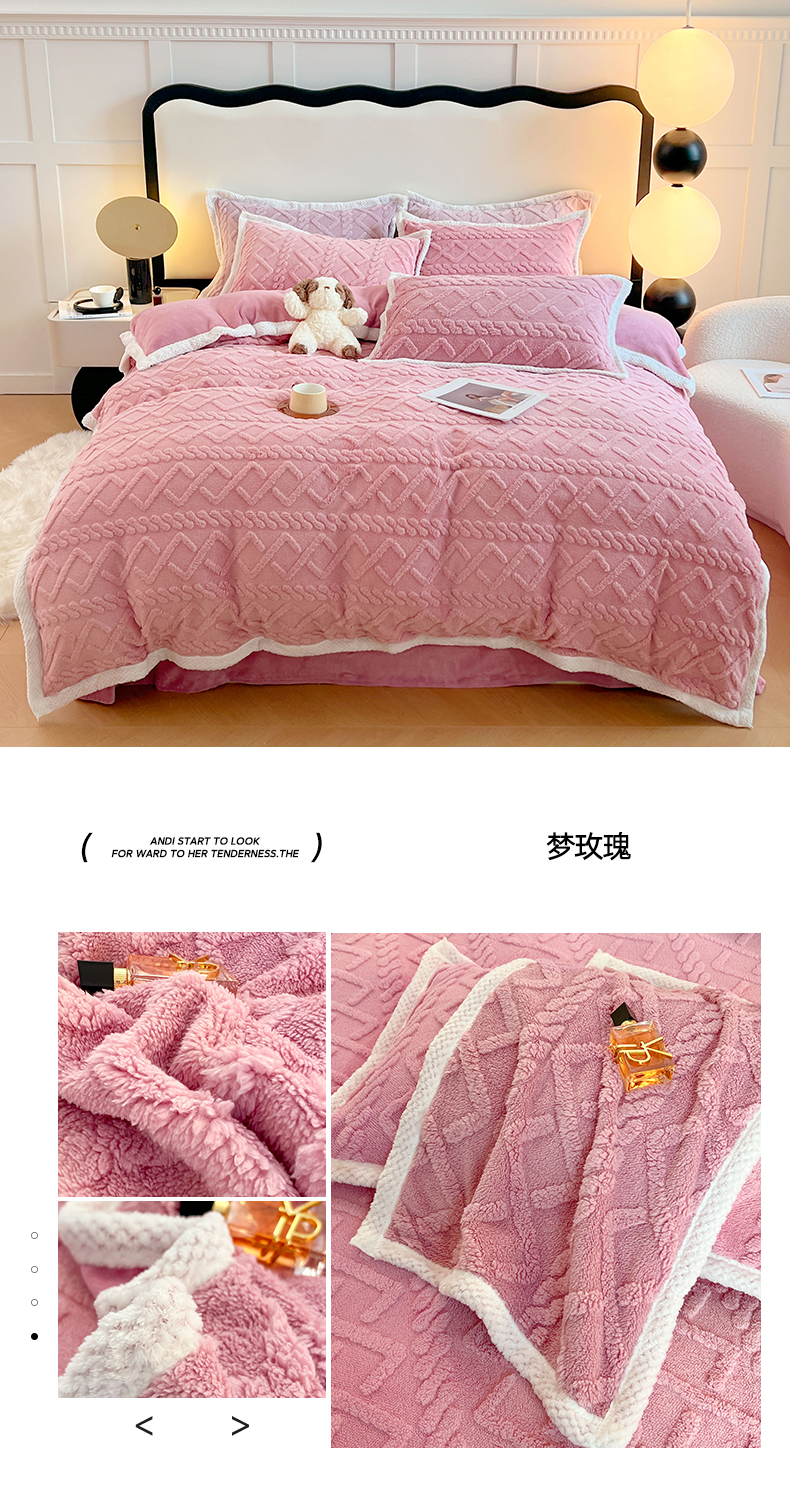 商品名称:悦织湾家纺 轻奢塔芙绒菱形格纯色牛奶绒四件套2025新款床上用品加厚保暖4件套 梦玫瑰