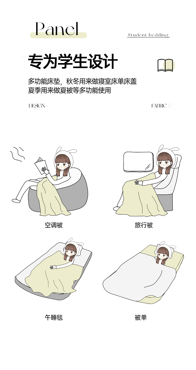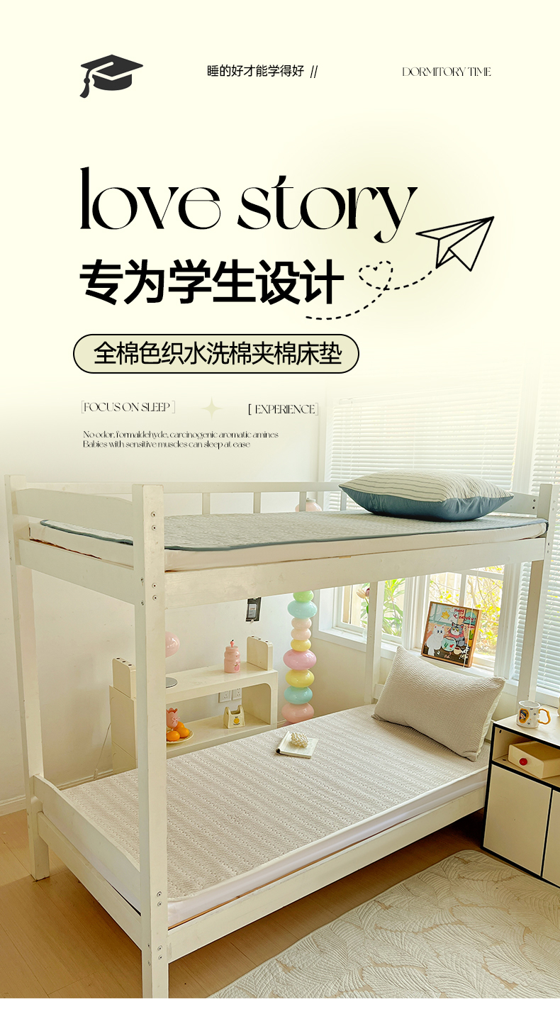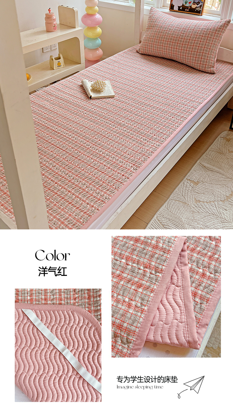 • 91家纺网 家纺一手货源 找家纺 乐野家居 2025热款学生床全棉色织水洗棉夹棉多功能床垫-床盖 流年米咖