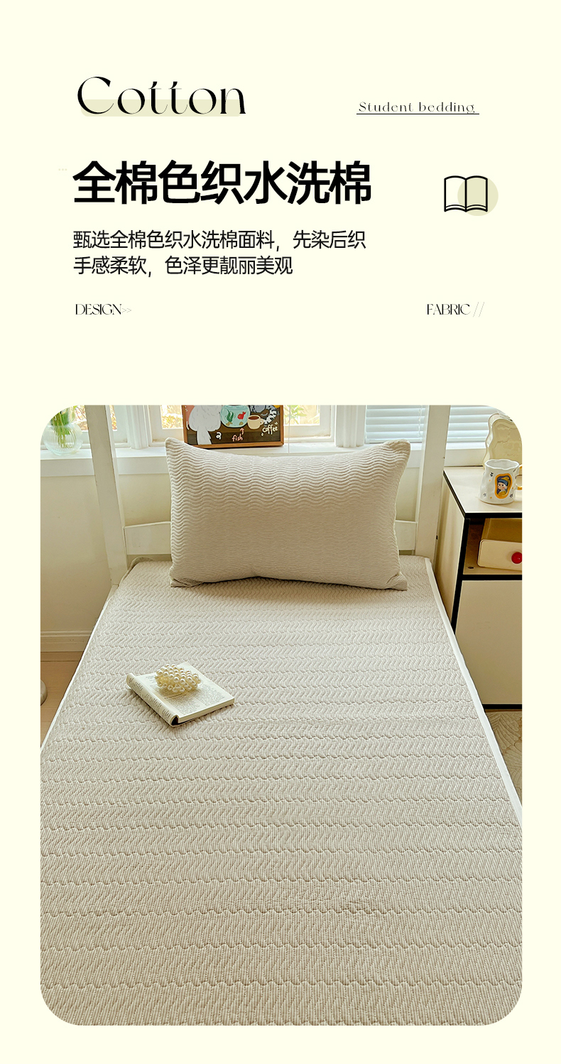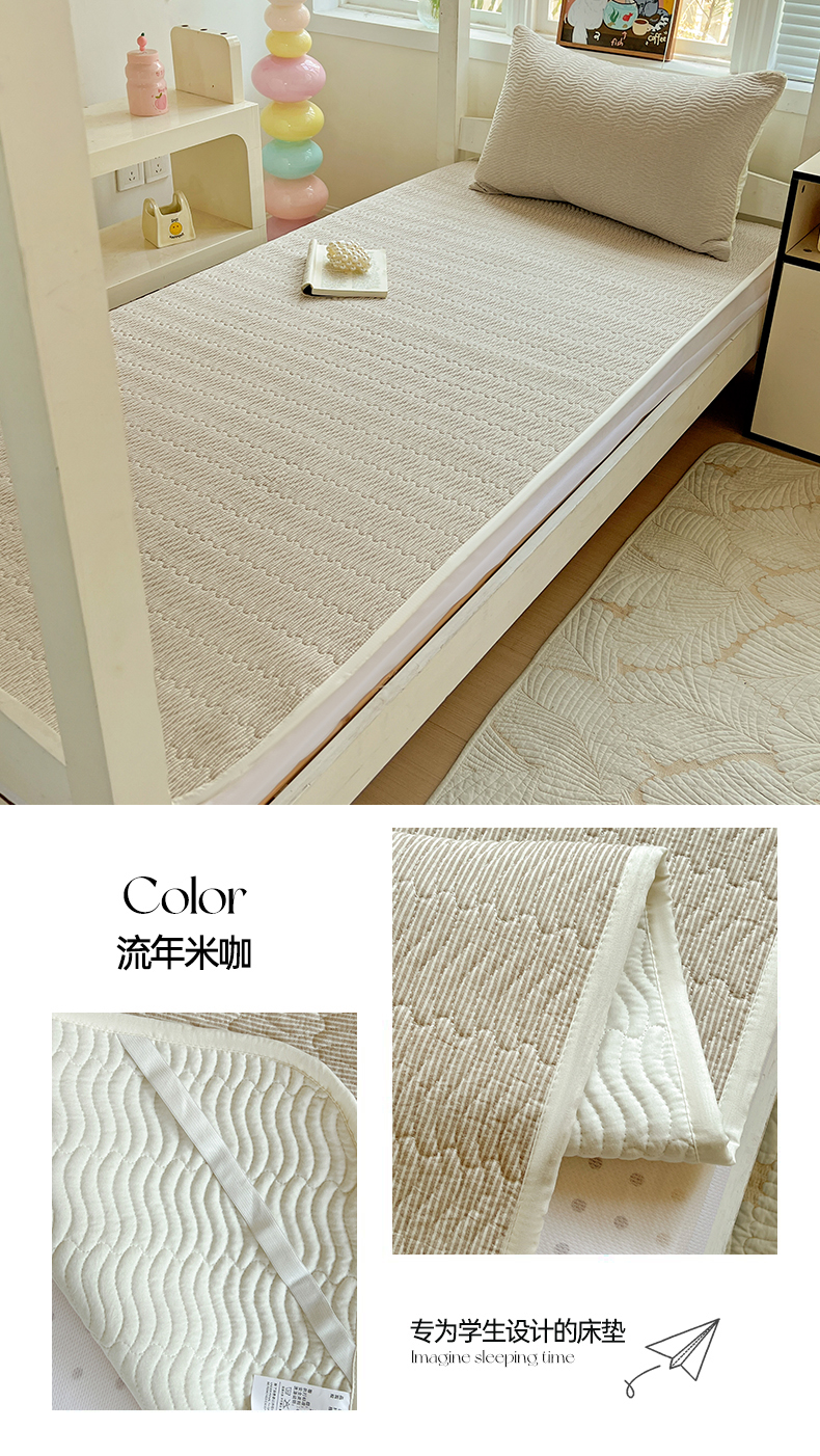 乐野家居 2025热款学生床全棉色织水洗棉夹棉多功能床垫-床盖 流年米咖