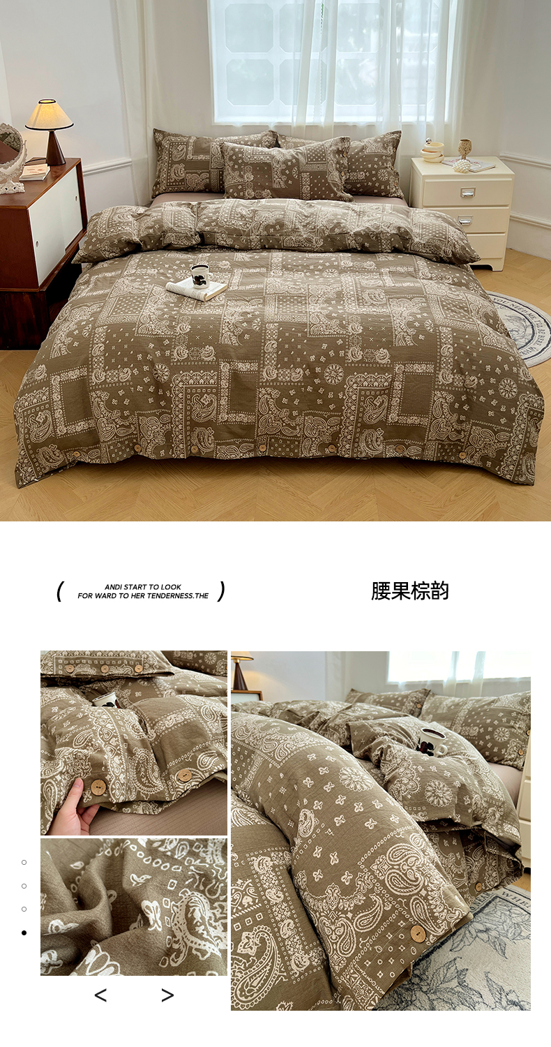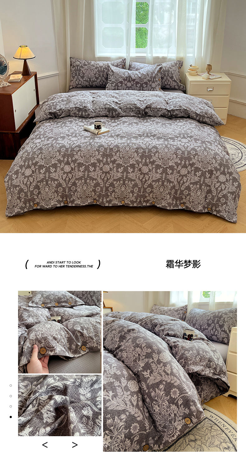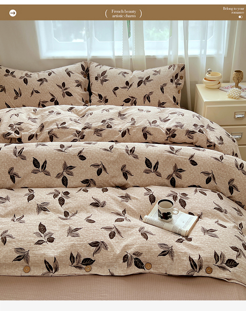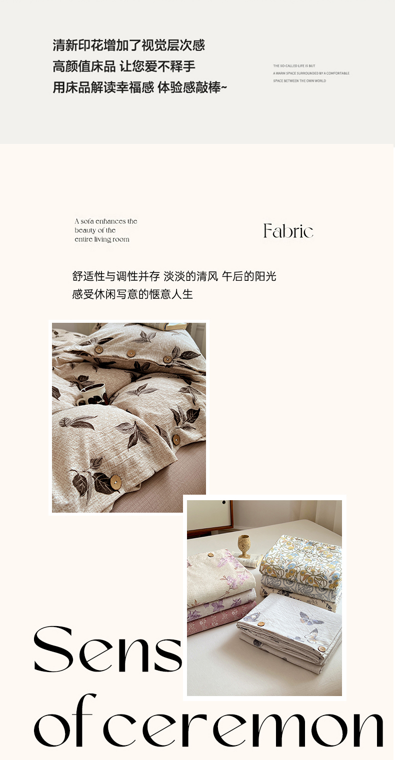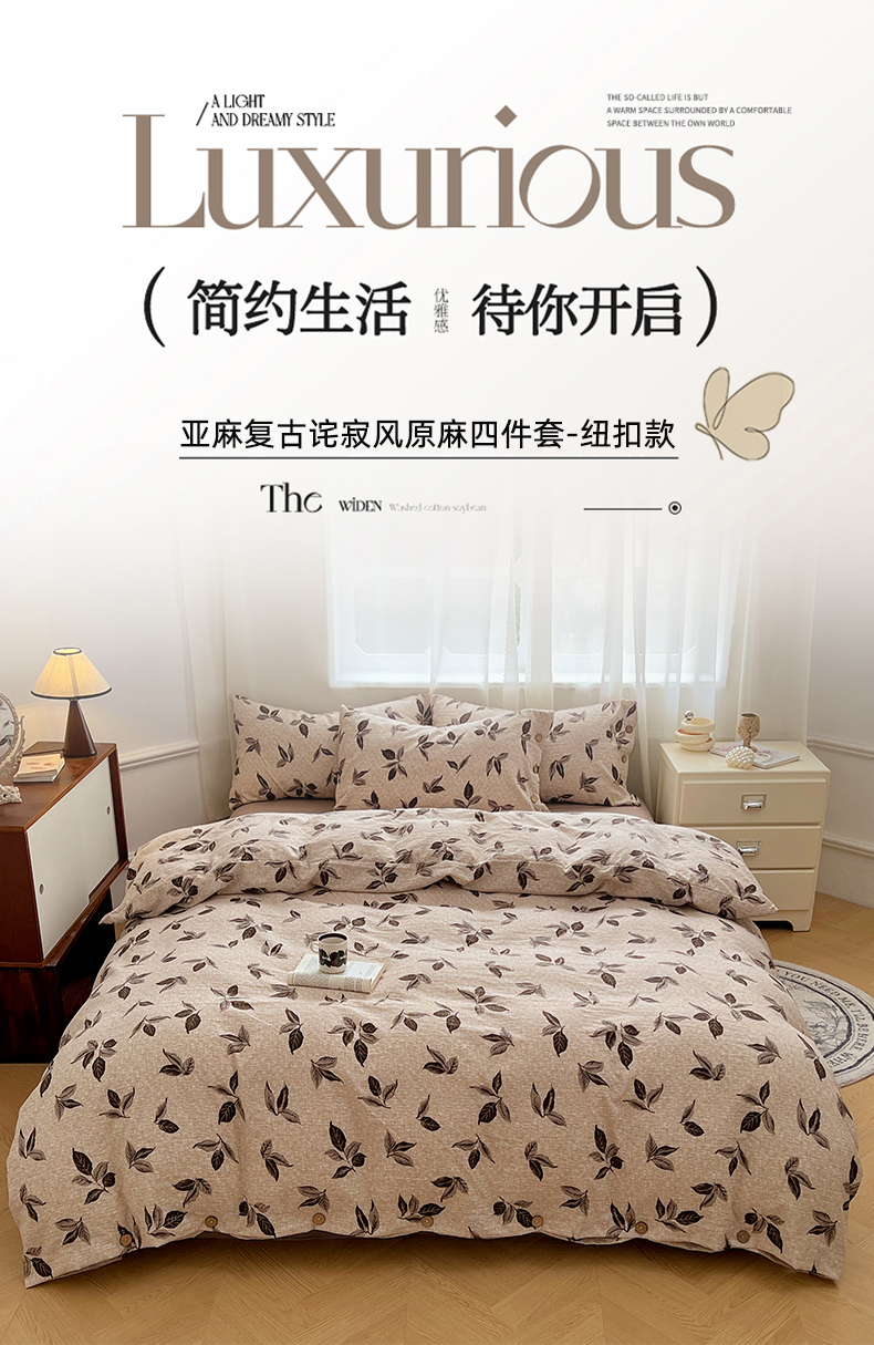 当前位置: 91家纺网 > 商品网购 > 床品套件 > 四件套 > 其它四件套 > 优尚佳生活馆 2025秋冬新款高克重亚麻复古侘季风复麻系列四件套 叶影眠