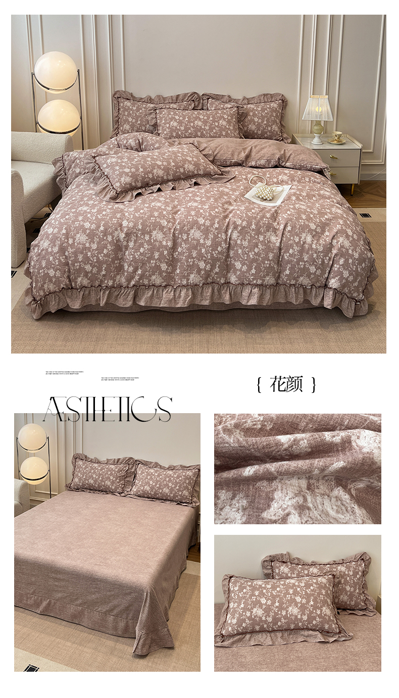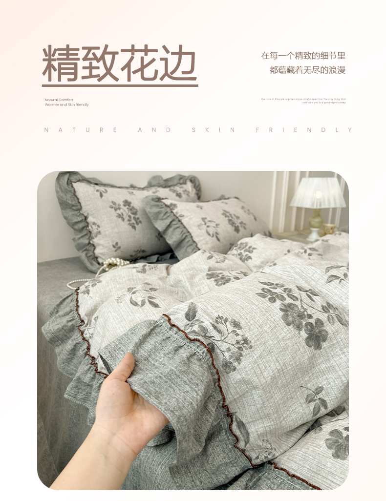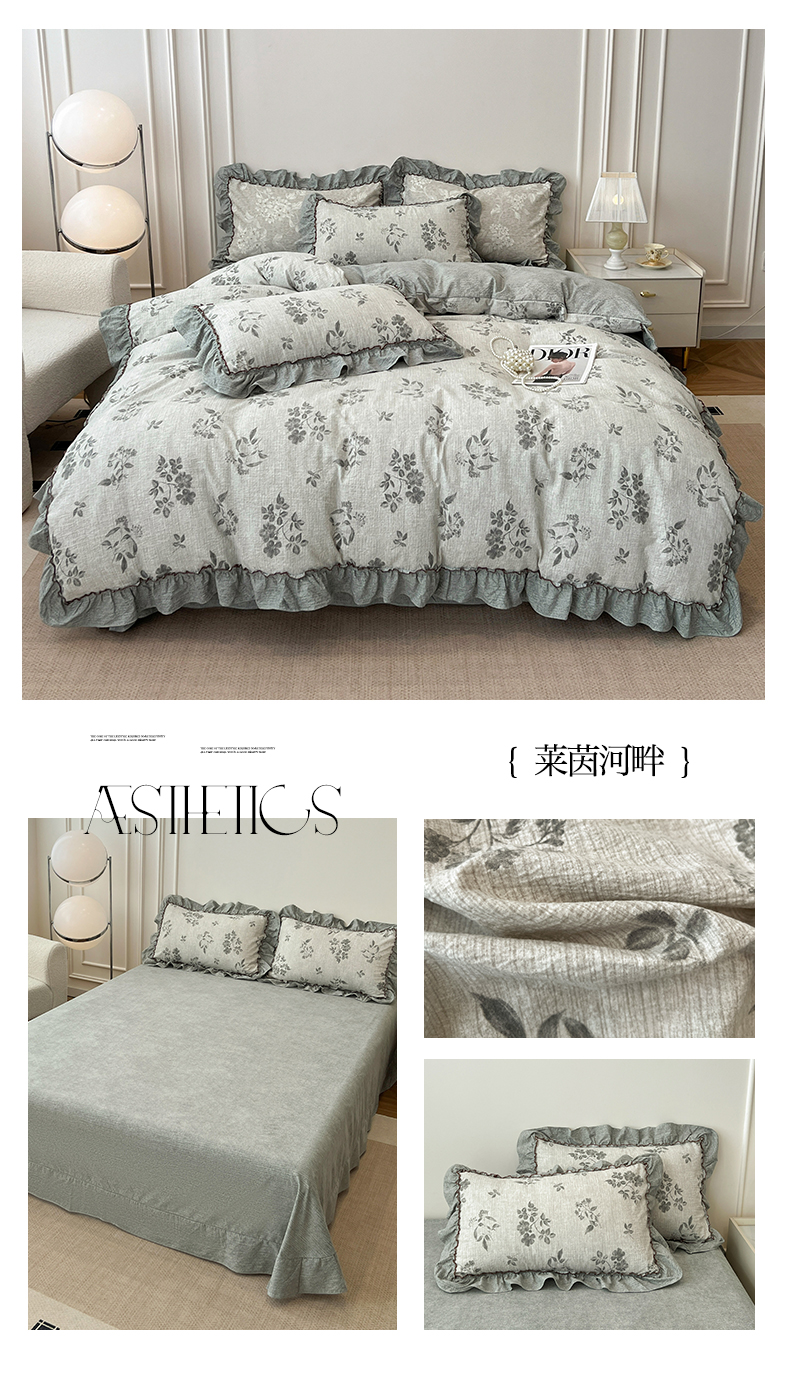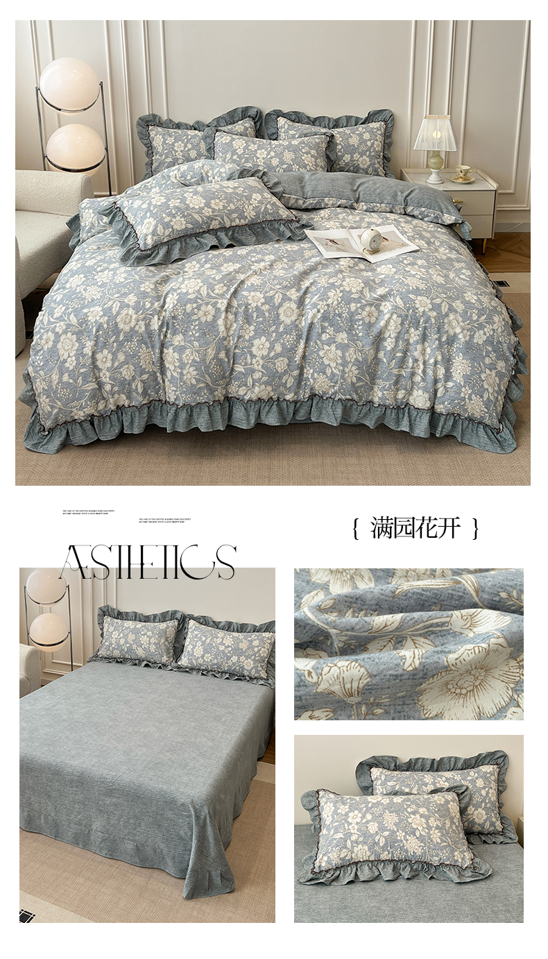 (总)鑫利来家纺 2026古法水洗棉法式花边四件套甄选纯棉花边拼接款四件套印花被套床单单品四件套,花间谍,花千朵,兰黛,兰溪,漫野,七分甜,兔子园,午后时光,小玫瑰,屿花,雨沫