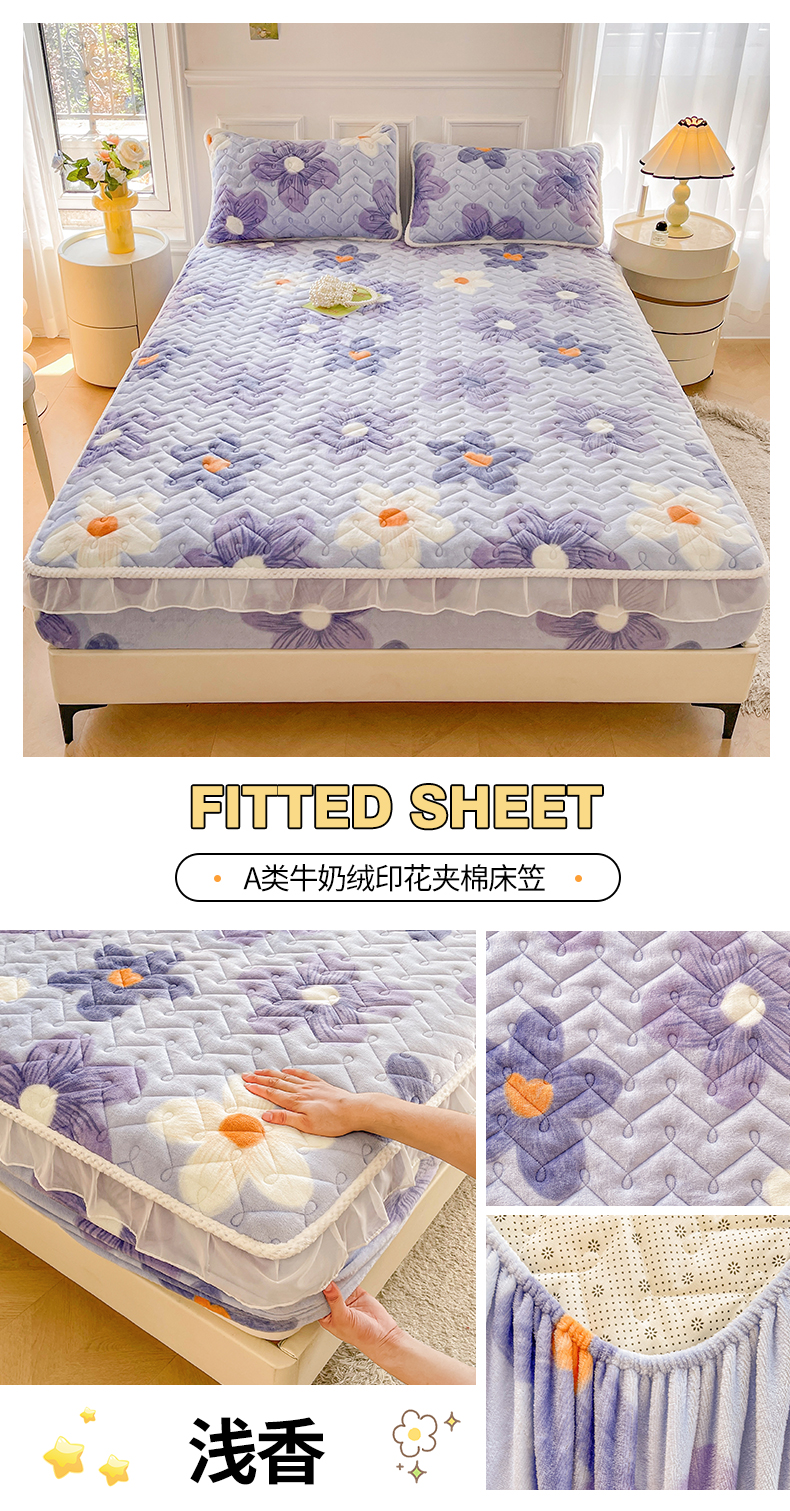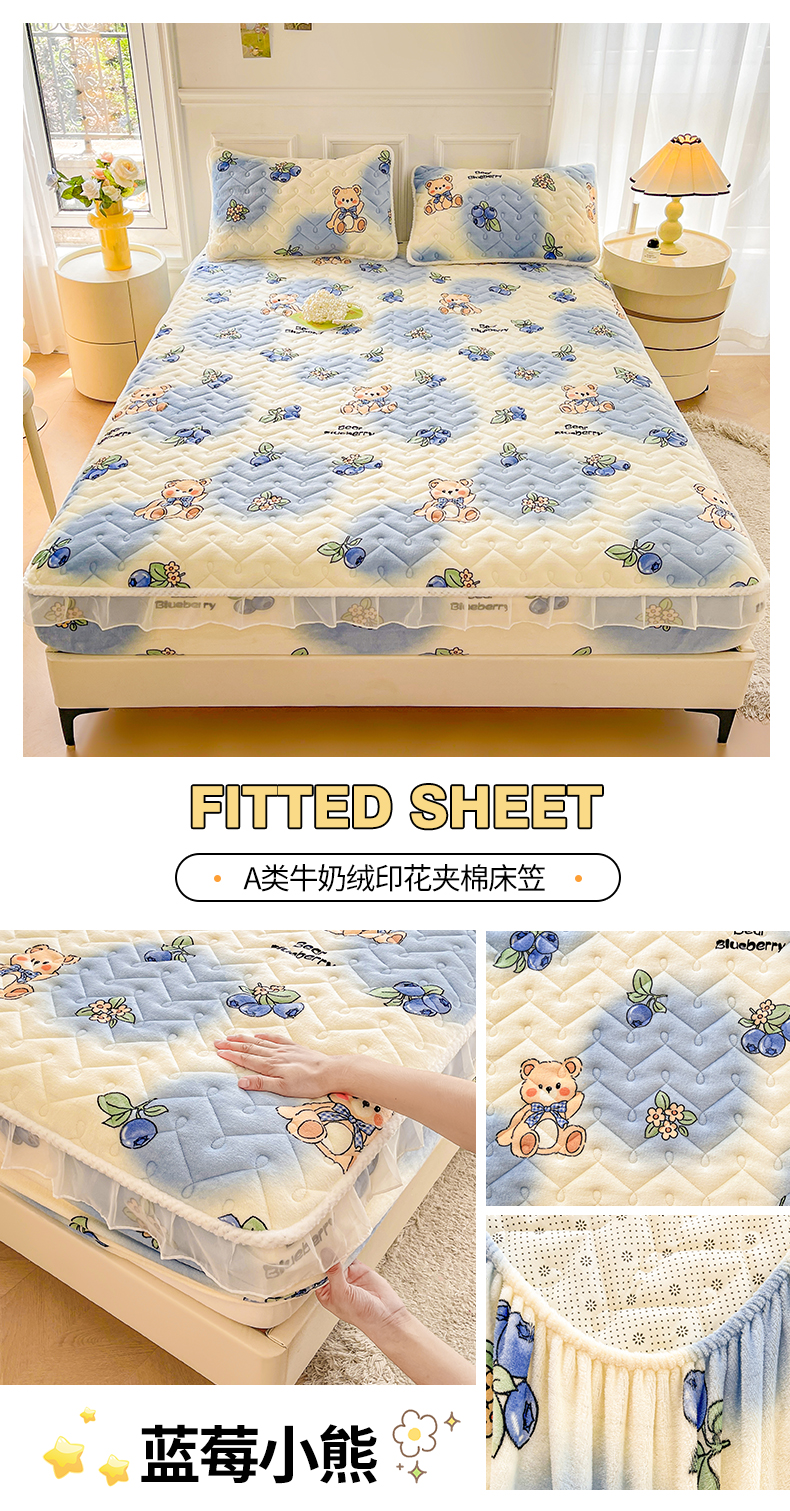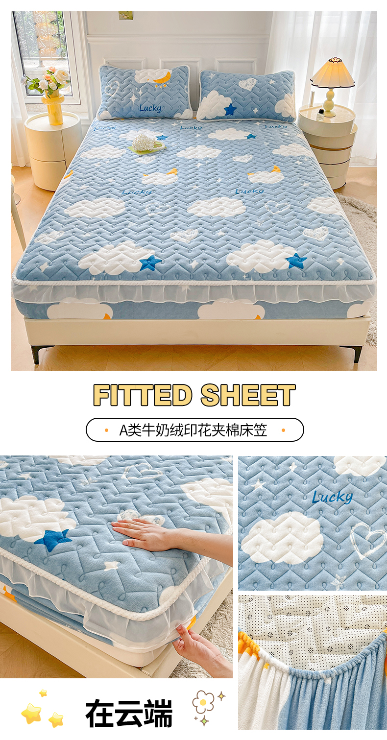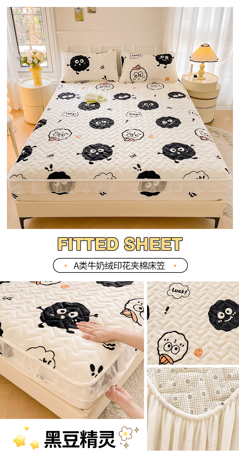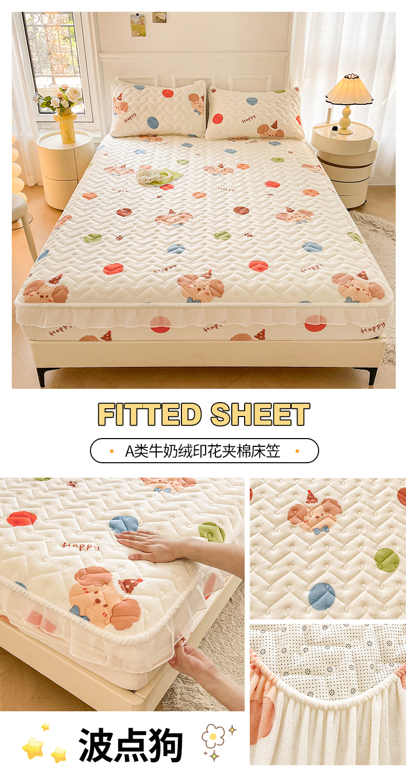 (总)小萌虎 2025新款A类防静电牛奶绒印花夹棉床笠