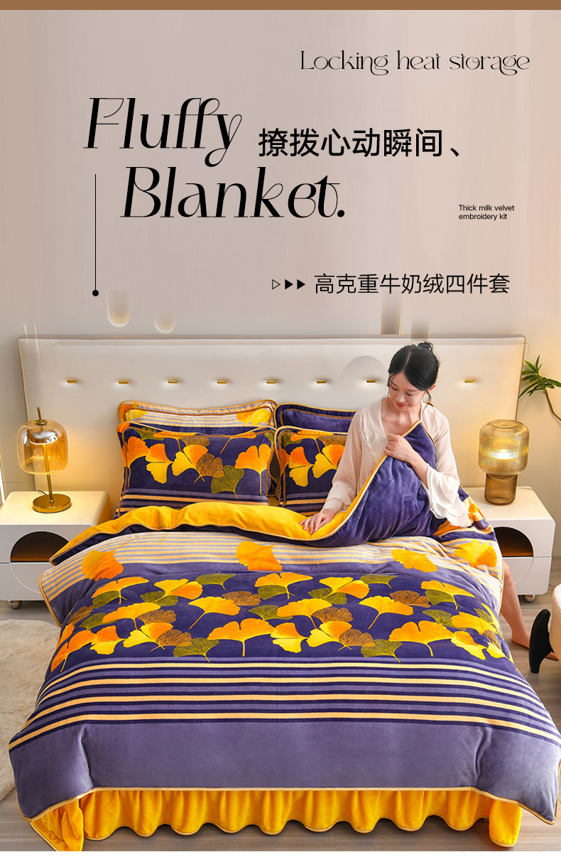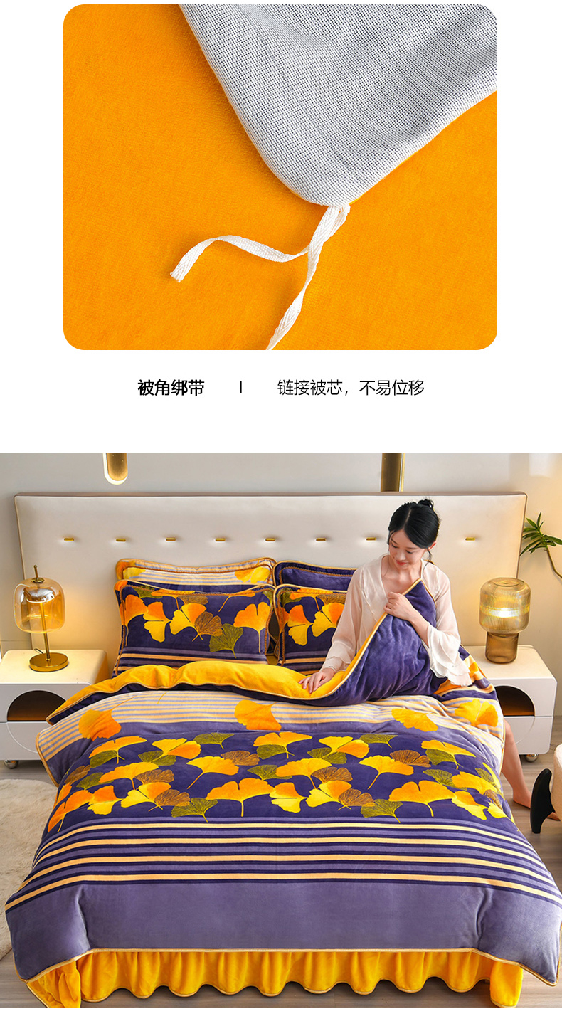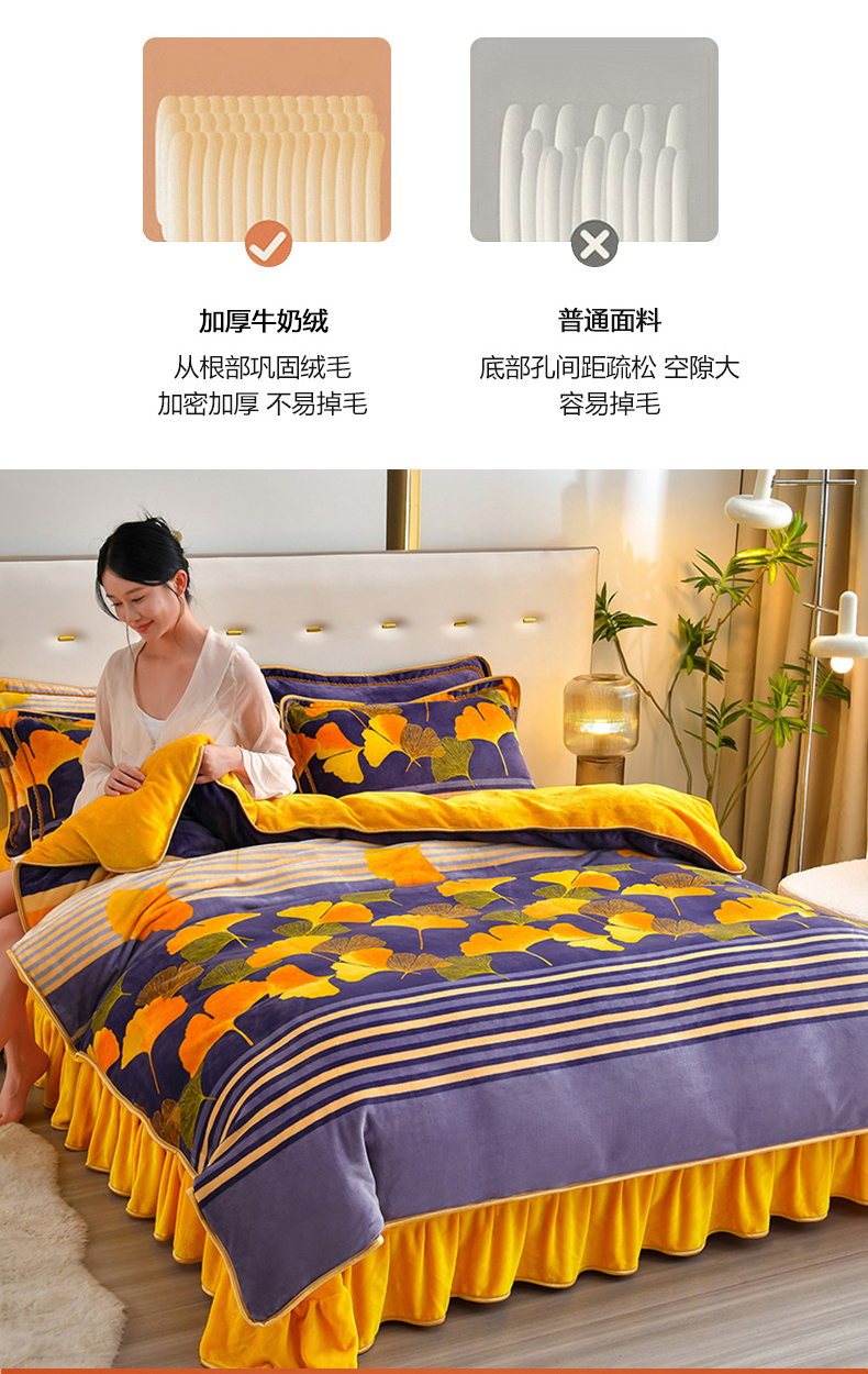 亿品2025直播爆款9.5斤牛奶绒四件套加厚保暖床裙四件套 杏运树