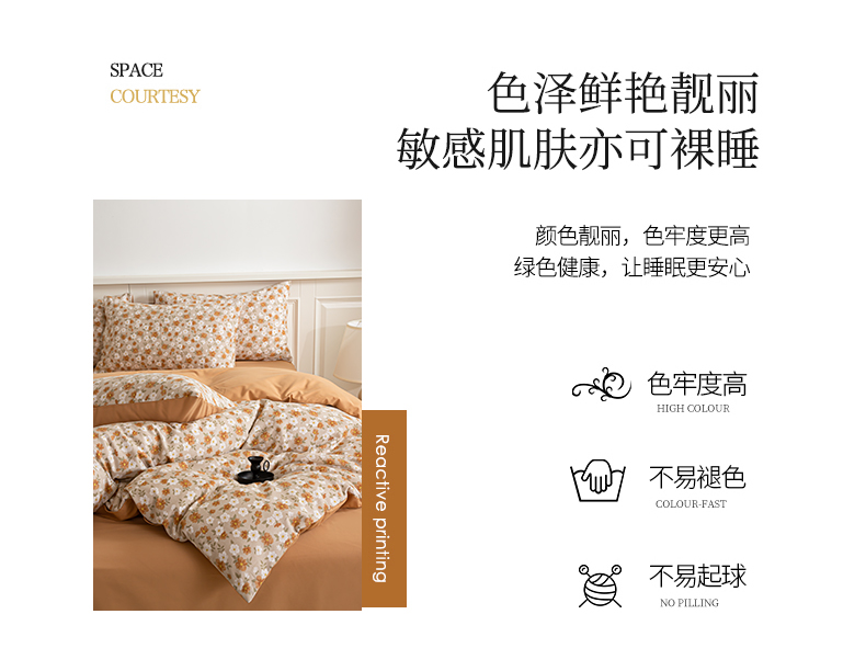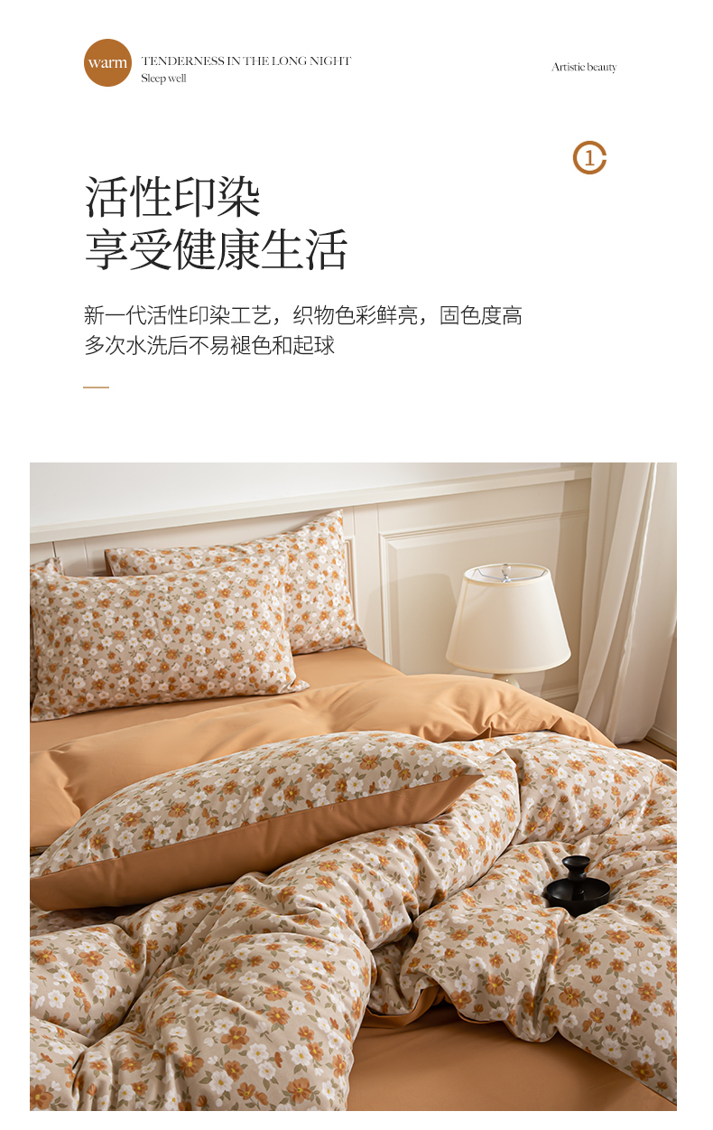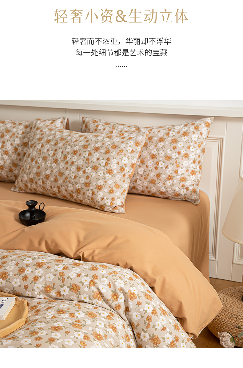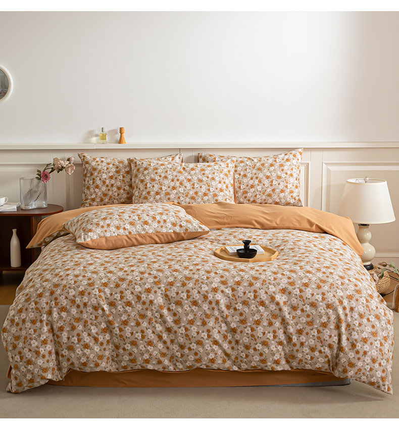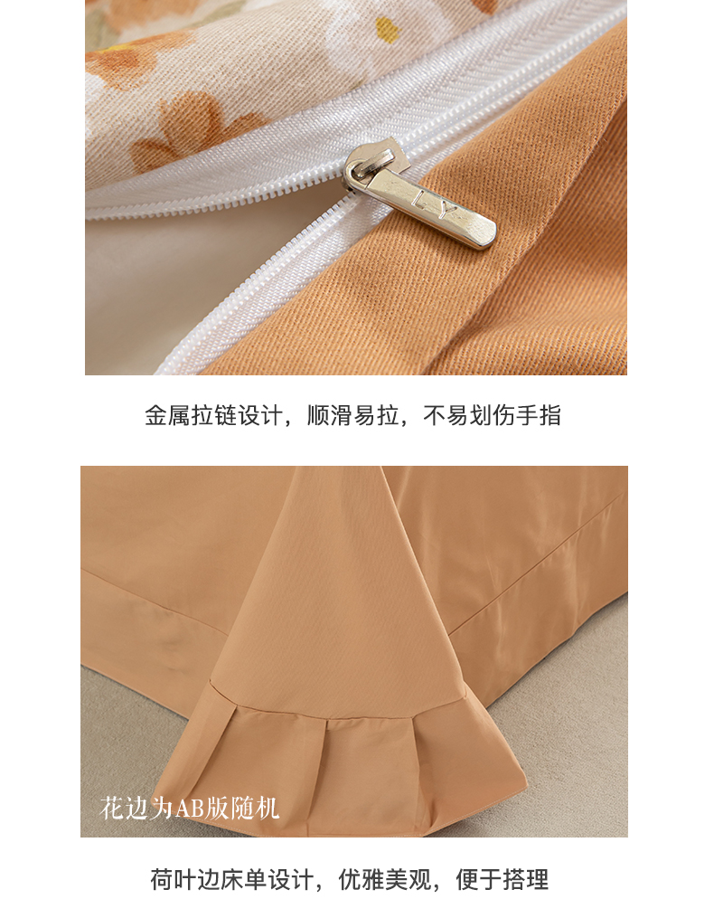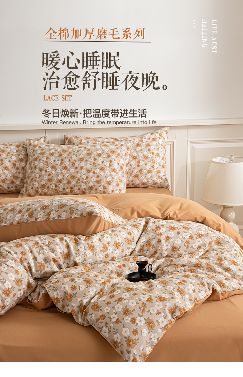 绫韵家纺 2025秋冬新款印花全棉磨毛冬季加厚纯棉磨毛三件套四件套系列 采薇-元气橙