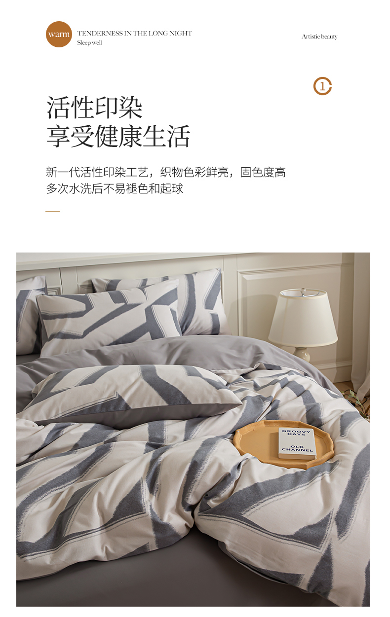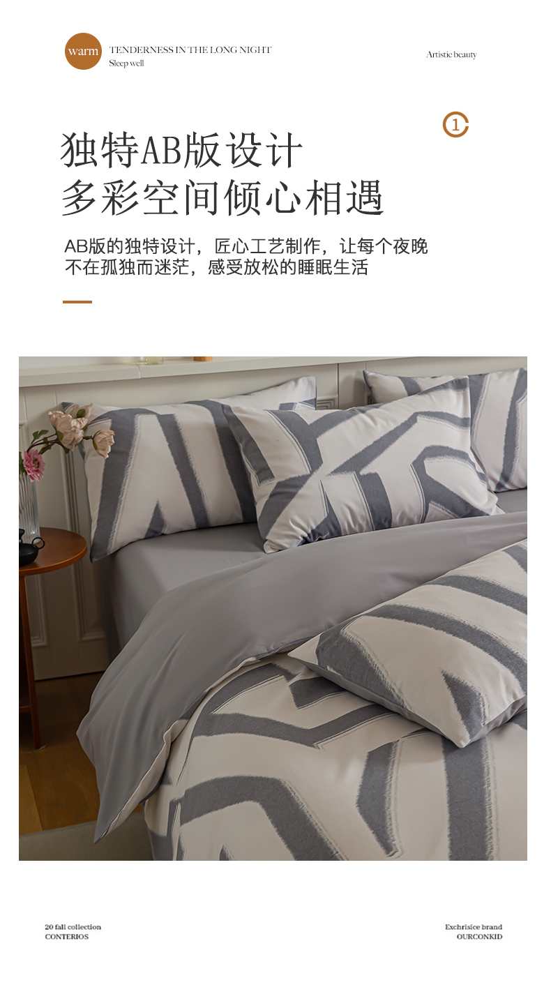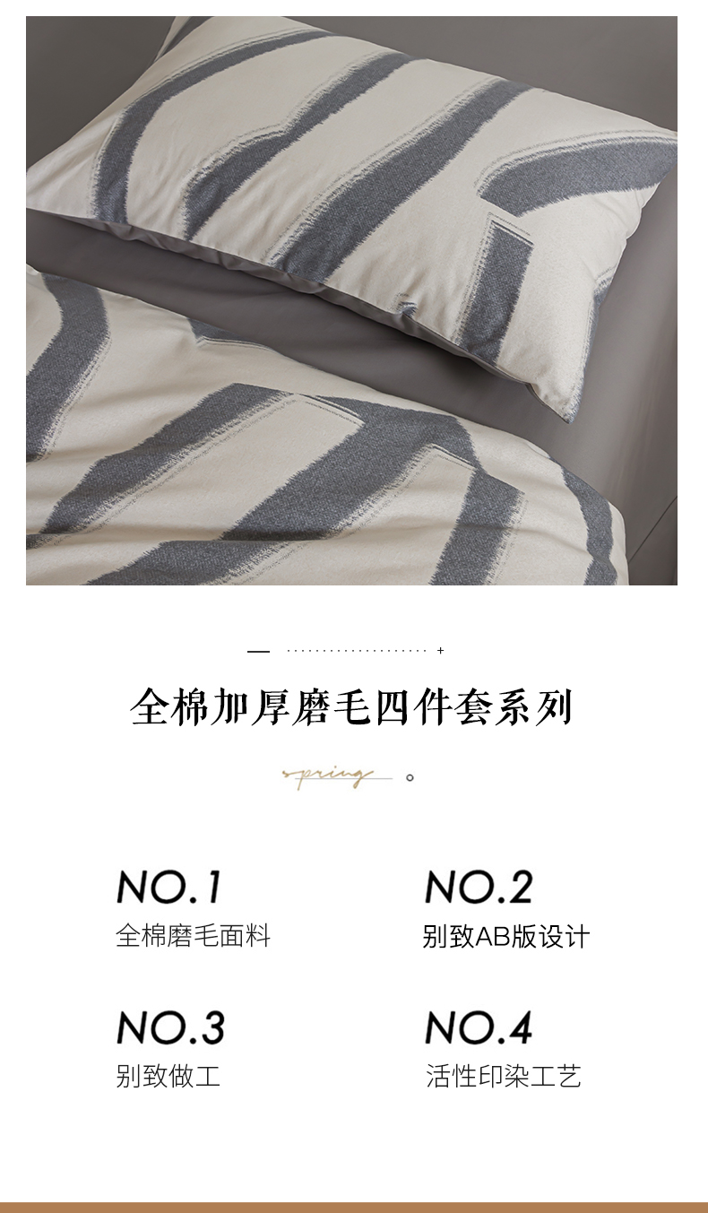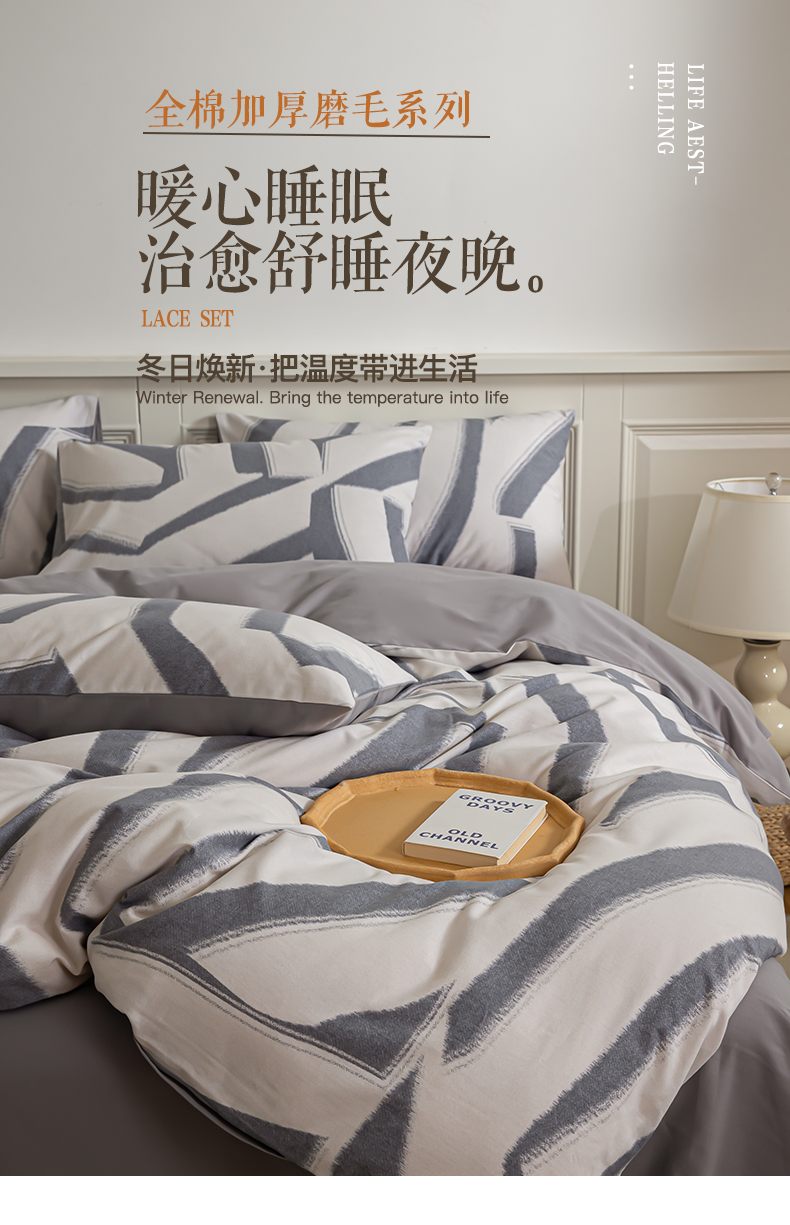 商品名称:绫韵家纺 2025秋冬新款印花全棉磨毛冬季加厚纯棉磨毛三件套四件套系列 魅影灰