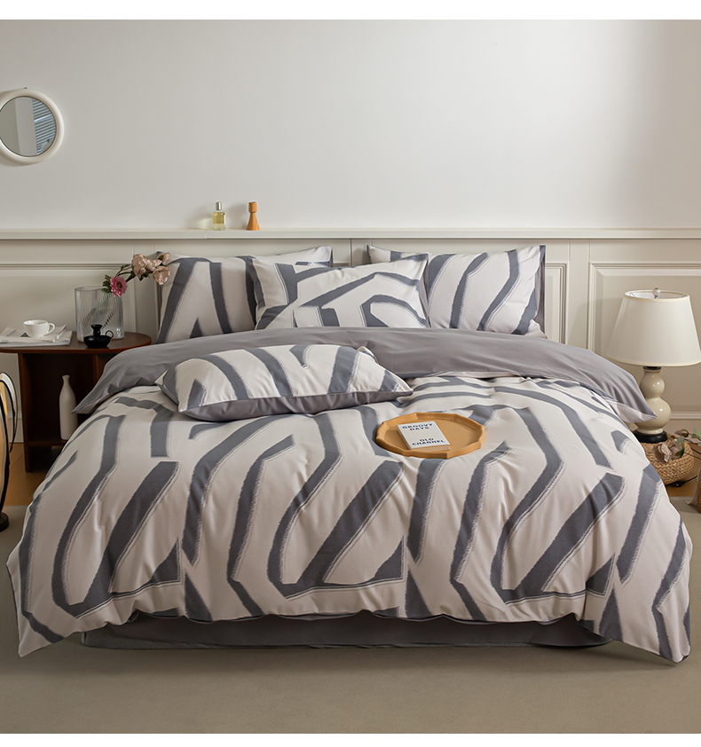 绫韵家纺 2025秋冬新款印花全棉磨毛冬季加厚纯棉磨毛三件套四件套系列 魅影灰