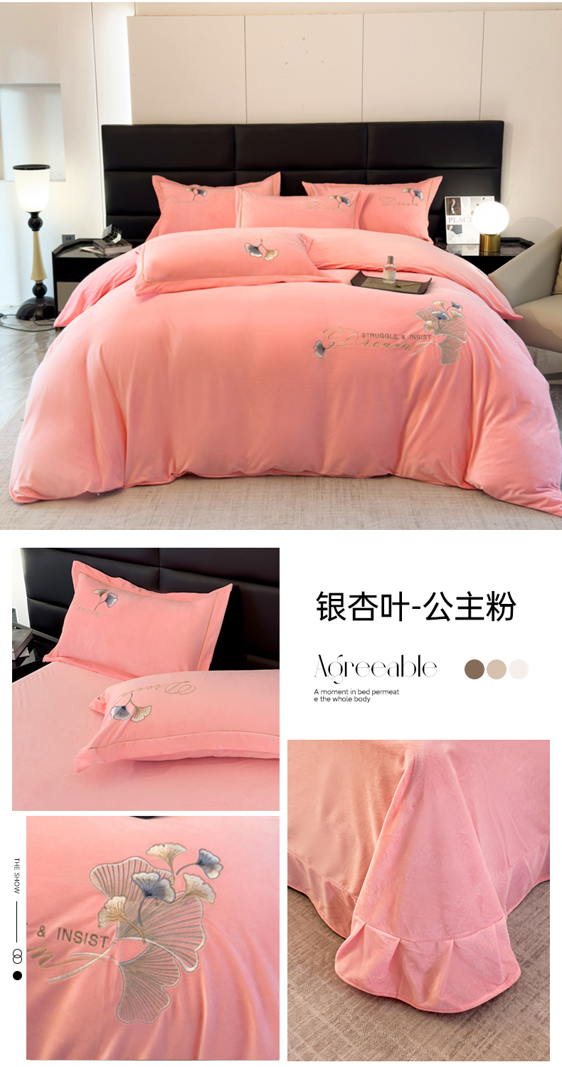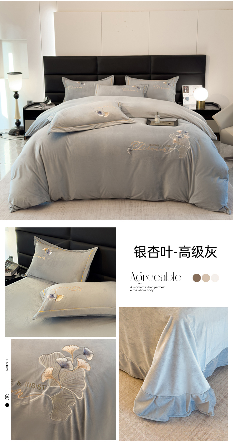 当前位置: 91家纺网 > 商品网购 > 床品套件 > 四件套 > 牛奶绒四件套 > U品汇 2025新款7斤高克重牛奶绒刺绣花四件套床裙款法莱绒金貂珊瑚绒水晶绒不掉毛 银杏叶-高级灰