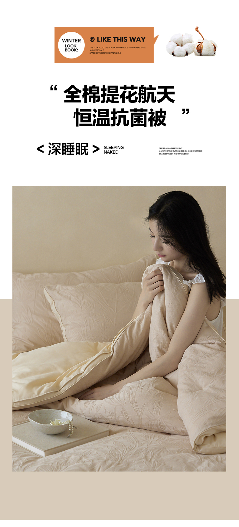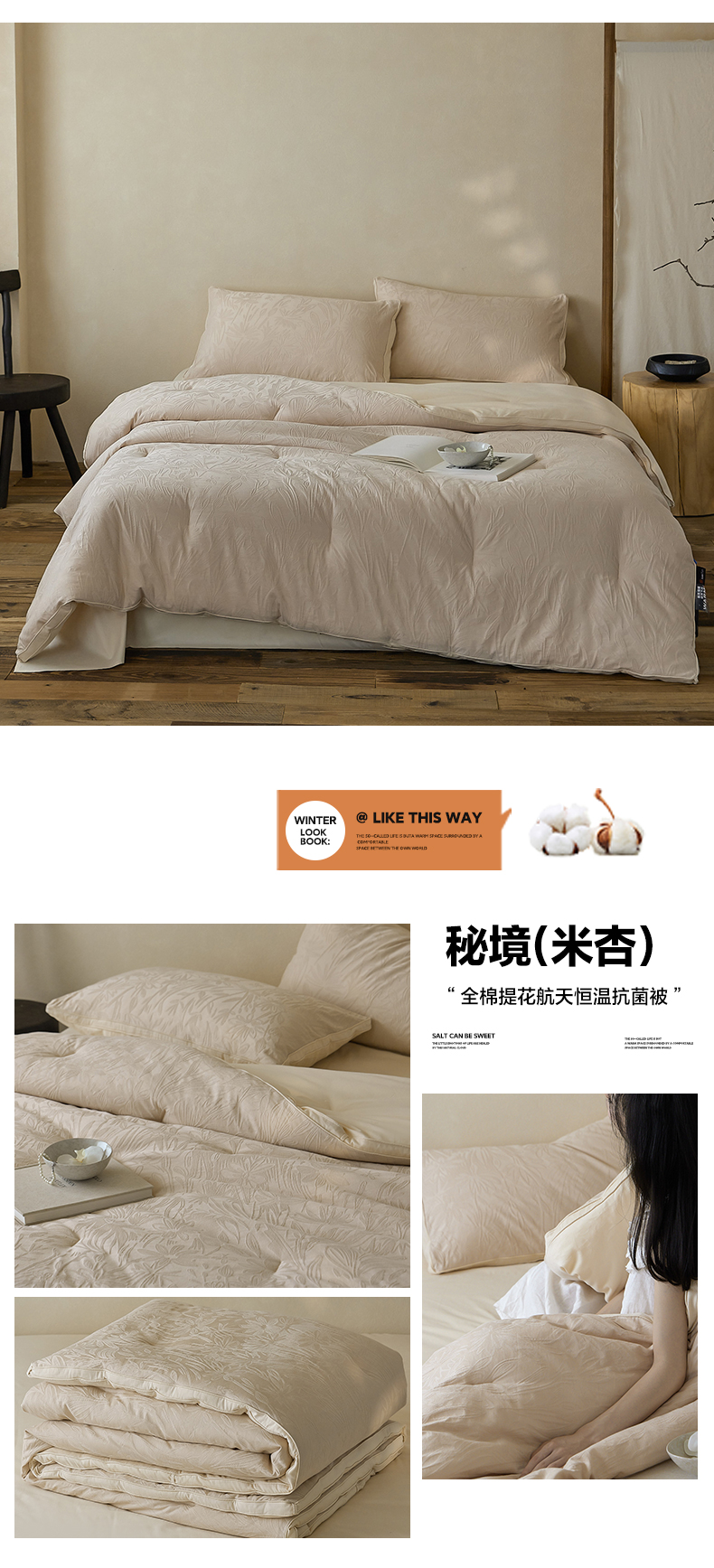 商品名称:一加一 2025新款全棉提花航天恒温抗菌被子被芯 秘境(米杏)