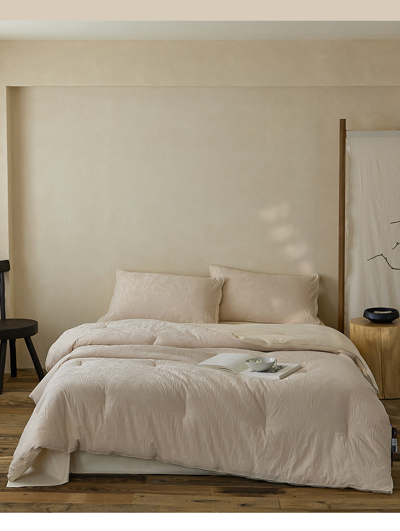 (总)一加一 2025新款全棉色织简约风艾阳绒抗菌被芯,浅兰韵律,桃之夭天,悠然时光