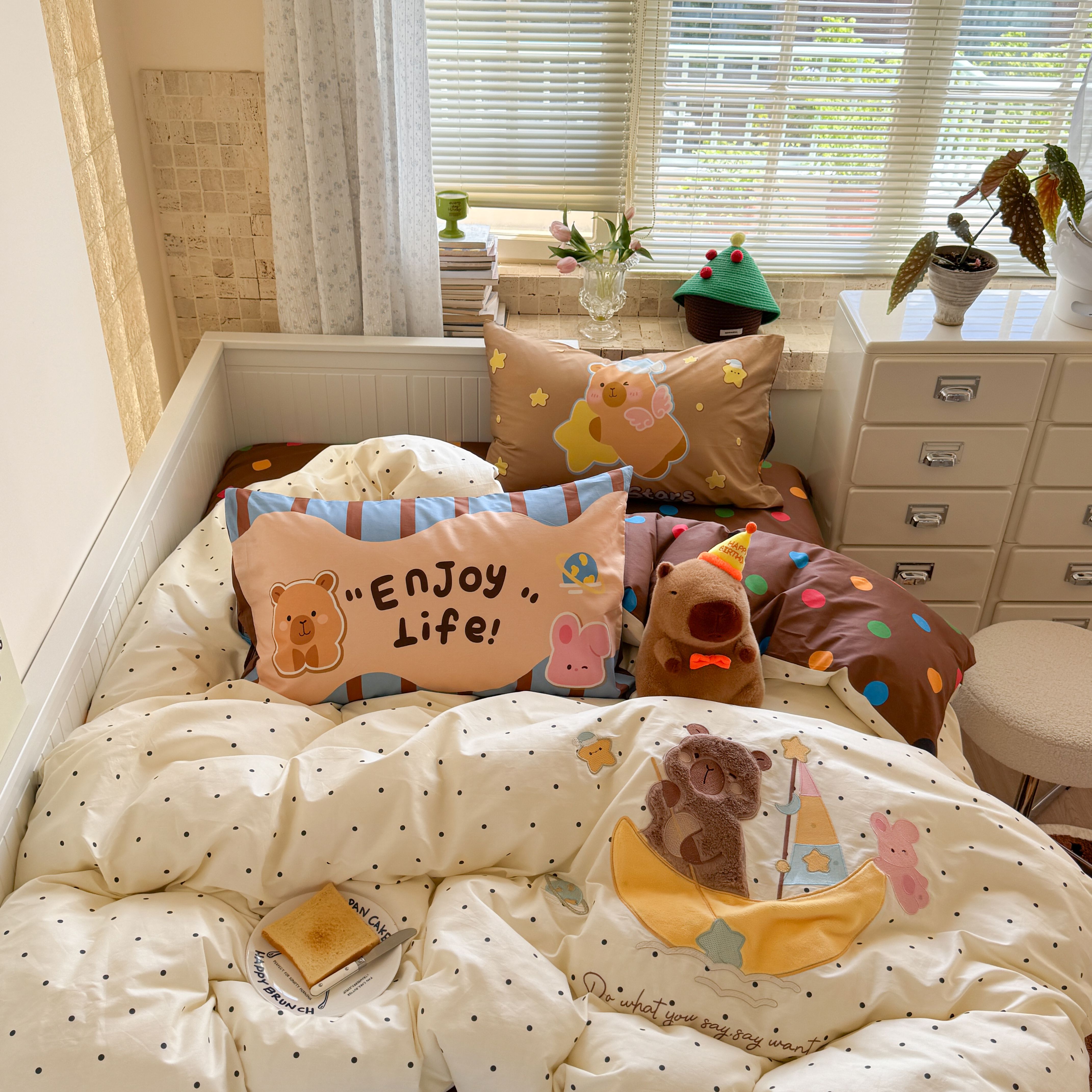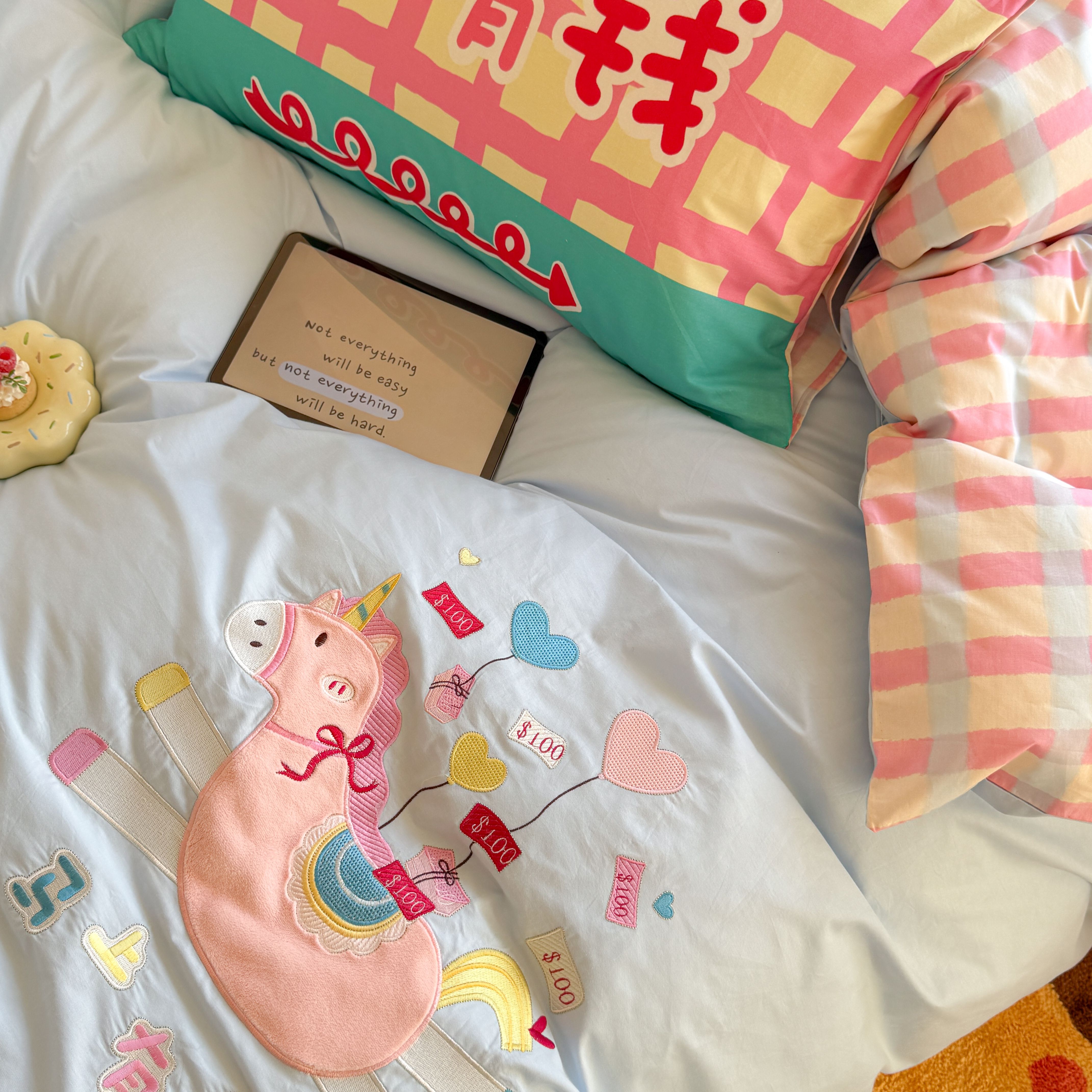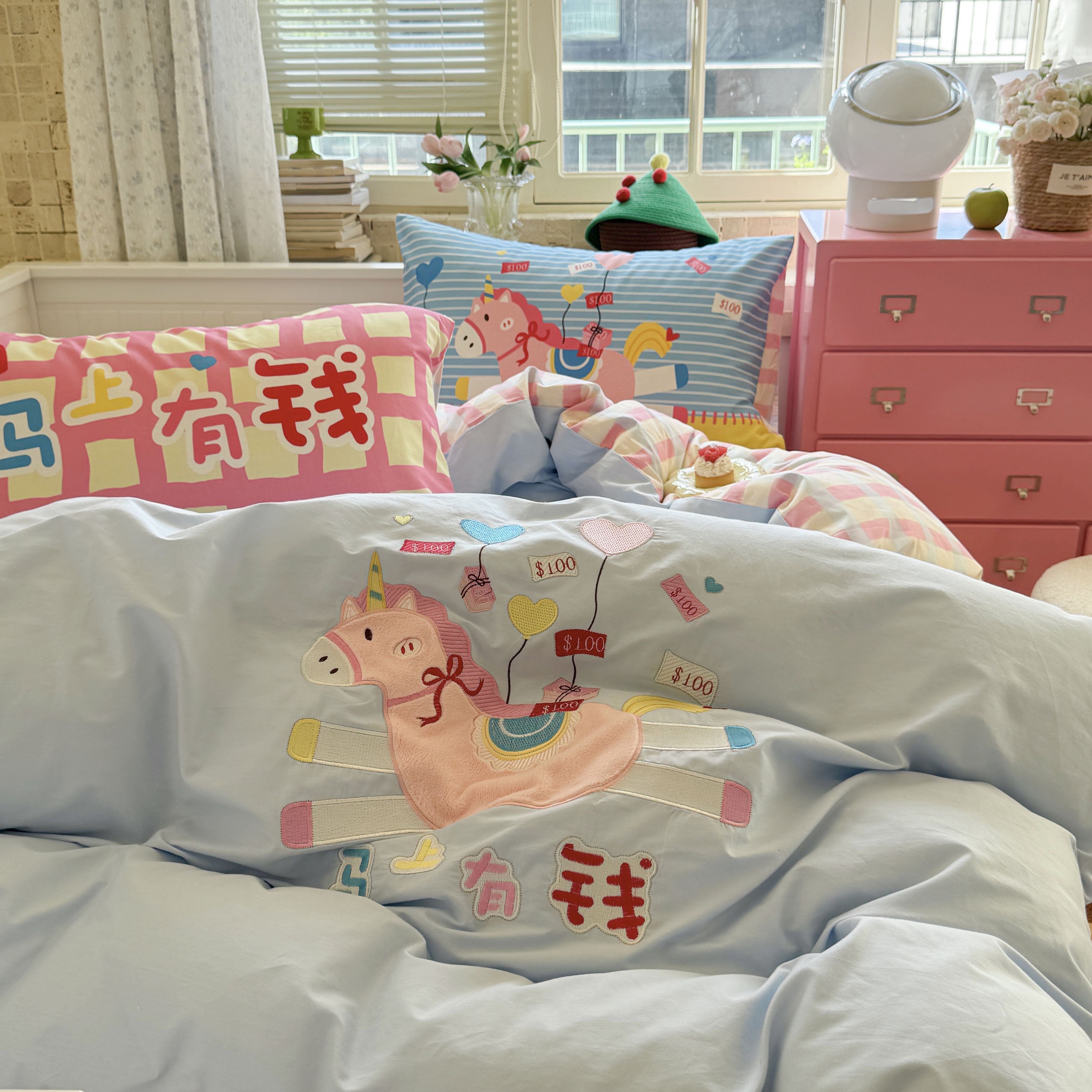 (总)柚子YOUTH 2025新款全棉A类母婴级卡通绣花四件套,吹泡泡,汉堡小猫,马上有钱,女孩的礼物,小狗面包,月亮船