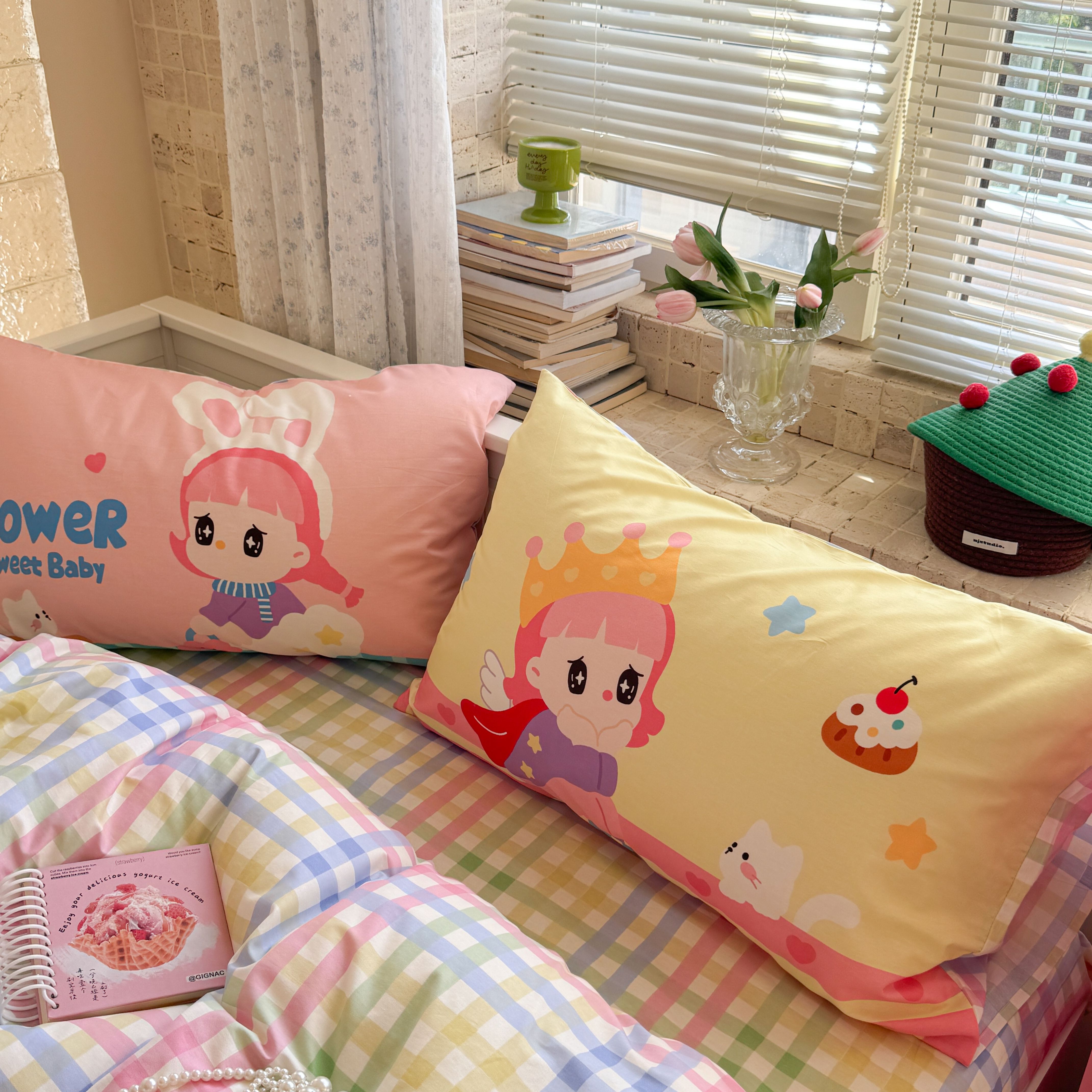 (总)柚子YOUTH 2025新款全棉双层纱贴布绣四件套,棒球熊猫,贝雷帽,冰淇淋小熊,格子玩偶,碎花小兔,小黑猫