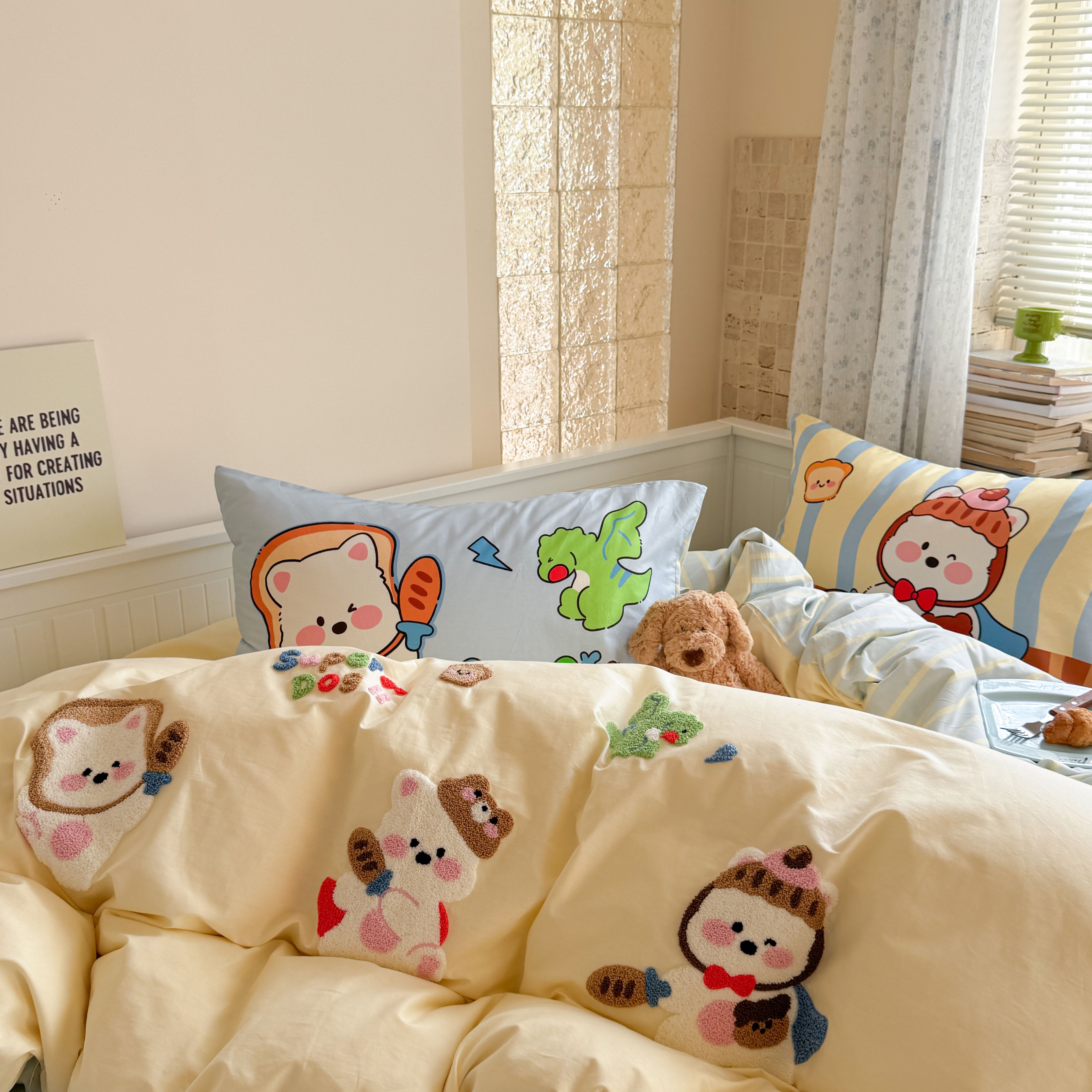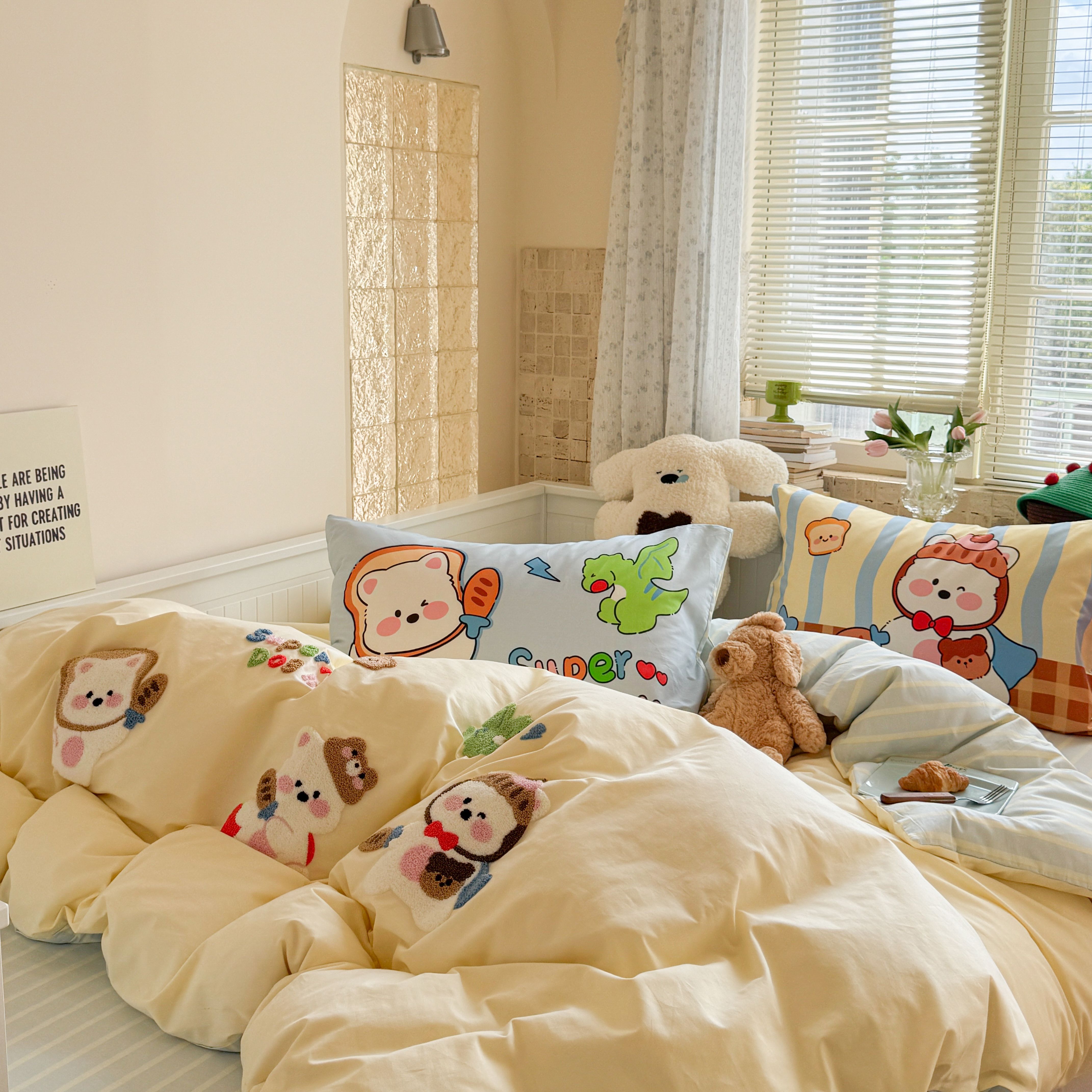(总)柚子YOUTH 2025新款全棉纯棉工艺款13070贴布绣四件套,爱心小象,毛绒小狗,蘑菇女孩,星星法师