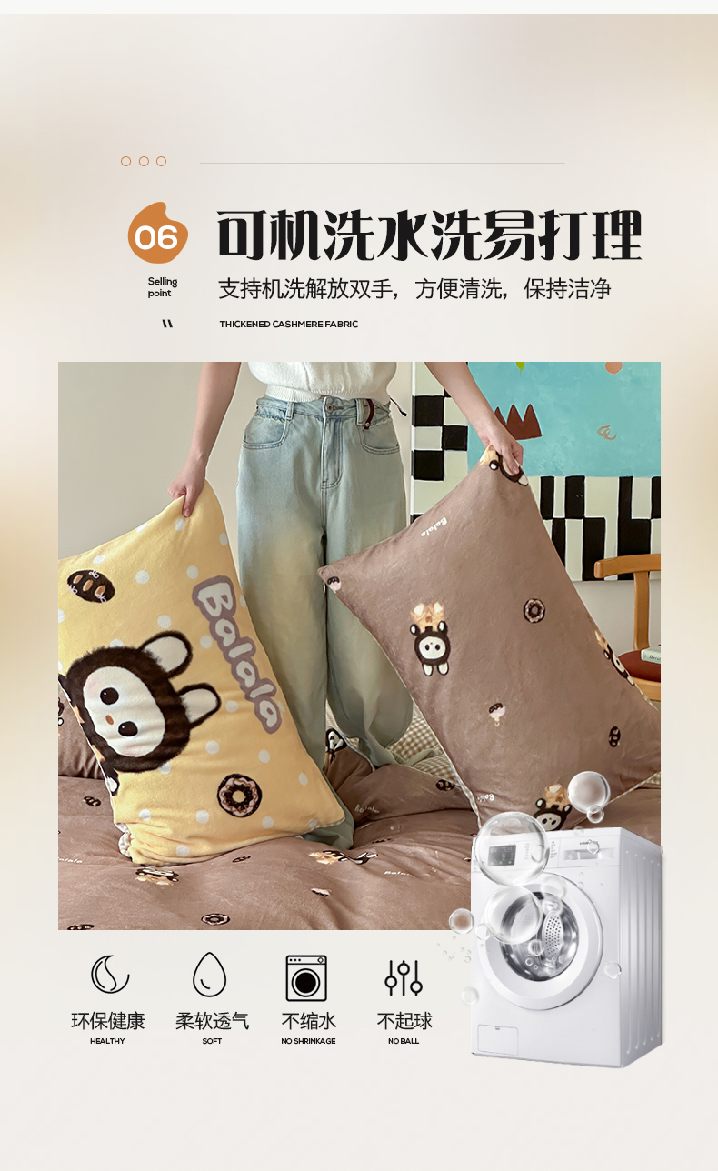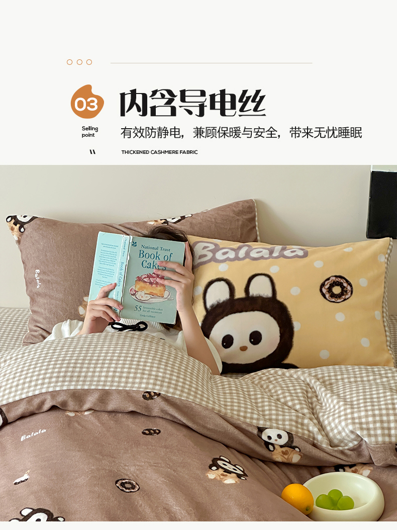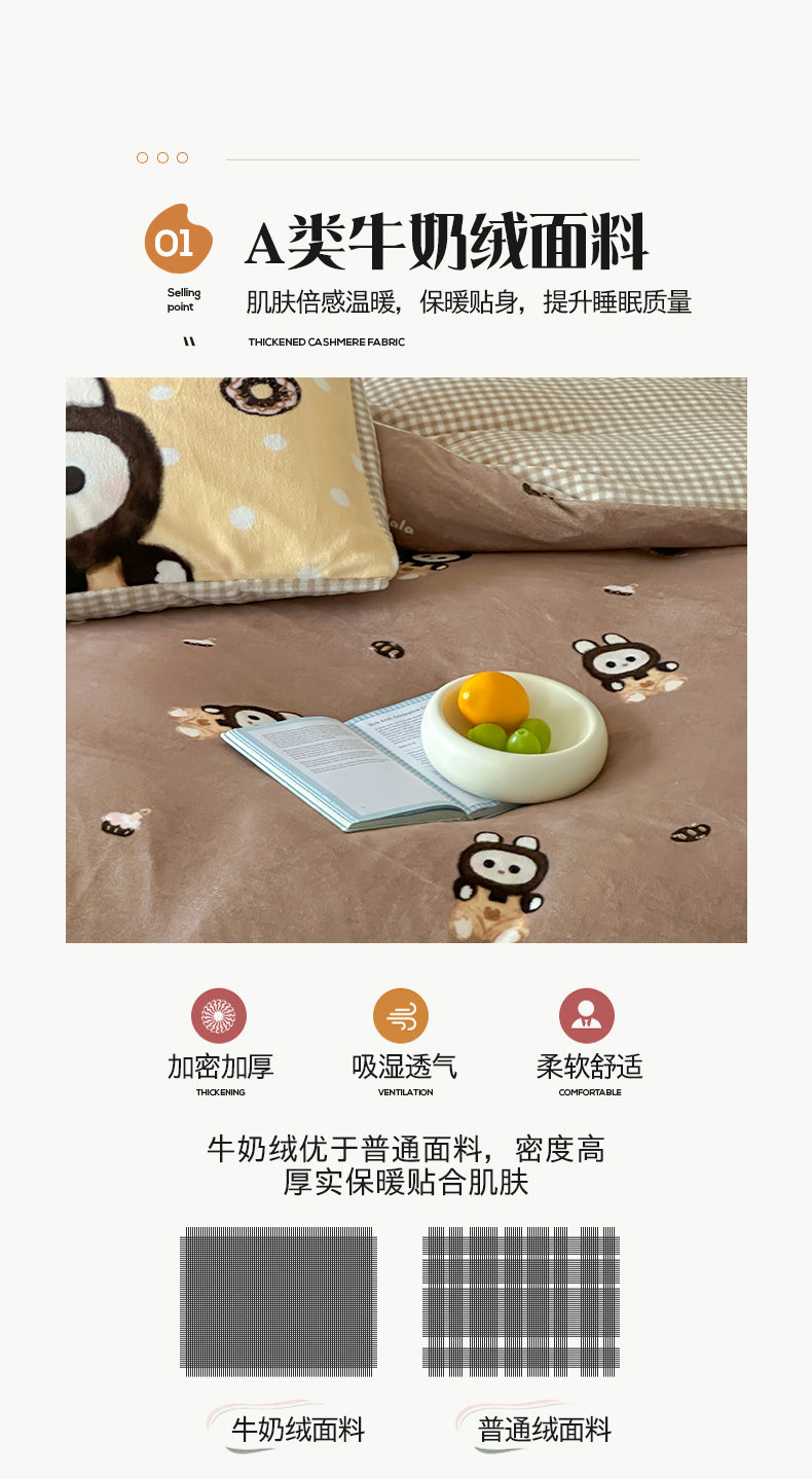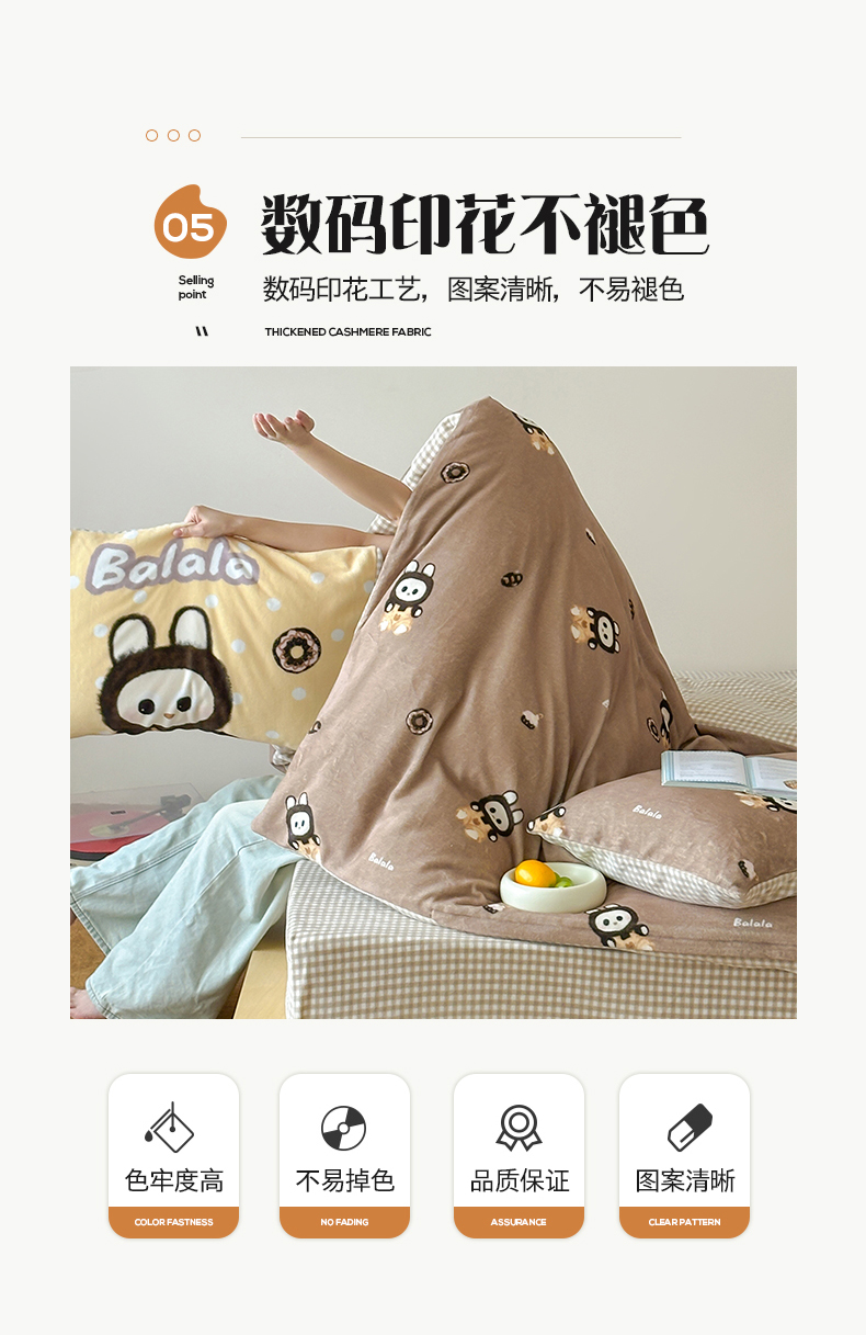 商品名称:桃子家居 2025新款A类ins数码印花枕混搭复古时尚卡通加厚牛奶系列四件套 绒-混搭拉蒙咖