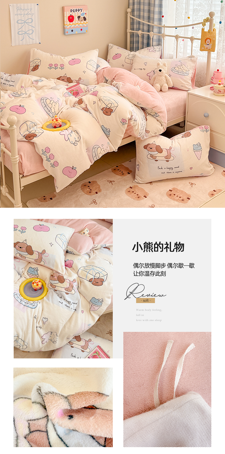 当前位置: 91家纺网 > 商品网购 > 床品套件 > 四件套 > 牛奶绒四件套 > 呗旺鹿 2025新款A类高克重卡通印花牛奶绒印花四件套 奶油星星狗