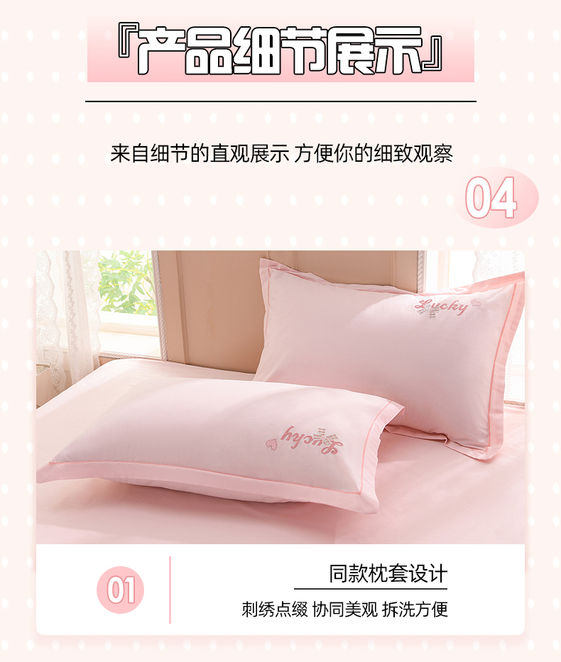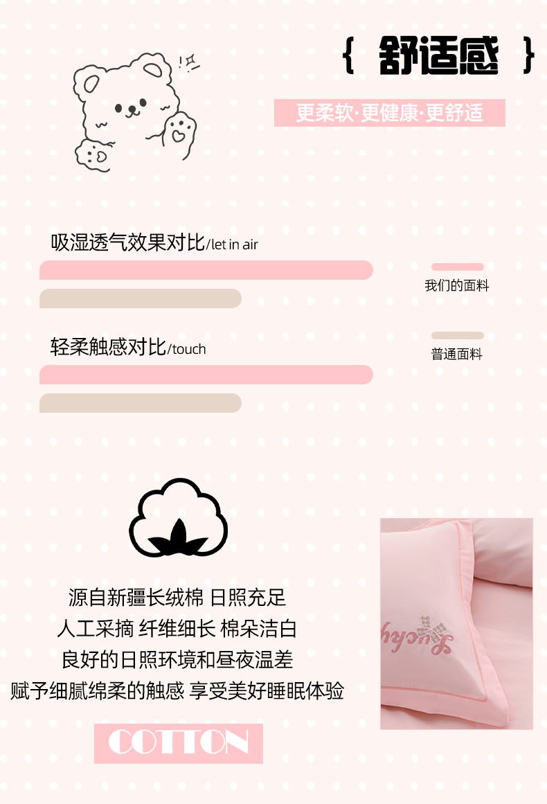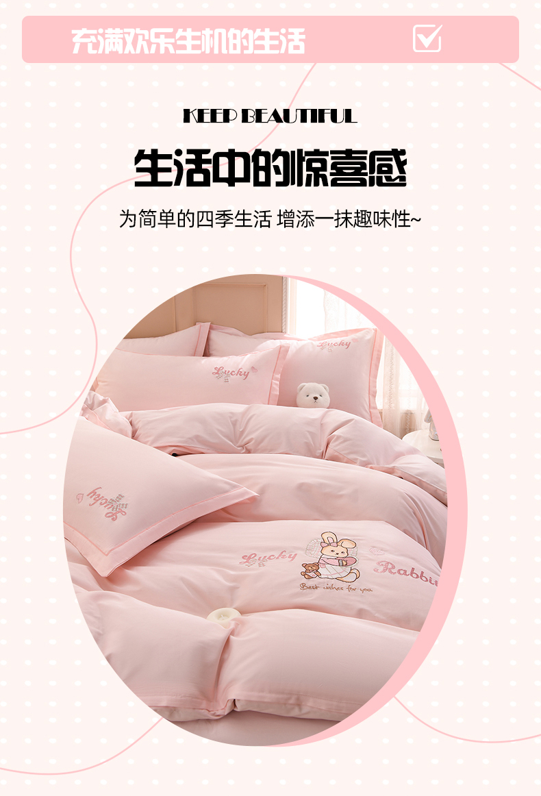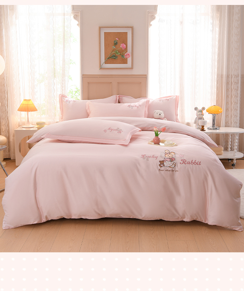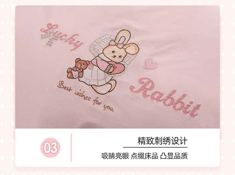 商品名称:绒小宣 2025新款13372全棉绣花四件套-梦幻兔 兔熊-粉