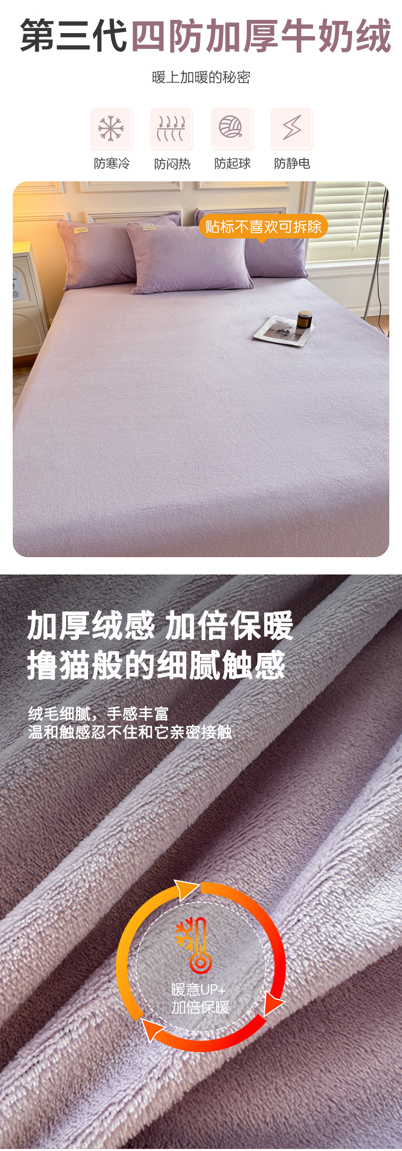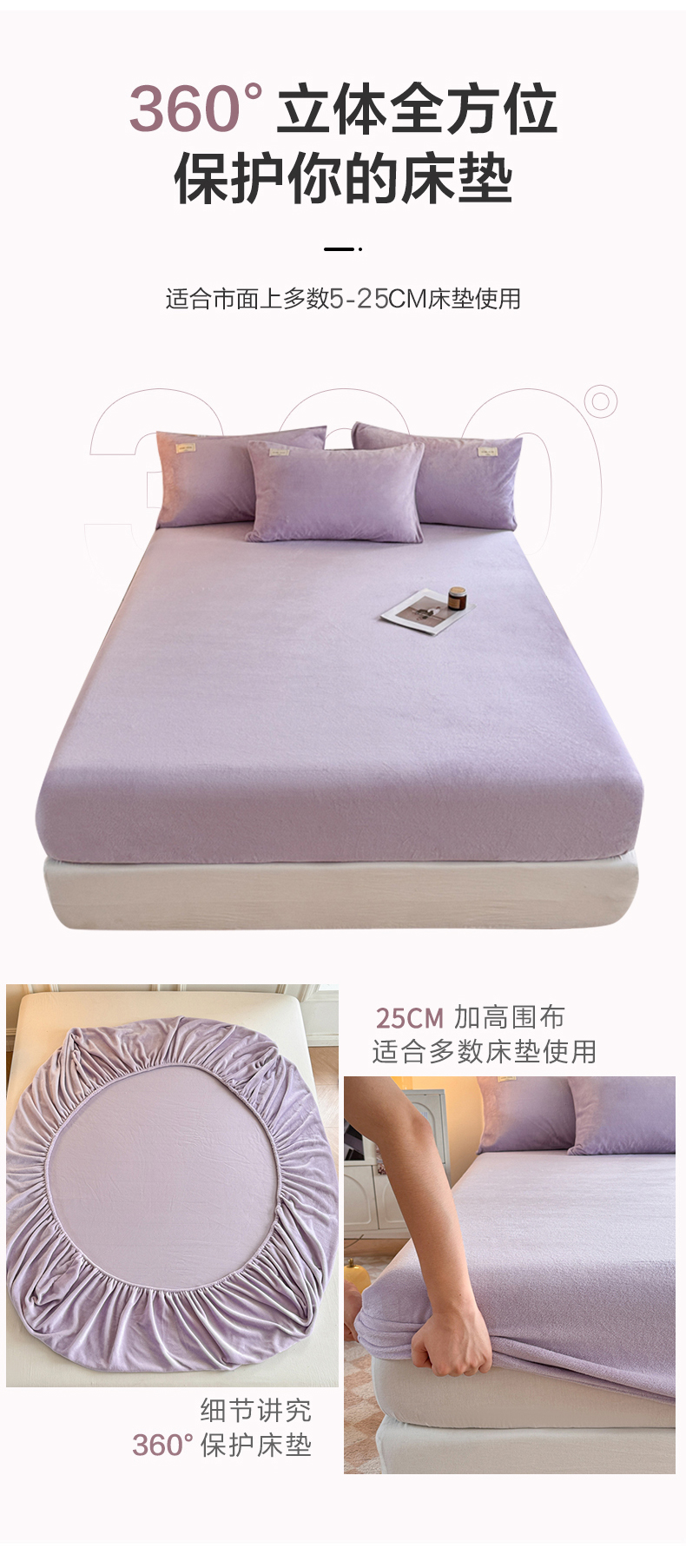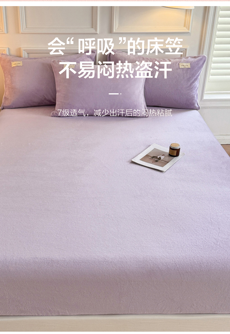 • 91家纺网 家纺一手货源 找家纺 眠博士 2025新款简约牛奶绒纯色单床笠 牛奶绒床笠-丁香紫