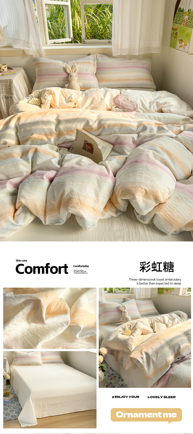 当前位置: 91家纺网 > 商品网购 > 床品套件 > 四件套 > 化纤活性四件套 > 优兰朵 2025新款超柔云感木棉印花小清新四件套 彩虹糖