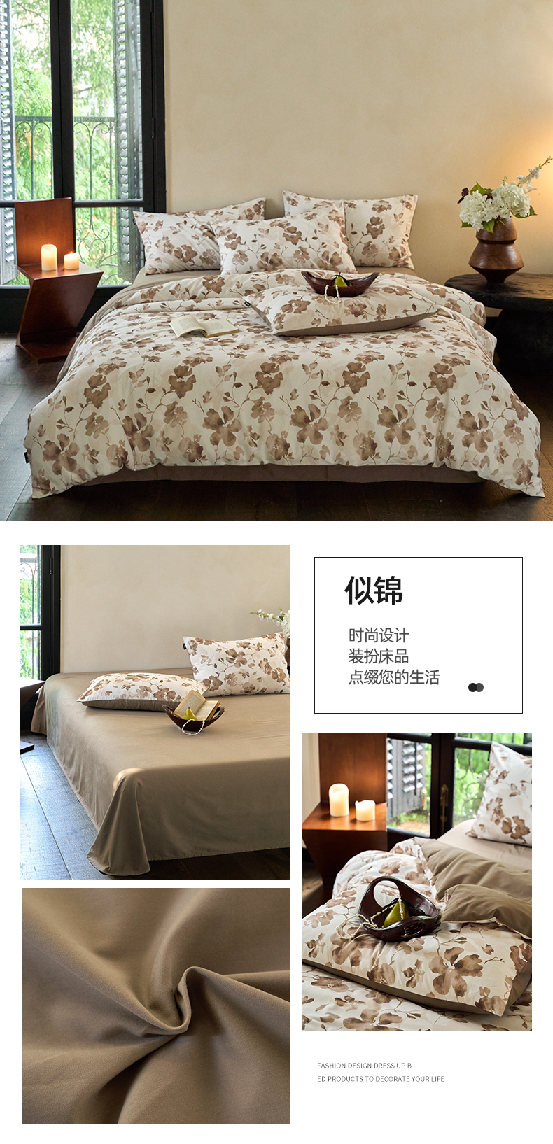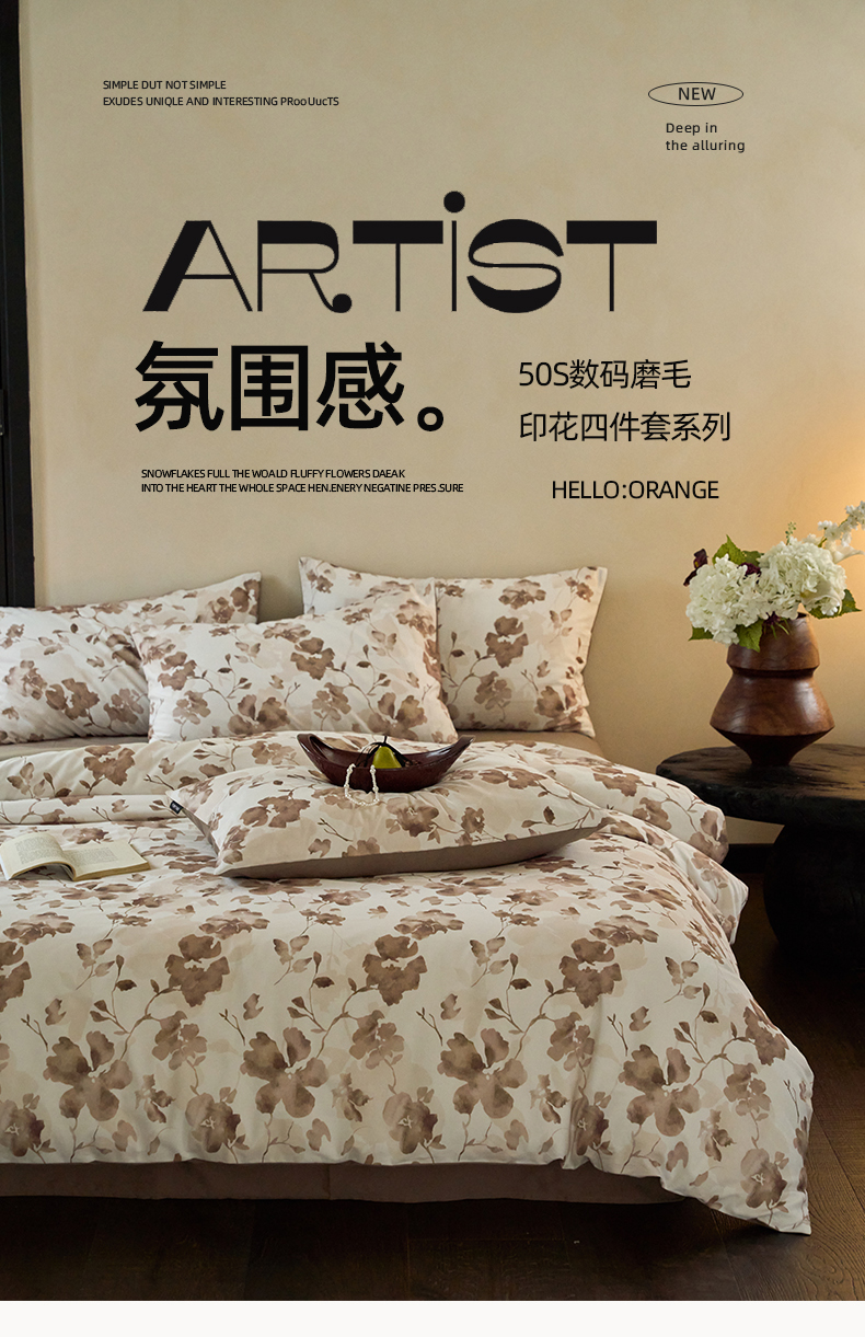当前位置: 91家纺网 > 商品网购 > 床品套件 > 四件套 > 全棉普通四件套 > FORTWO家纺原创设计(FOR TWO家纺) 2025新款50全棉纯棉数码磨毛印花四件套-场景一 似锦