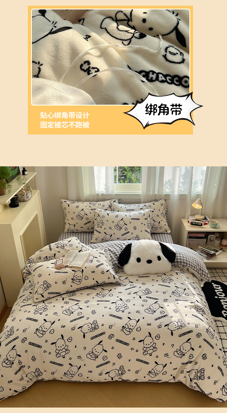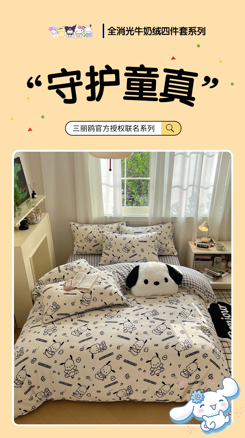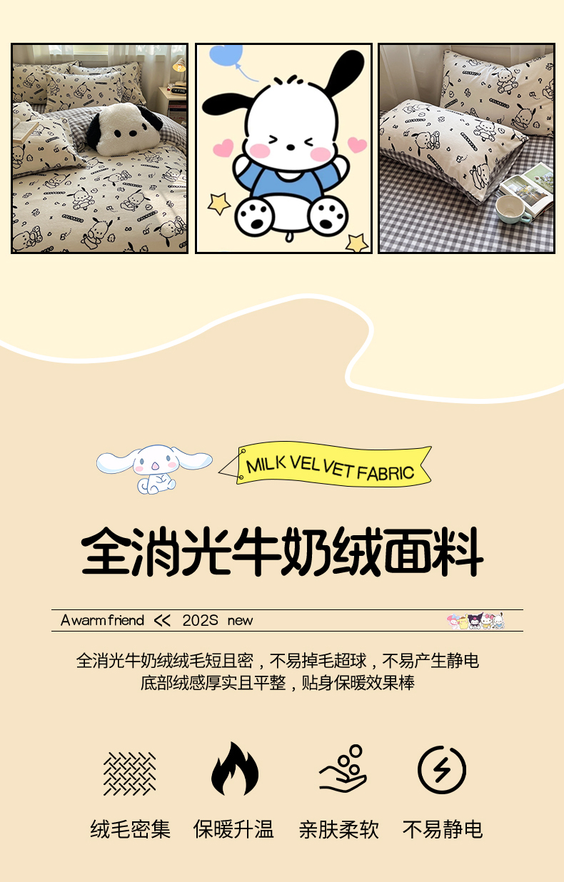 当前位置: 91家纺网 > 商品网购 > 床品套件 > 四件套 > 牛奶绒四件套 > 三朵家纺 2025新款三丽鸥印花牛奶绒四件套 漫画帕恰