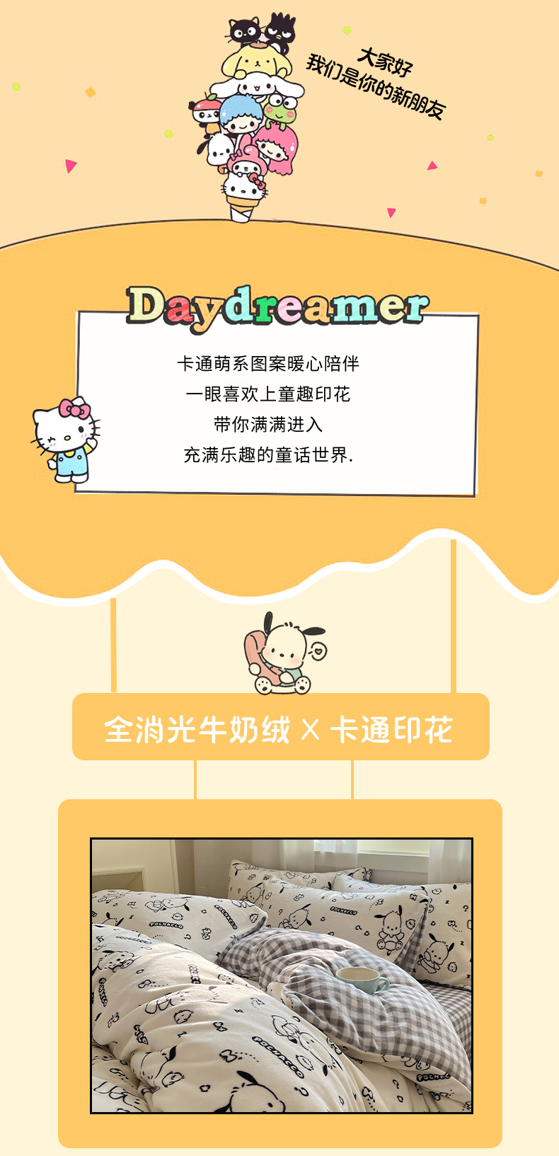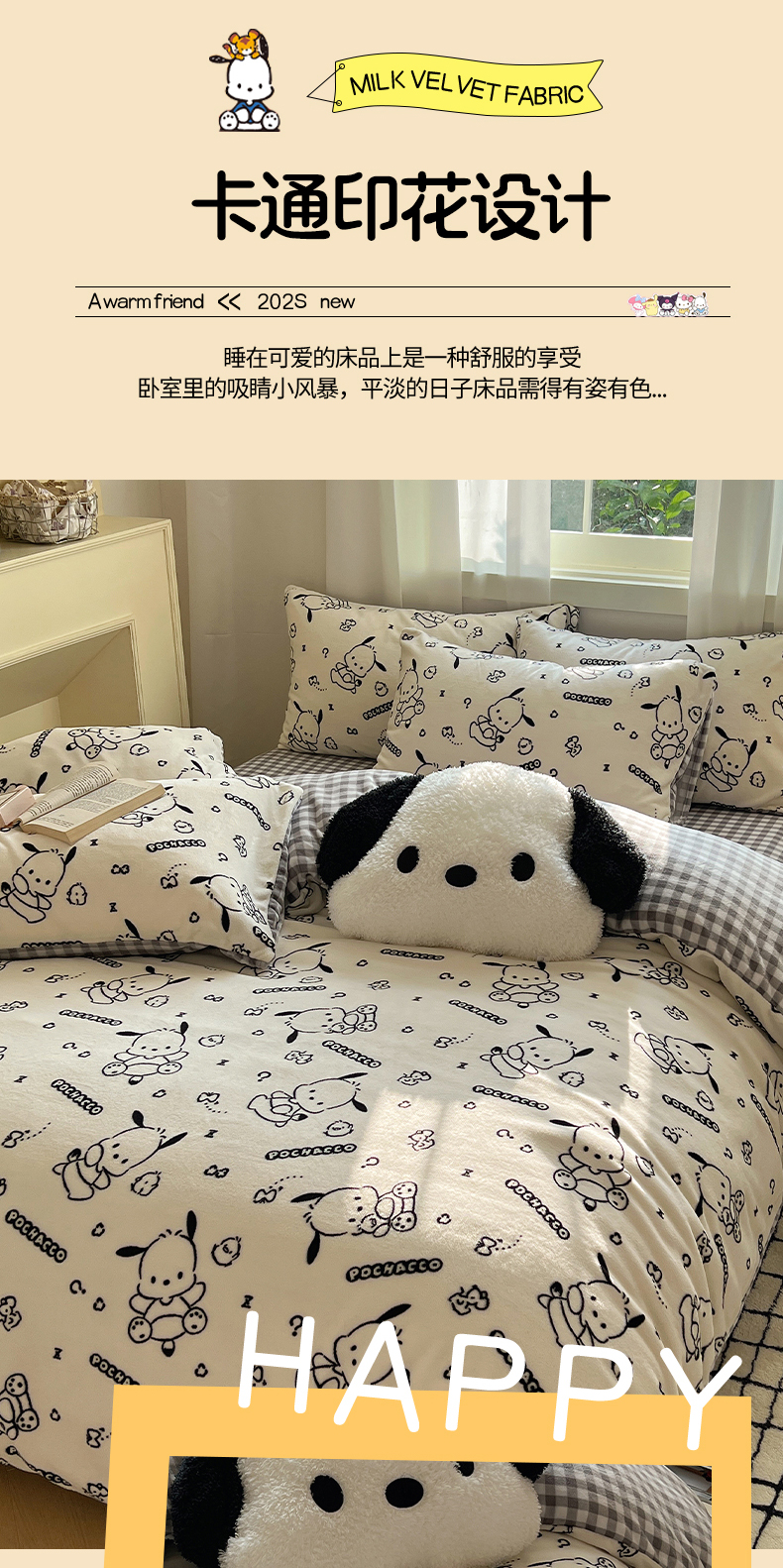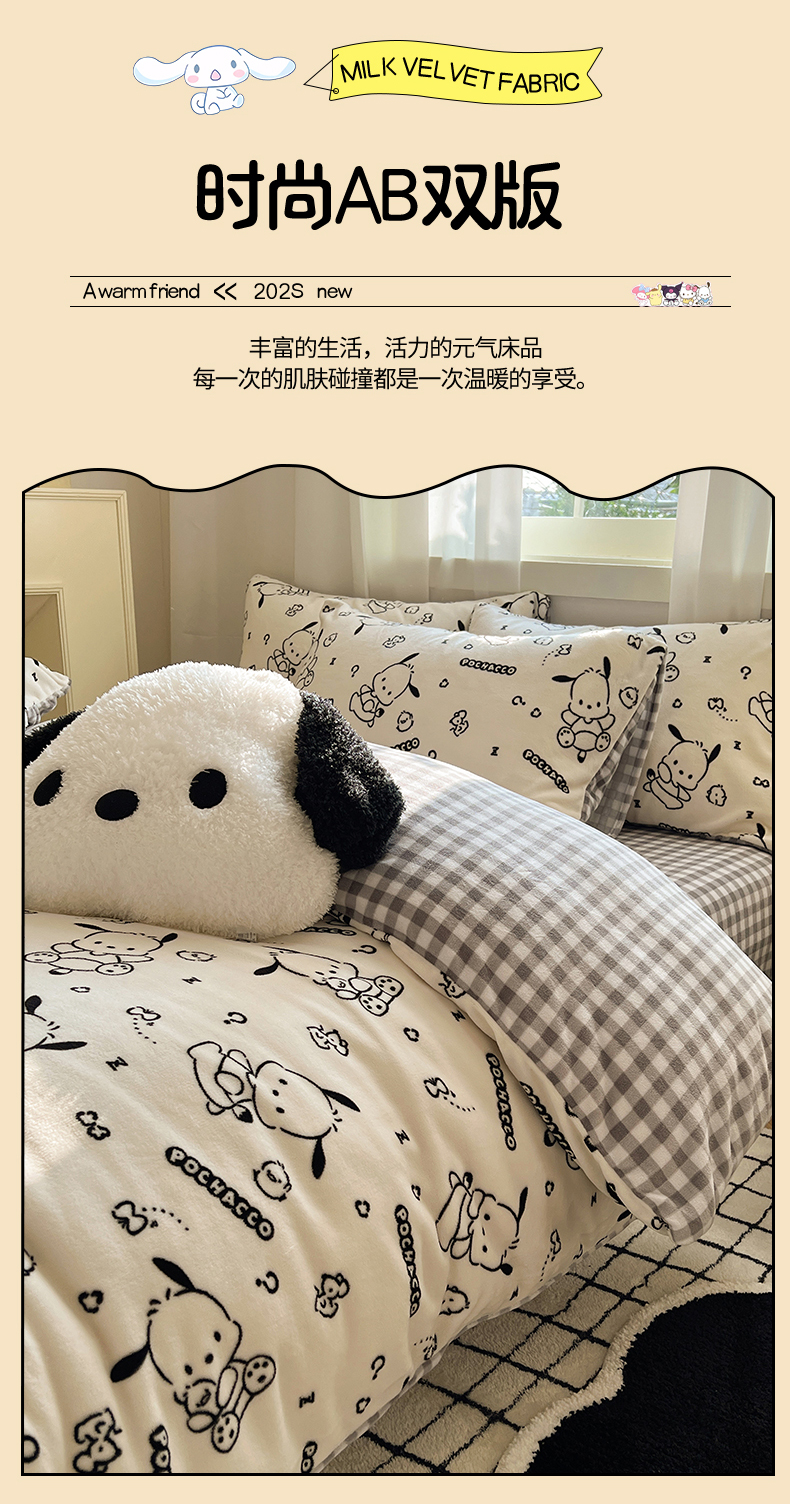 当前位置: 91家纺网 > 商品网购 > 床品套件 > 四件套 > 牛奶绒四件套 > 三朵家纺 2025新款三丽鸥印花牛奶绒四件套 漫画帕恰