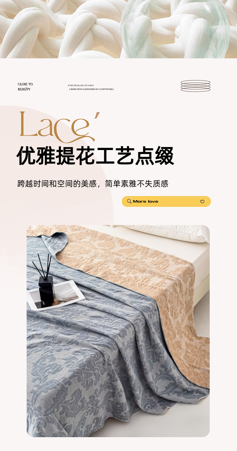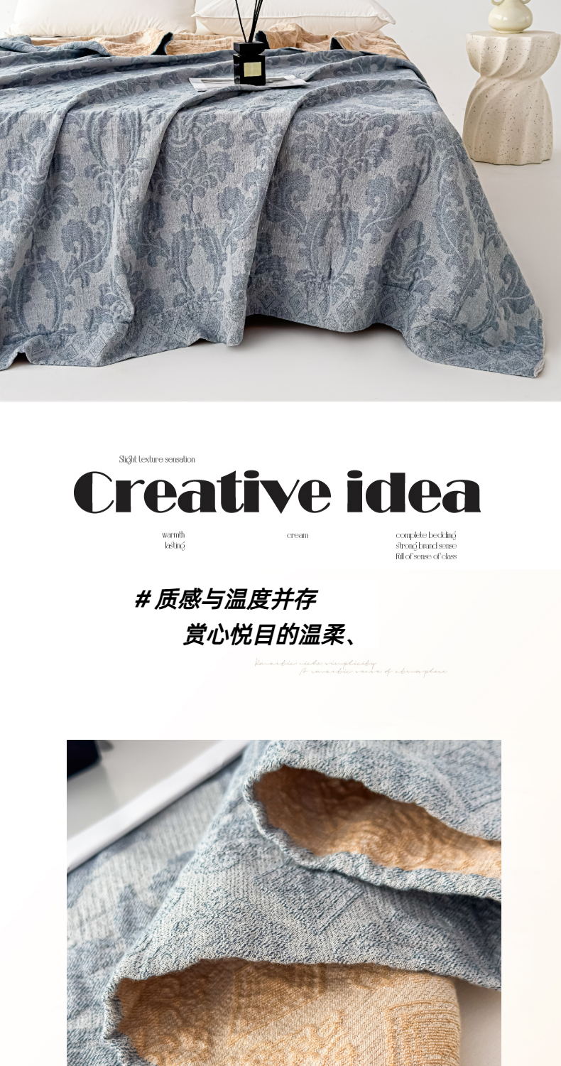 商品名称:悦然毛巾被 2025全棉欧式提花纱布毛巾被毛毯-洛可可 洛可可雾蓝