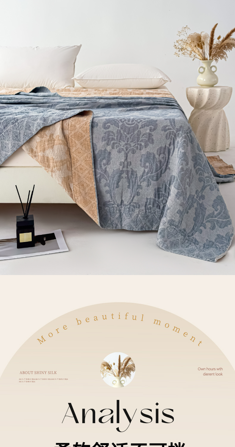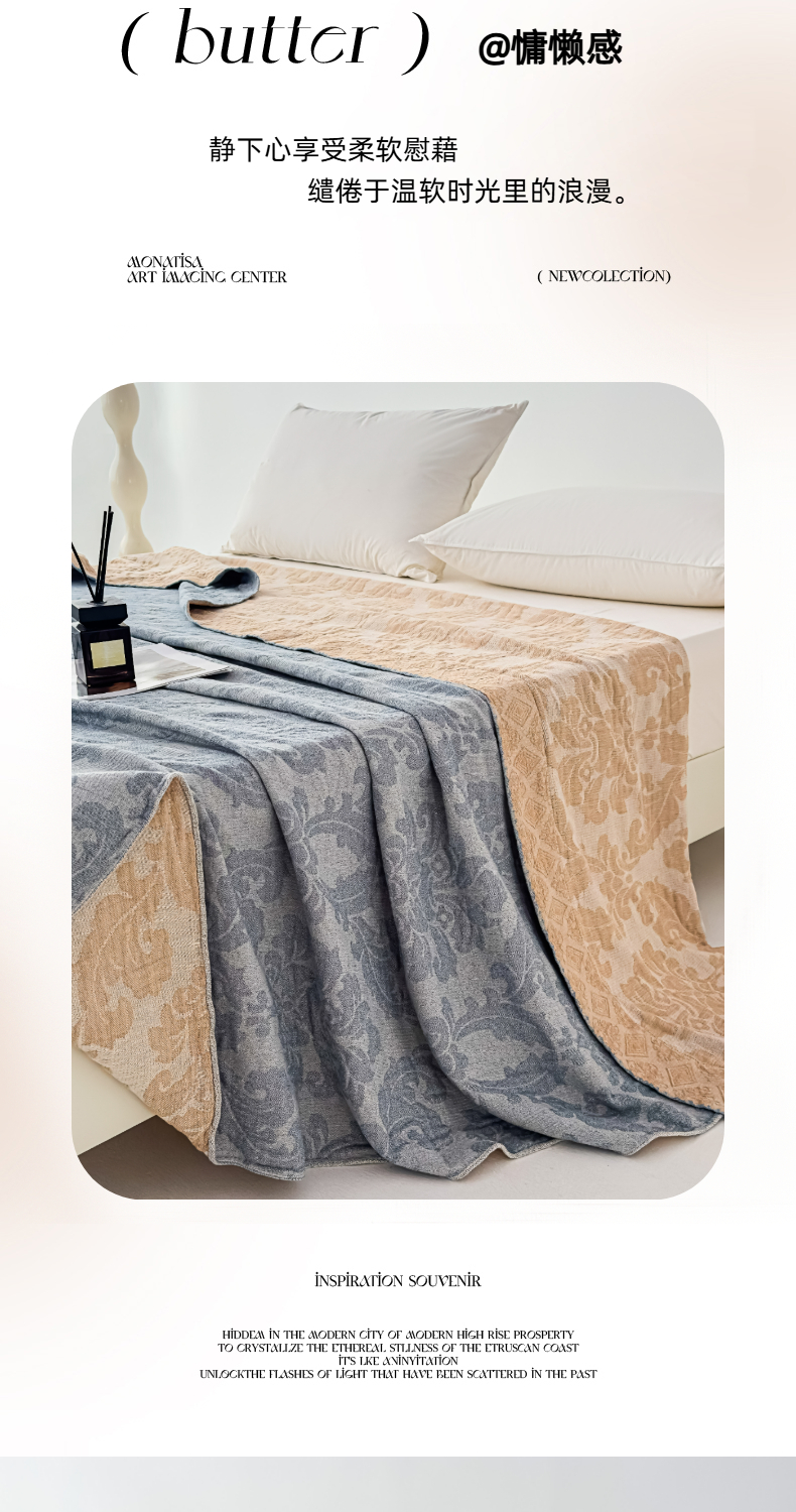 悦然毛巾被 2025全棉欧式提花纱布毛巾被毛毯-洛可可 洛可可雾蓝