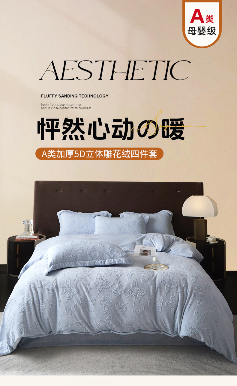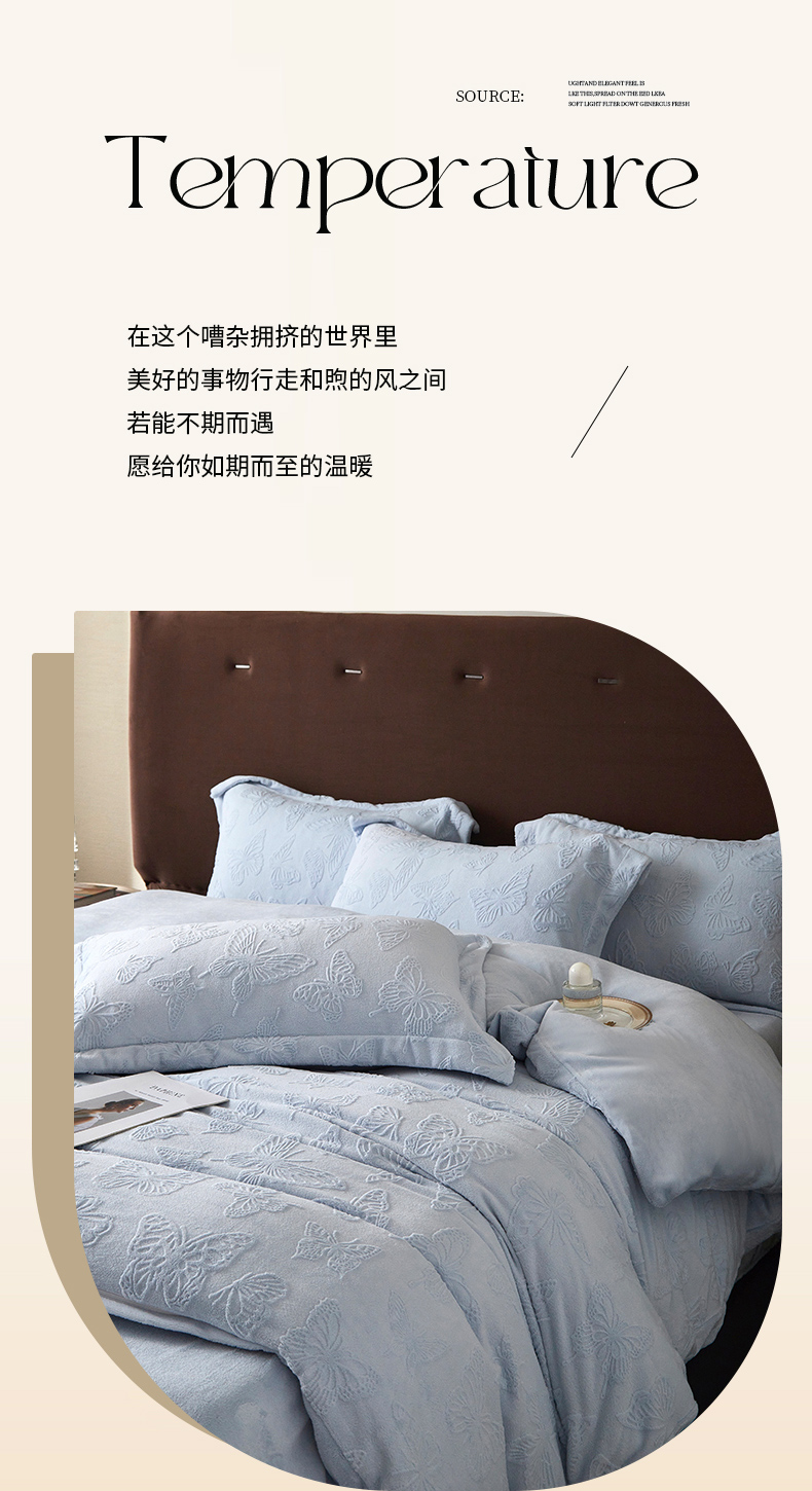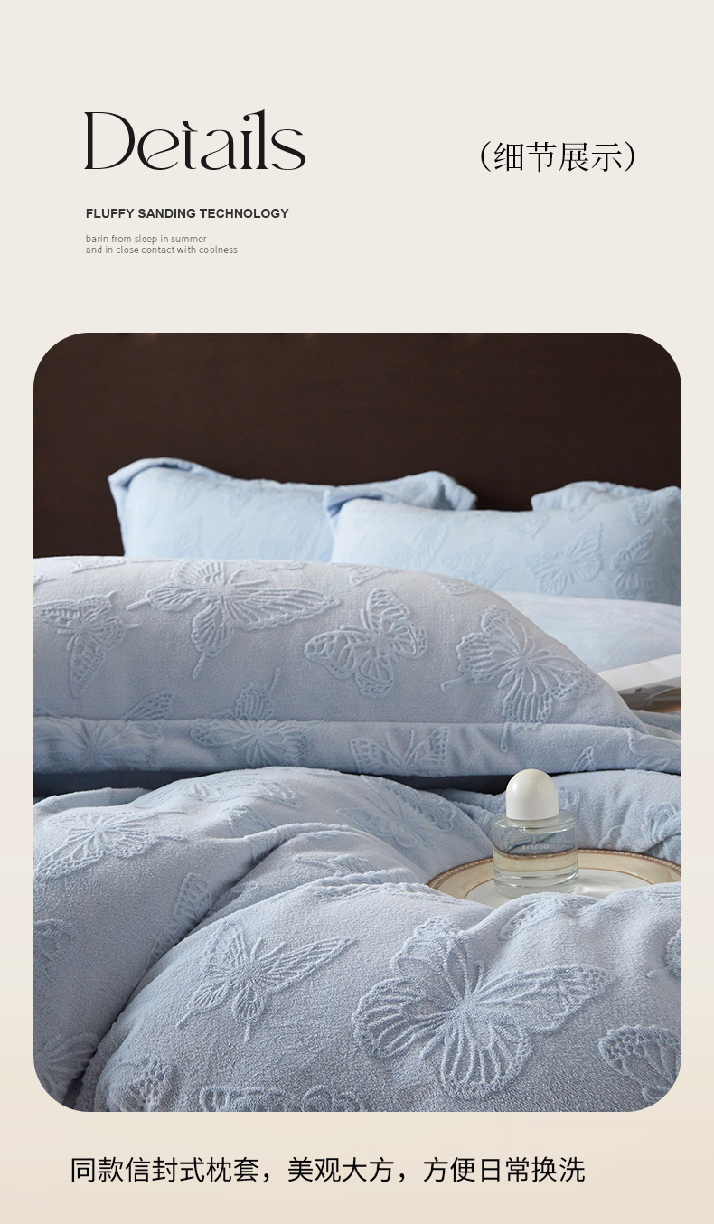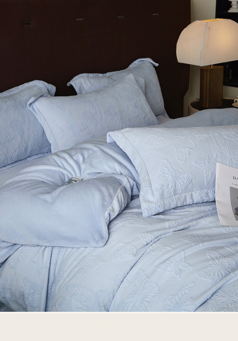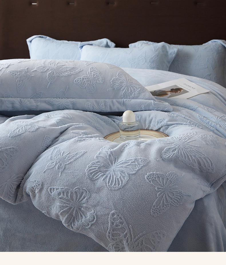 当前位置: 91家纺网 > 商品网购 > 床品套件 > 四件套 > 牛奶绒四件套 > 亿梵 2025秋冬新款A类全消光牛奶绒立体5D雕花绒四件套蝶舞轻裳-天空蓝
