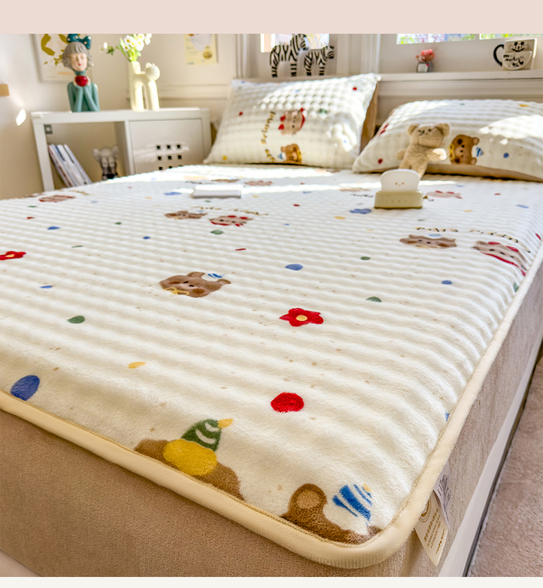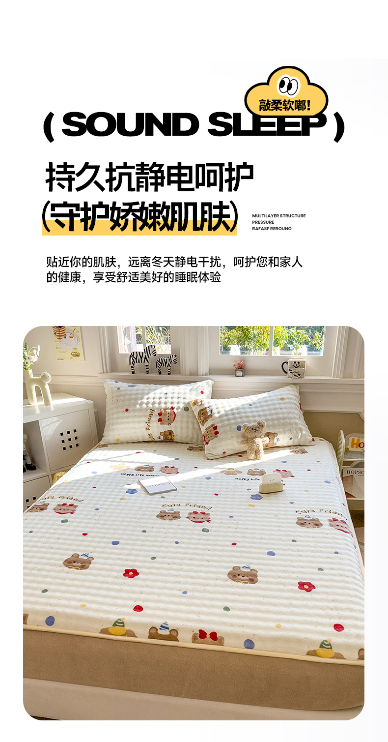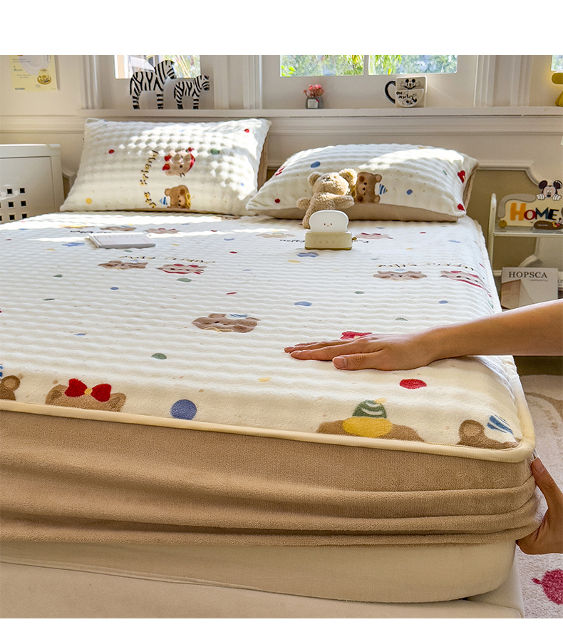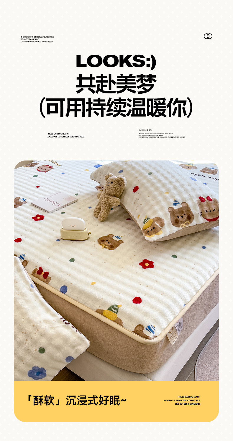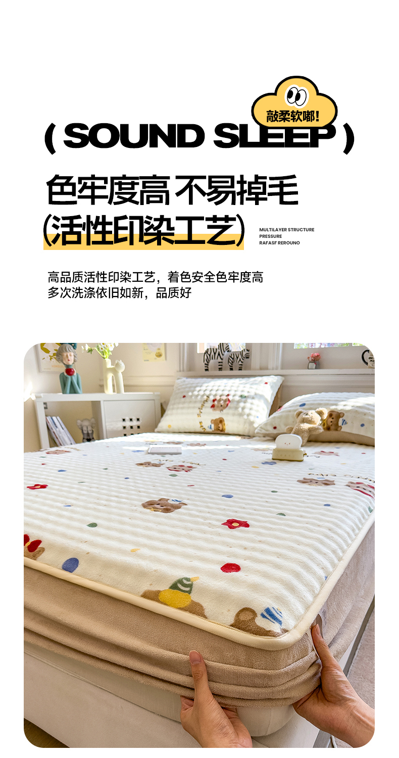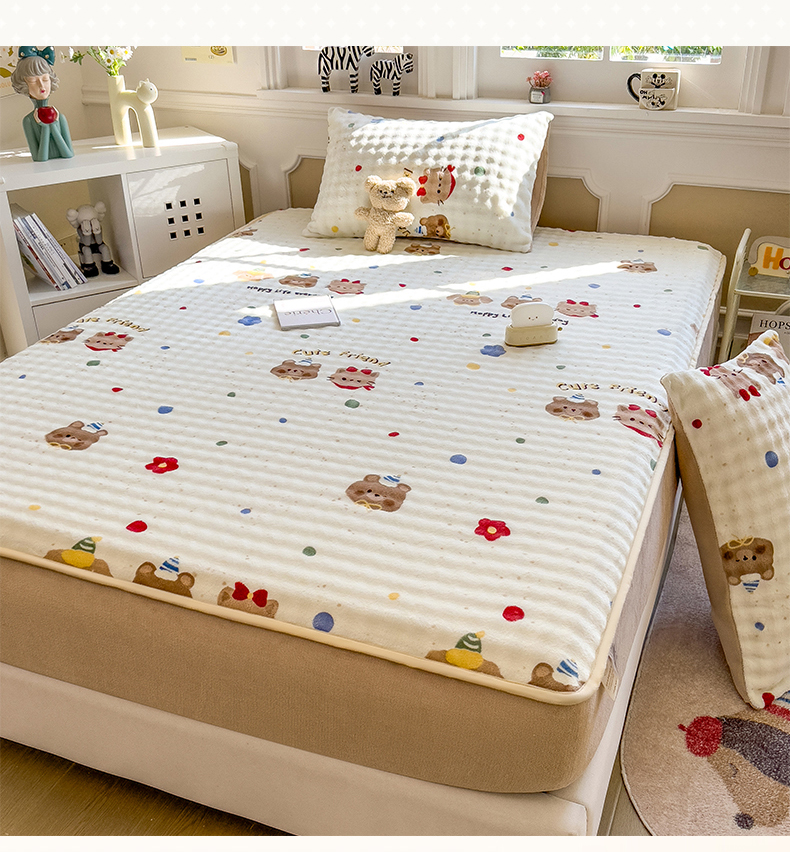 (总)摩妮卡 2025新款加厚保暖牛奶绒夹棉绣花床垫三件套,呆呆熊-蓝,呆呆熊-黄,呆呆熊-咖,Kitty猫-白,Kitty猫-粉,Kitty猫-紫