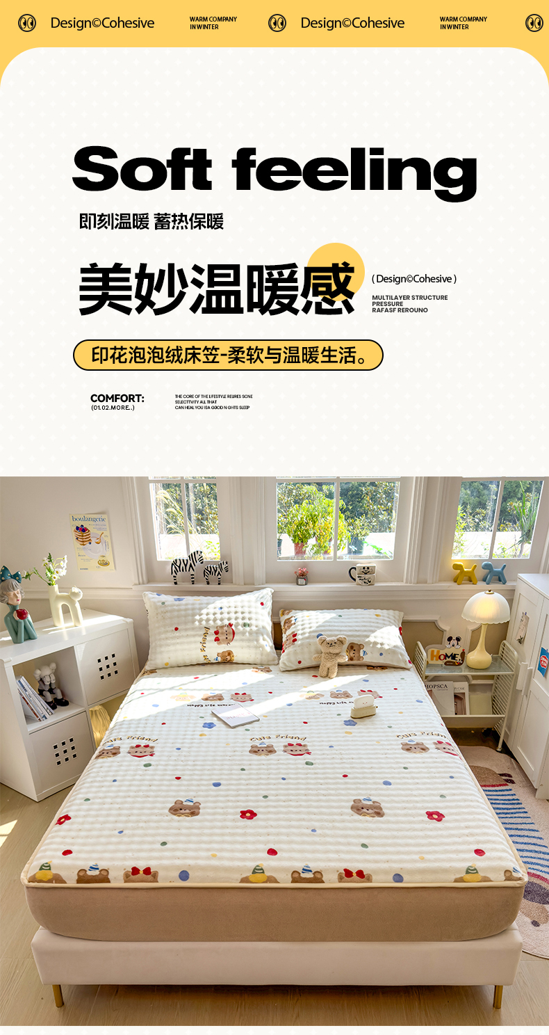 • 91家纺网 家纺一手货源 找家纺 摩妮卡 2025新款加厚牛奶绒泡泡绒床笠三件套 奇妙庄园
