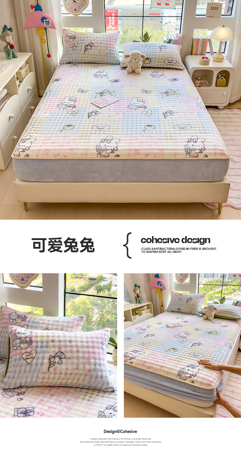 • 91家纺网 家纺一手货源 找家纺 (总)摩妮卡 2025新款牛奶绒贴布绣绒床笠保护床垫三件套,采花的小兔,免兔的日常,内向的小兔,盛日庆祝,甜点魔法师,星星餐点