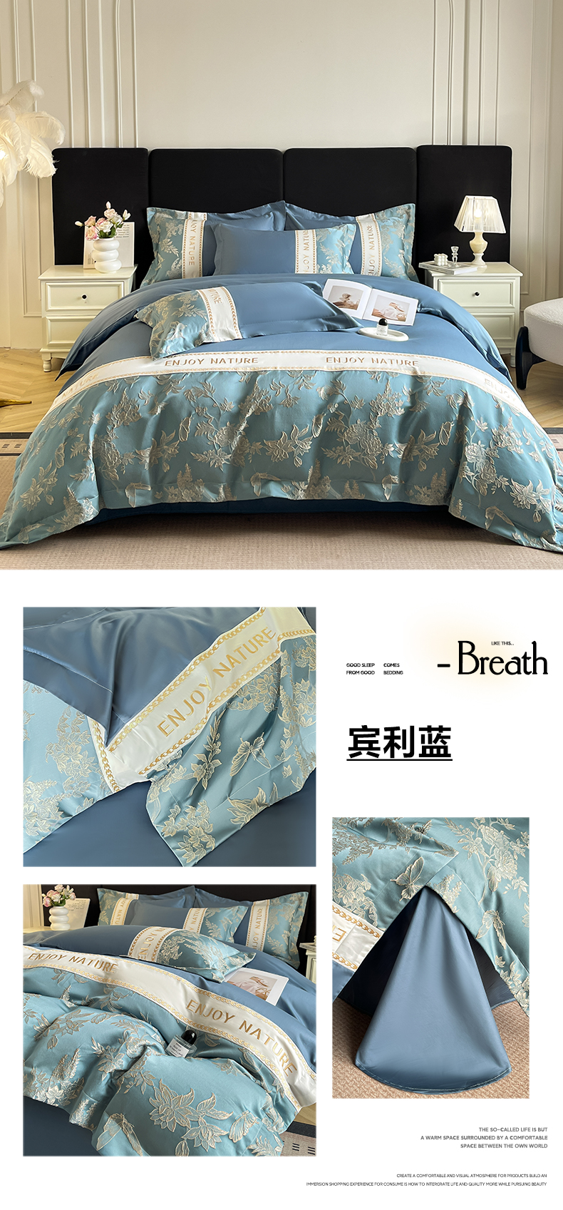 (总)博纳家纺 2025新款镂空大宽边拼角高级简奢款亲肤棉四件套-山水提花,繁星蓝,粉玉,高级灰,香槟,象牙白