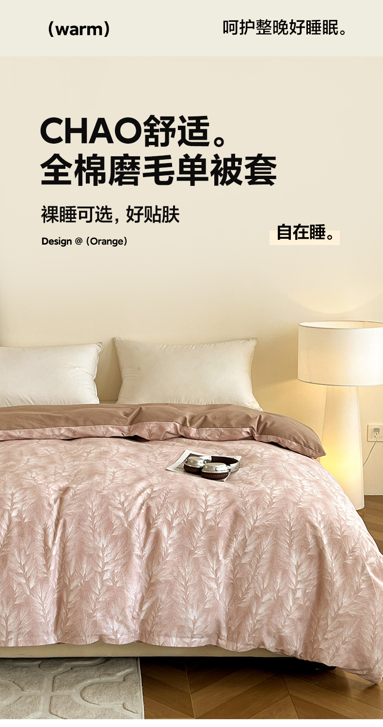 商品名称:盛馨家纺 2025新款秋冬百分百全棉纯棉磨毛单双人被套单被套被套单件 丰收季节-豆沙