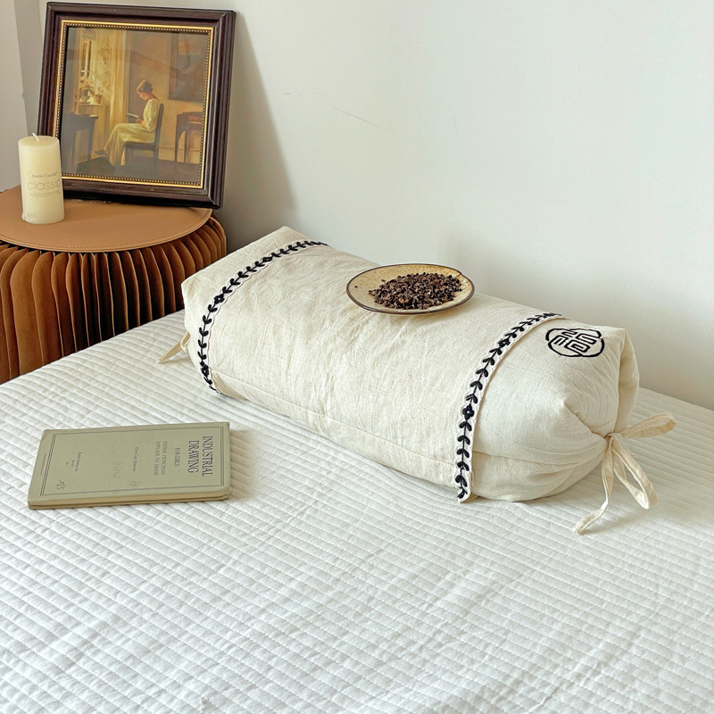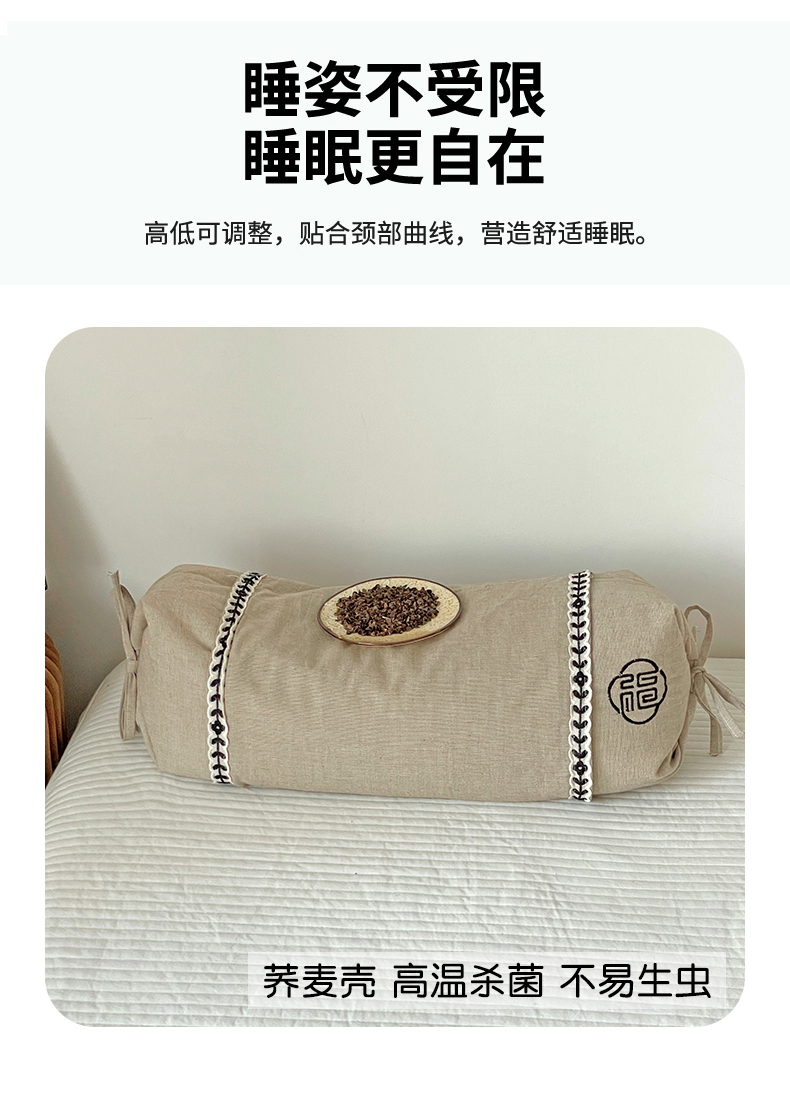 商品名称:(总)亦帆枕芯 2025新款刺绣棉麻可调节高低两用荞麦枕头枕芯可拆洗枕芯加枕套