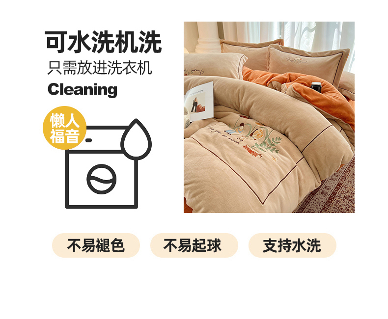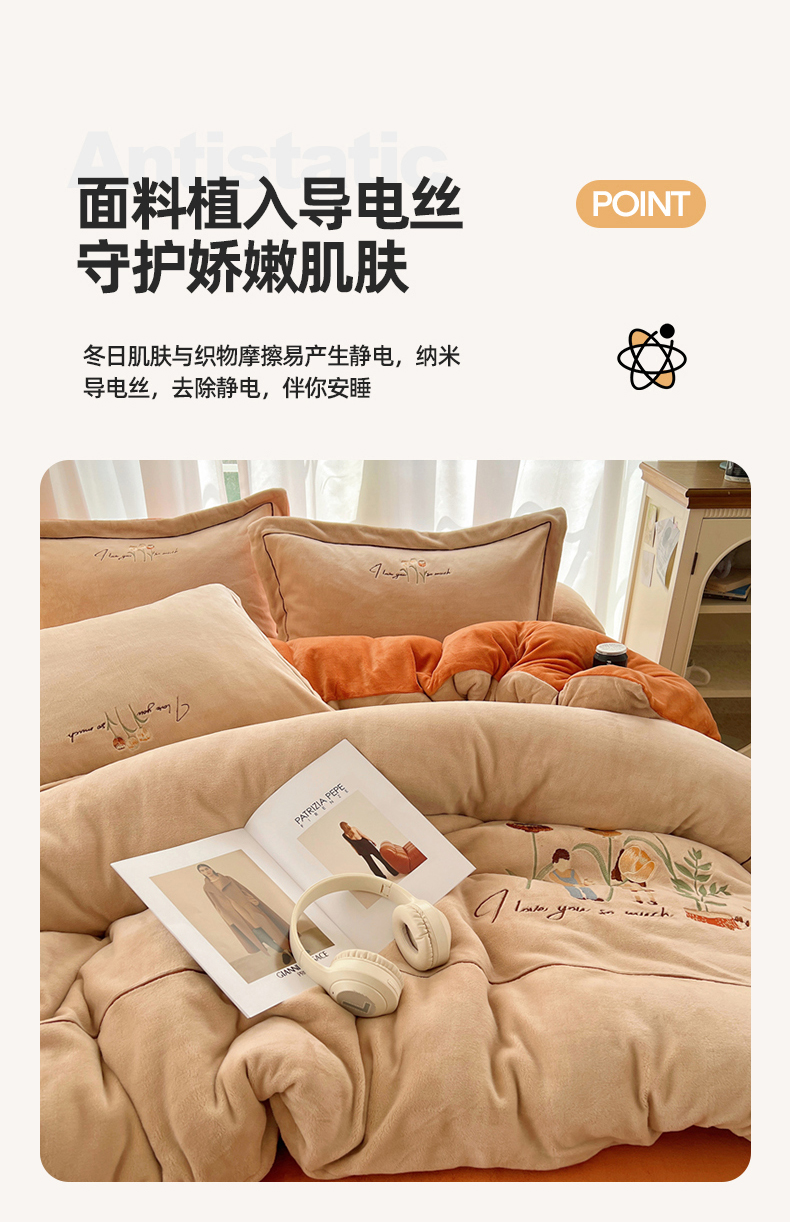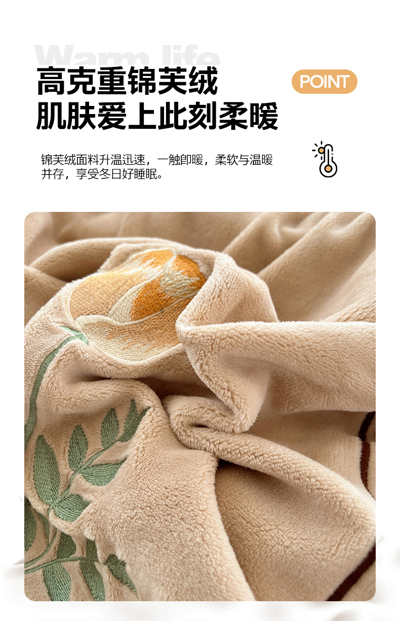 商品名称:丽涵家纺 2025新款全工艺消光锦芙绒绣花四件套 杏橘色