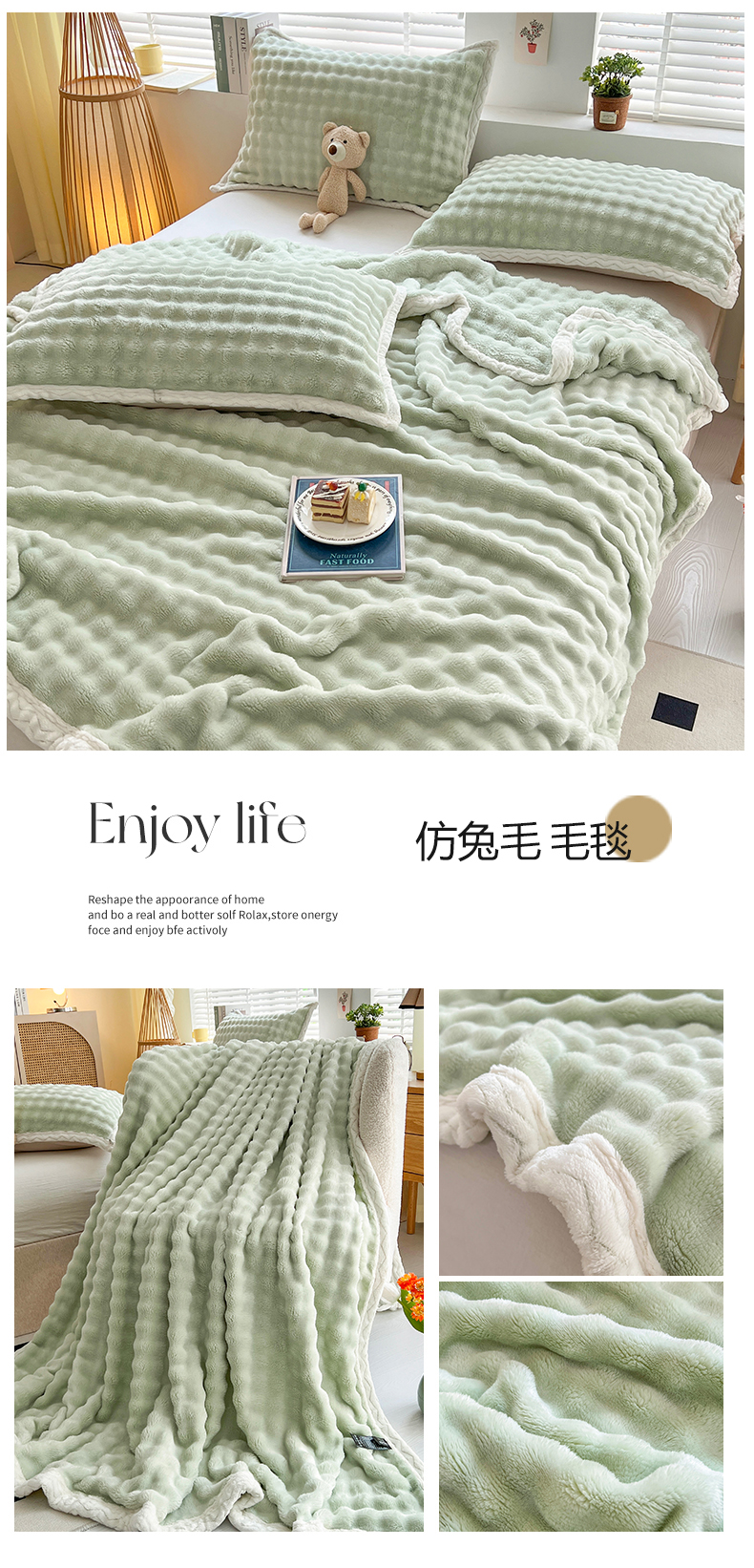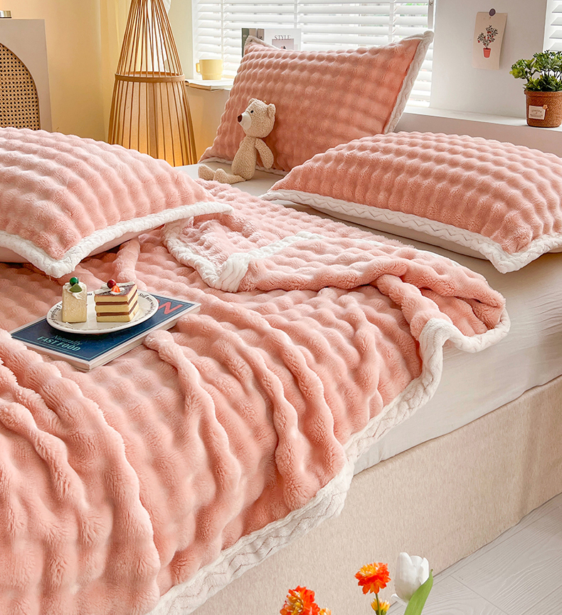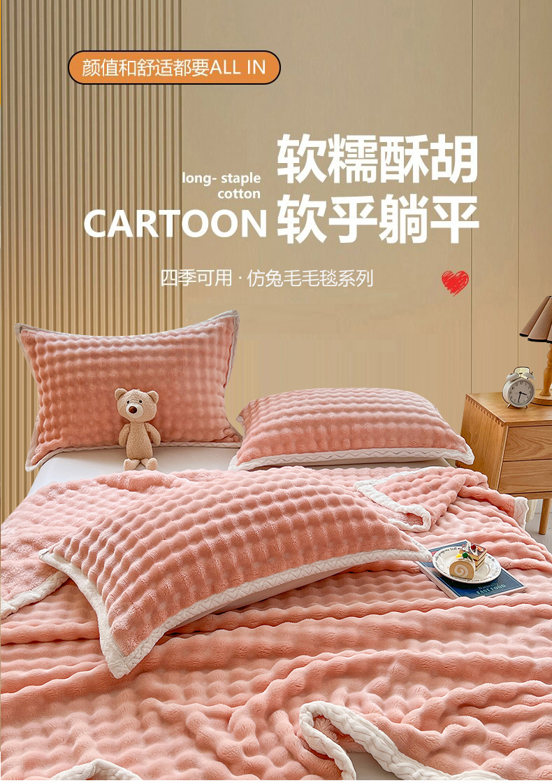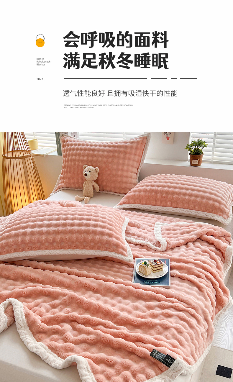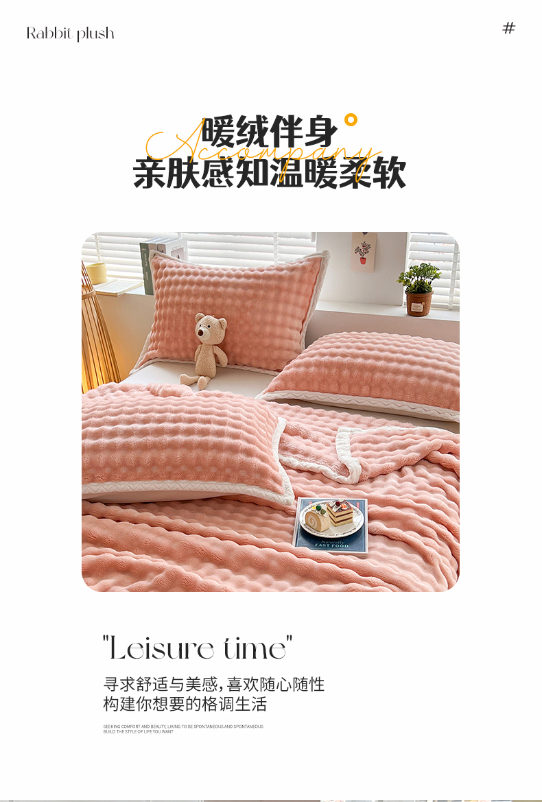 栩裕纺织 2025新款简约仿兔毛泡泡绒毛毯系列-包边款 安娜紫