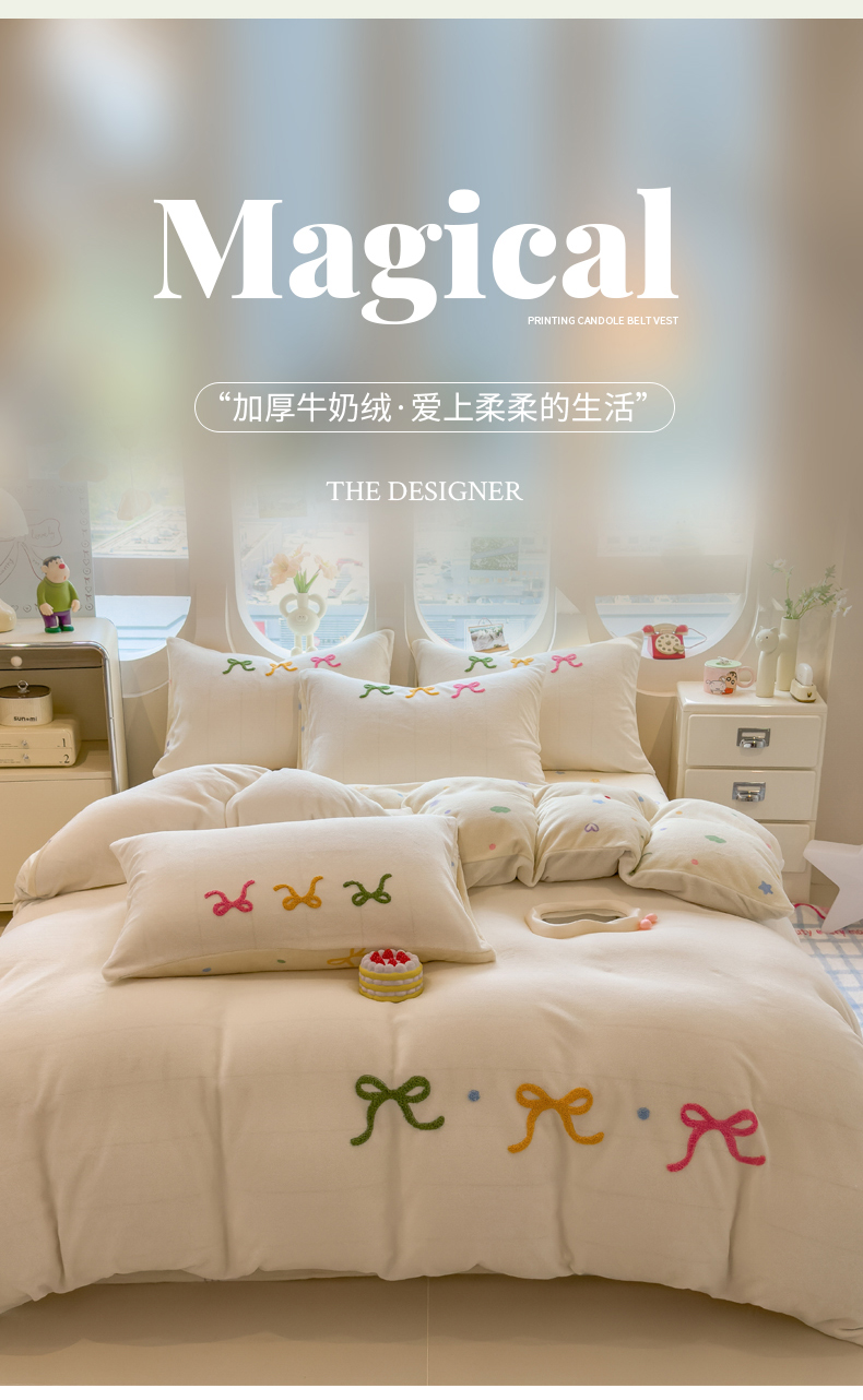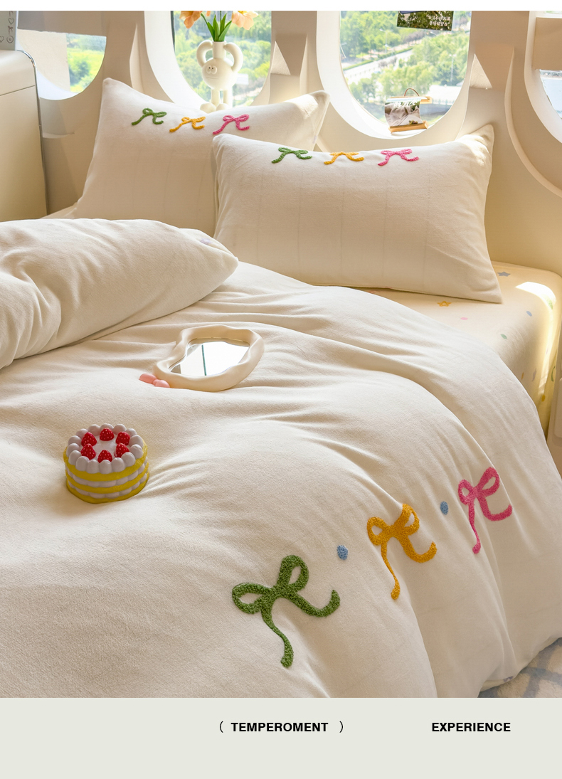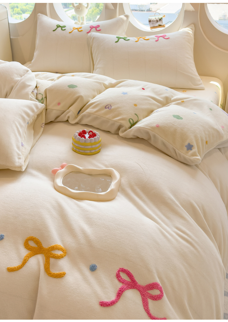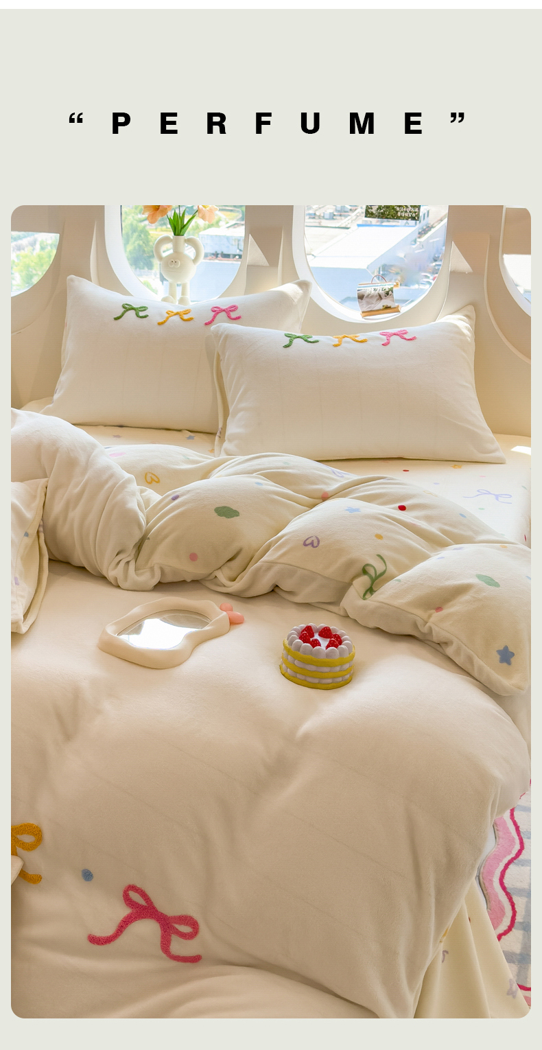 当前位置: 91家纺网 > 商品网购 > 床品套件 > 四件套 > 牛奶绒四件套 > 丝羽坊 2025新款A类潮款加厚牛奶绒四件套 彩色蝴蝶结