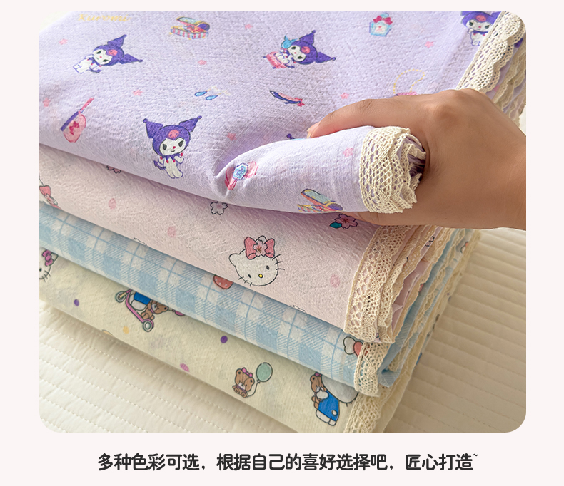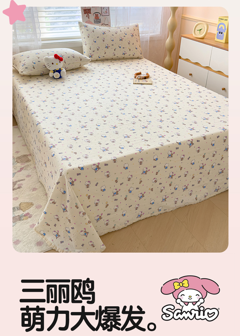 (总)梦庭帛美 2025新款高克重110克云感提花皱皱纱正版三丽鸥床单,甜蜜电话-粉,条纹KT,童趣美乐蒂,彩绘小奶猫,木马美乐蒂,时尚库洛米,甜蜜电话-蓝,粉樱凯蒂,奶芙KT