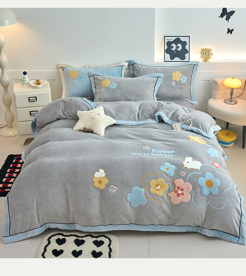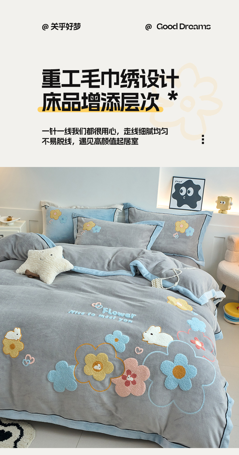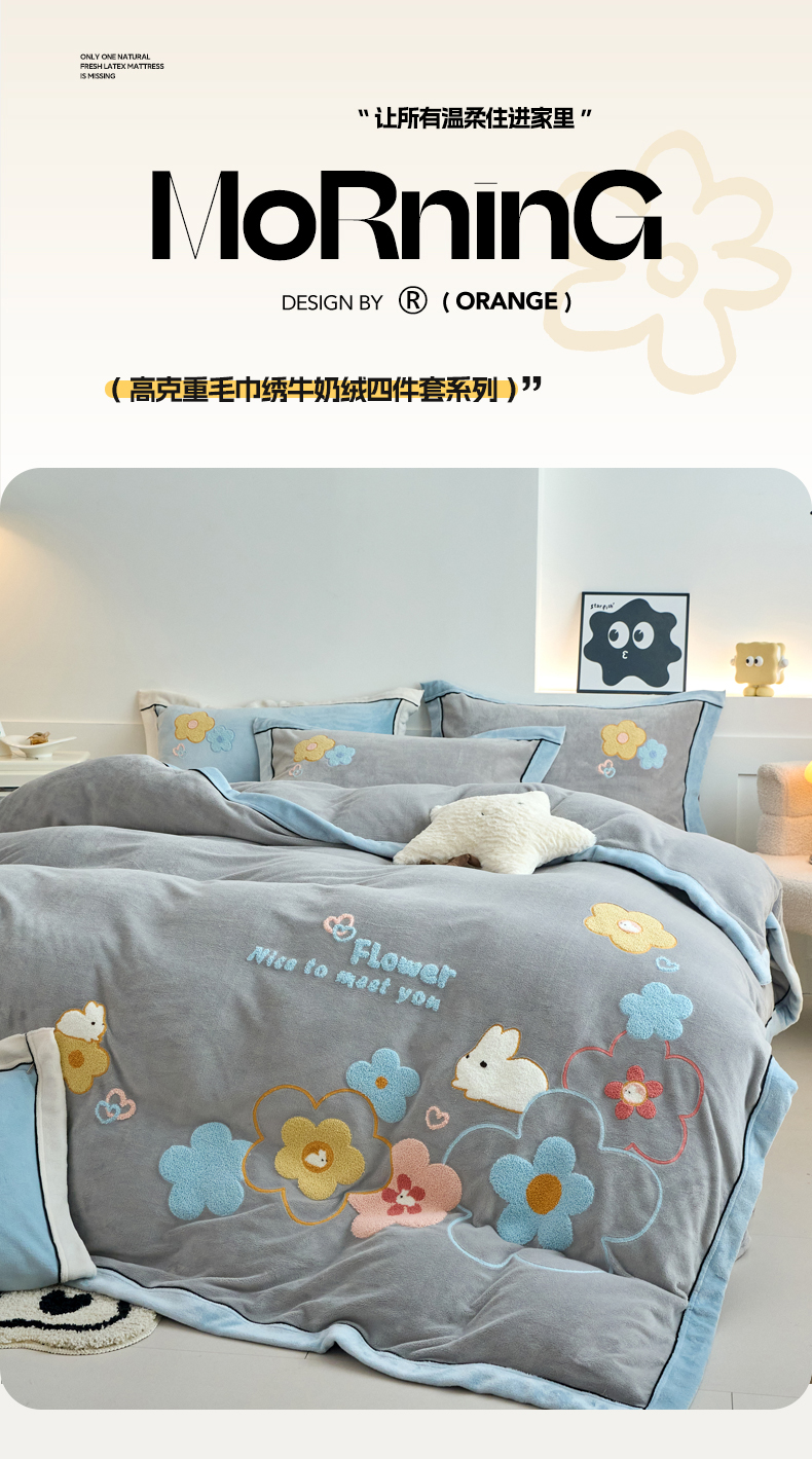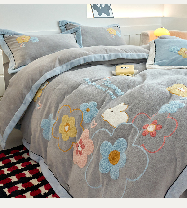 当前位置: 91家纺网 > 商品网购 > 床品套件 > 四件套 > 牛奶绒四件套 > 兰紫橙家纺 2025新款亲肤舒适毛巾绣牛奶绒四件套 桃花朵朵开-绅士灰