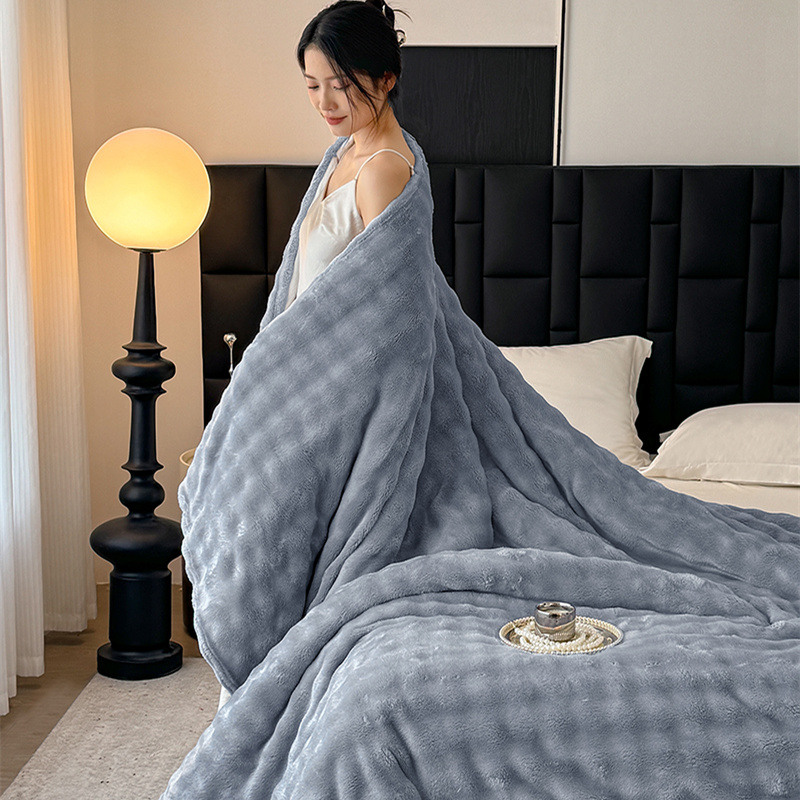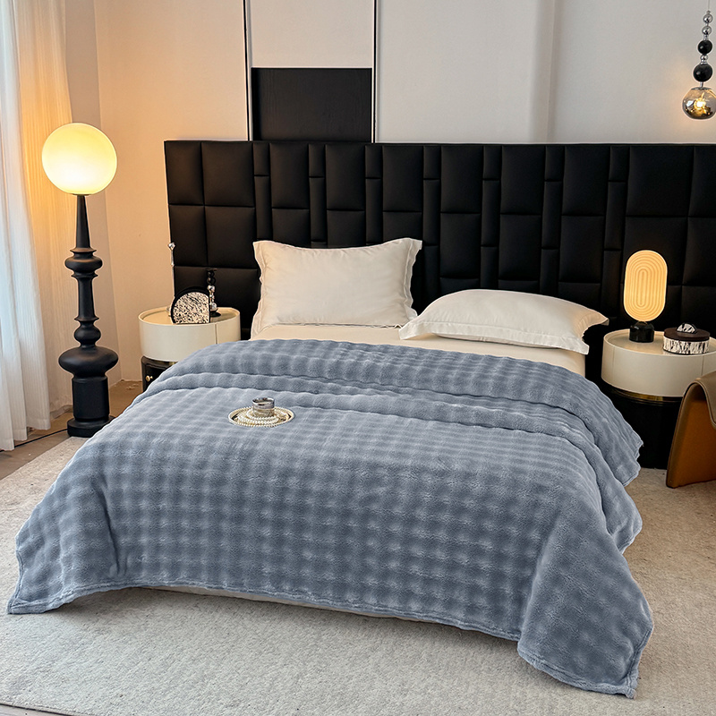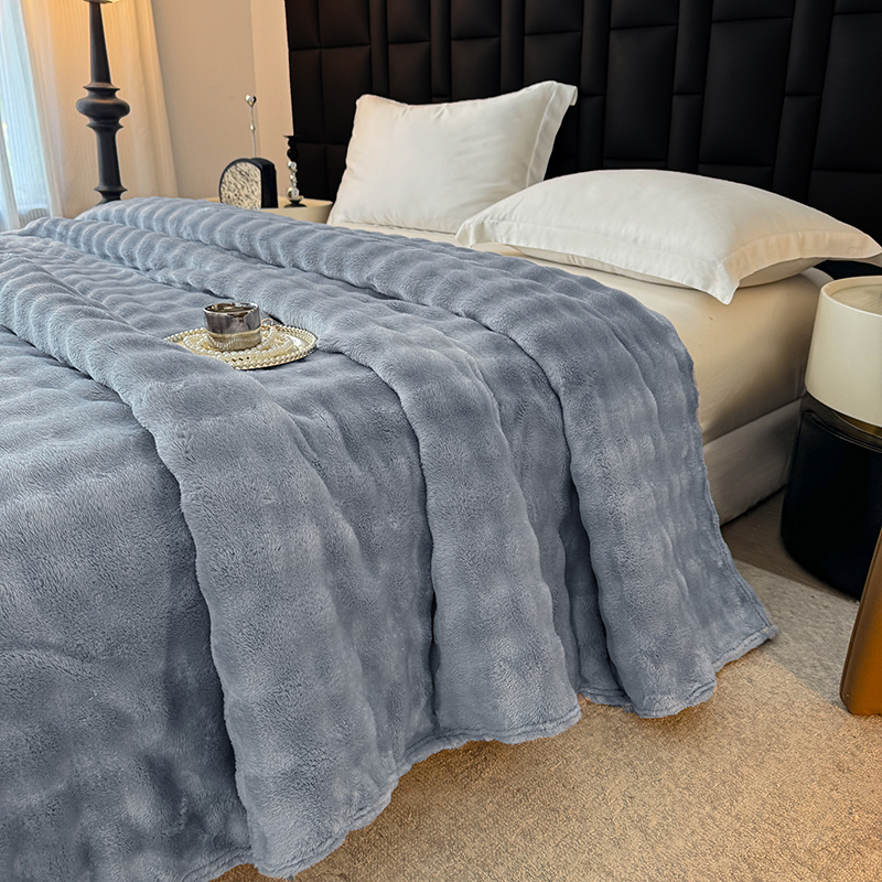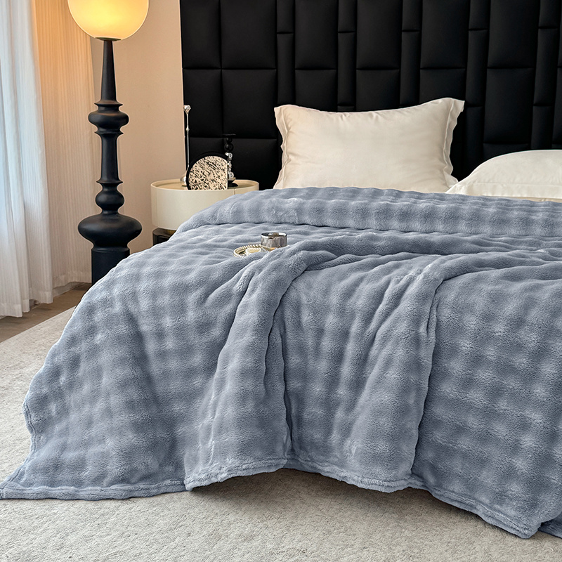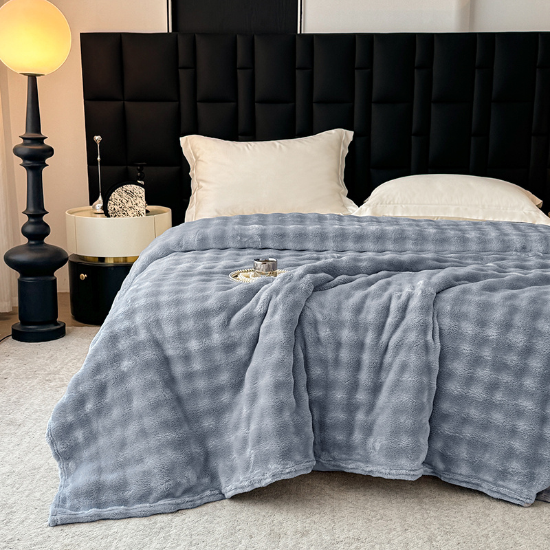 安琪家纺 2025新款300G炫彩水墨画仿兔毛绒大泡泡绒印花法兰绒毛毯大理石纹休闲毯沙发盖毯跨境外贸出口专供 泡泡纯色-浅灰