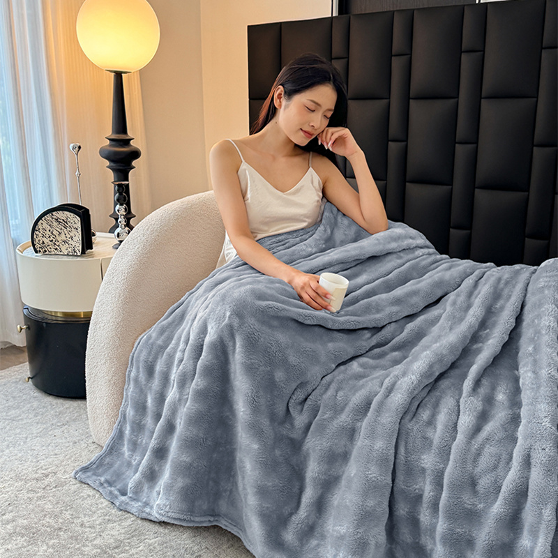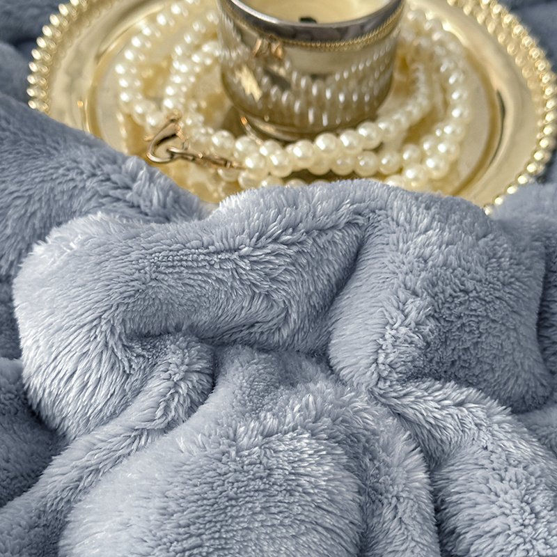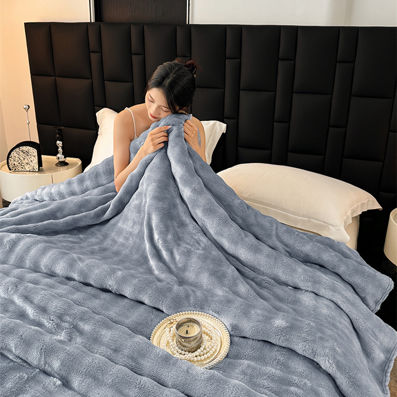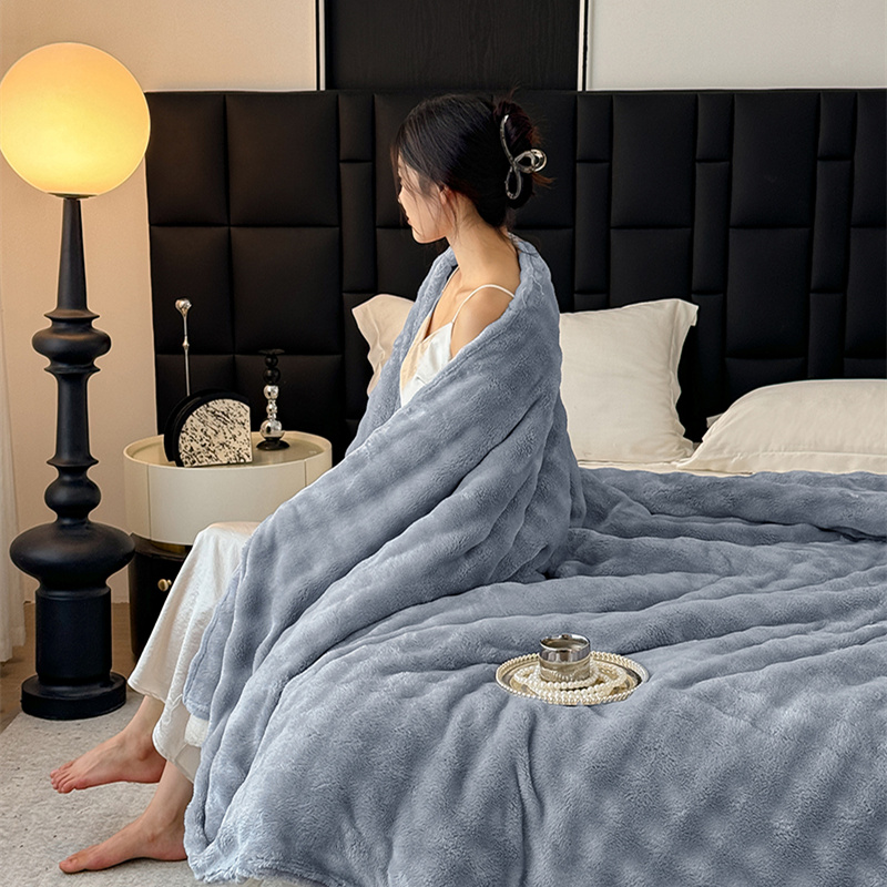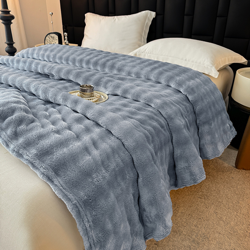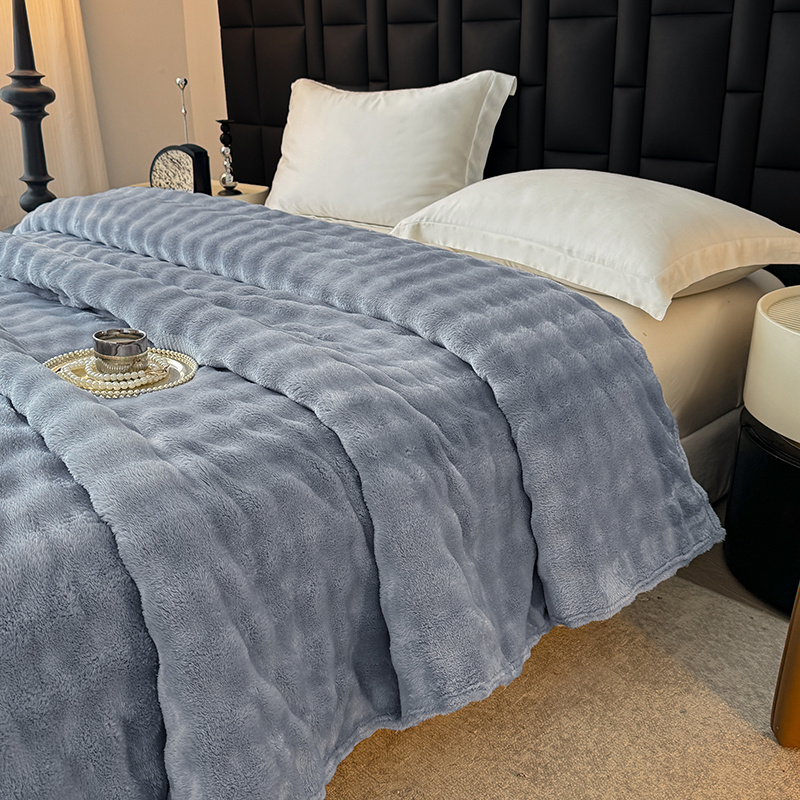 安琪家纺 2025新款300G炫彩水墨画仿兔毛绒大泡泡绒印花法兰绒毛毯大理石纹休闲毯沙发盖毯跨境外贸出口专供 泡泡纯色-浅灰