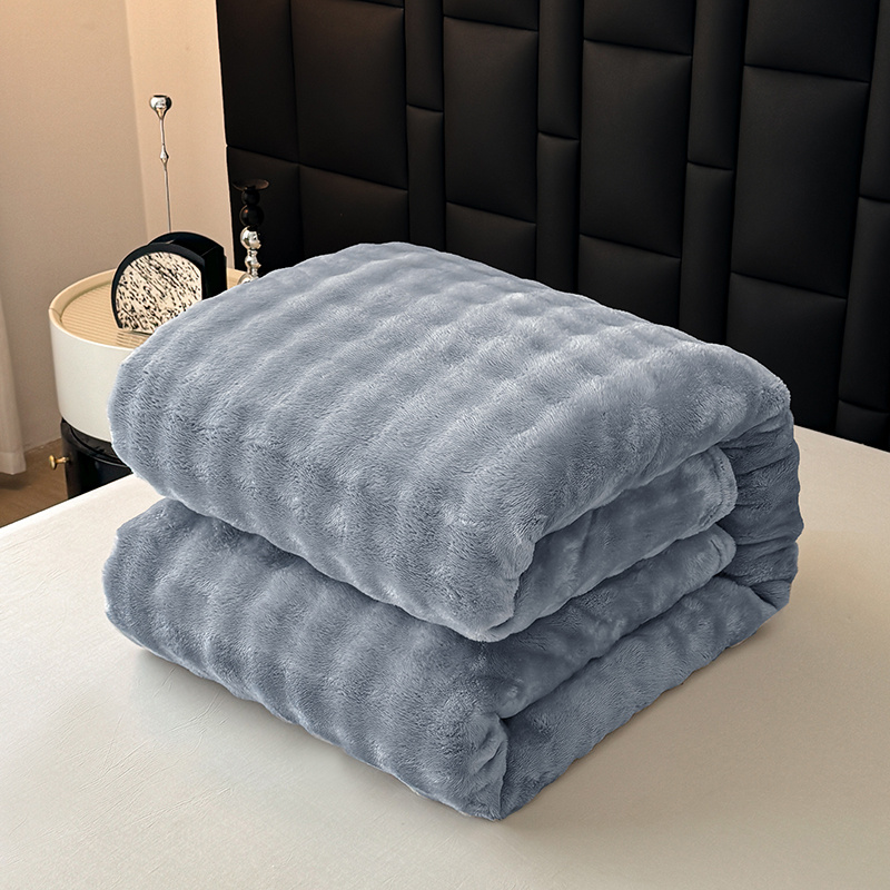 (总)安琪家纺 2025新款280克直播爆品兔毛绒高克重多功能抽条毛毯盖毯午睡毯跨境外贸,果绿,深灰,酒红,粉色,咖色,奶白,浅灰,紫色,藏青
