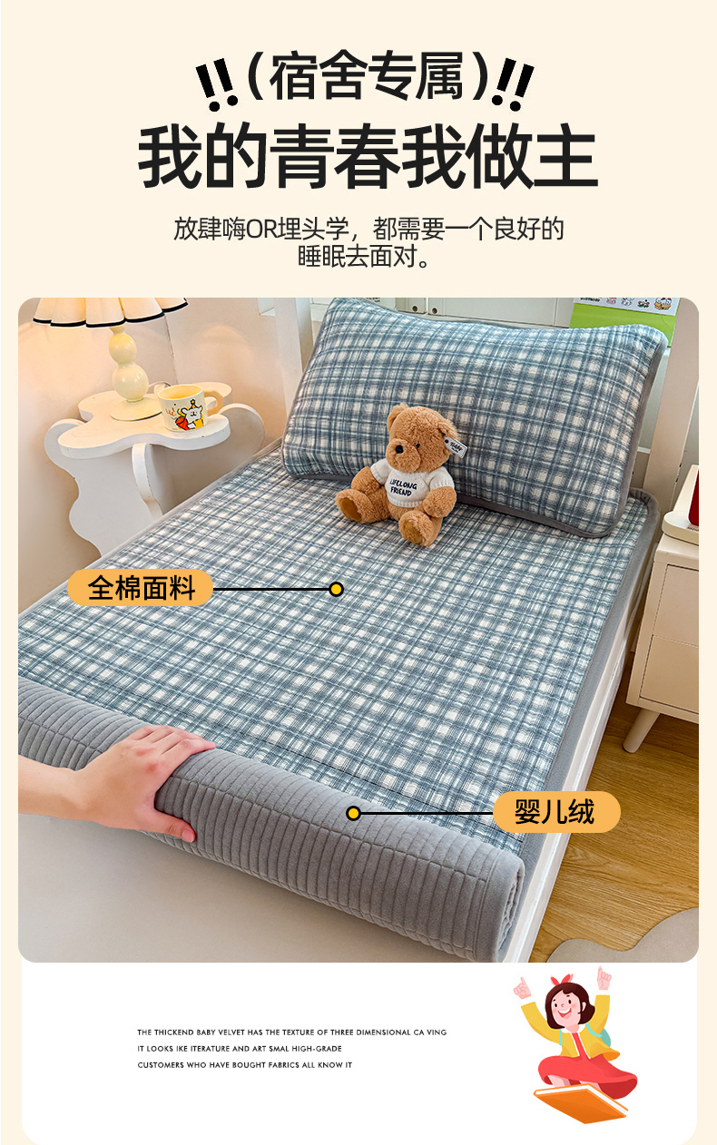 梵朴 2025新款A类棉加绒一面纯棉一面宝宝婴儿牛奶绒双面可用床盖学生宿舍床垫炕盖-学生床图 可可蓝格