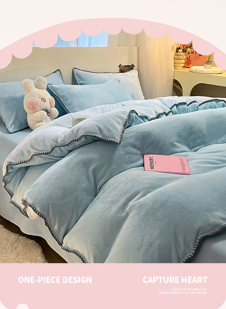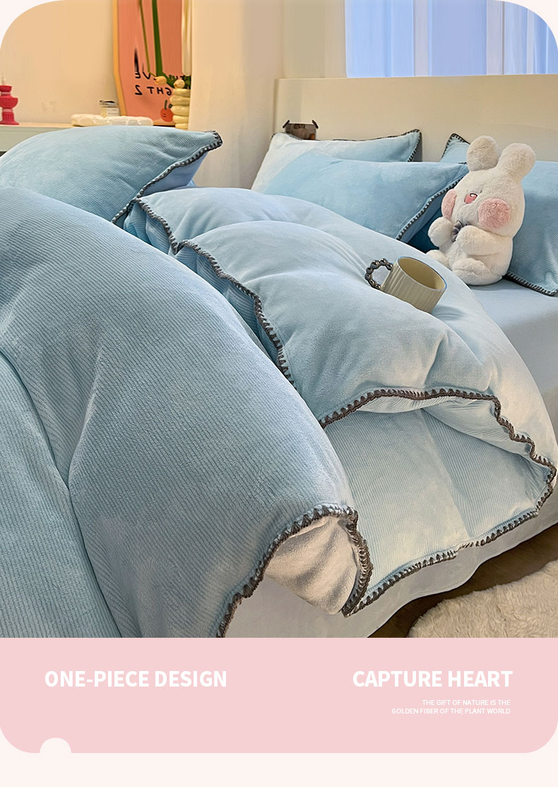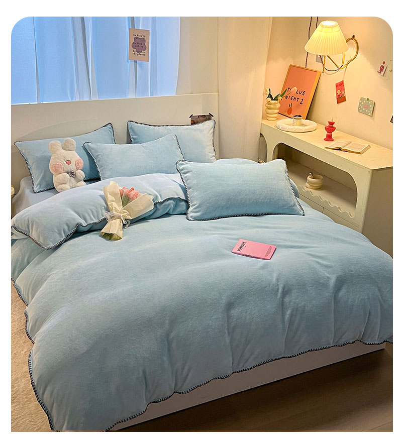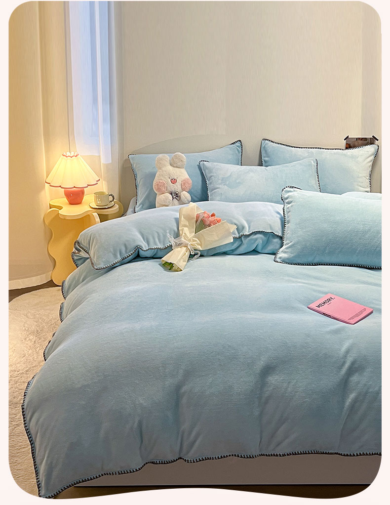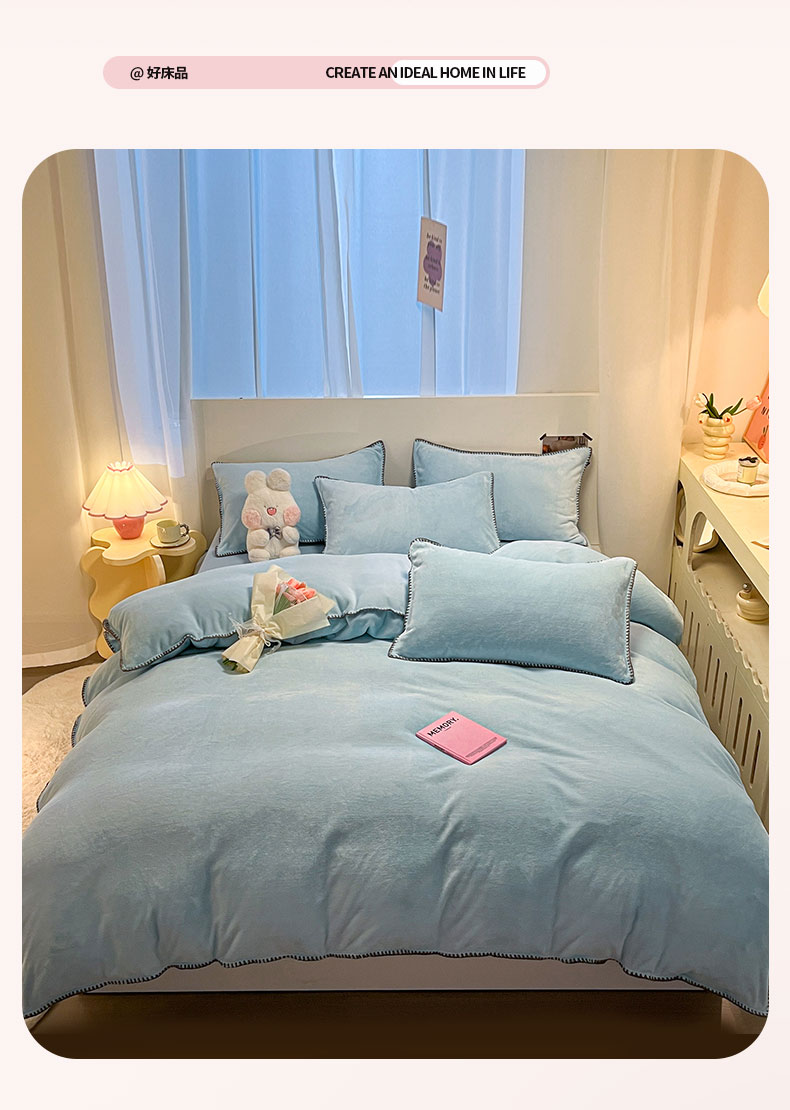 商品名称:ab家纺 2025新款贝壳边消光牛奶绒四件套 浅兰