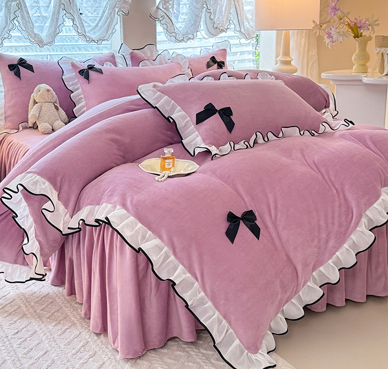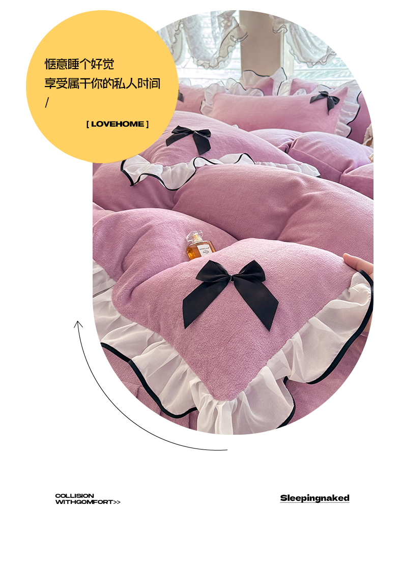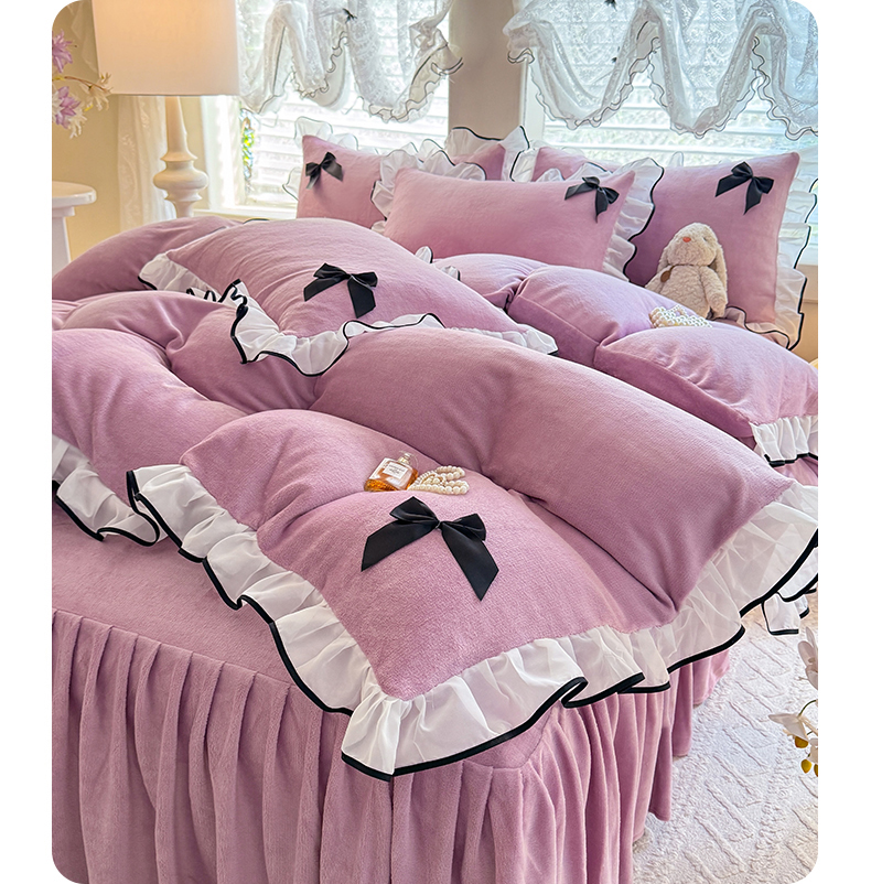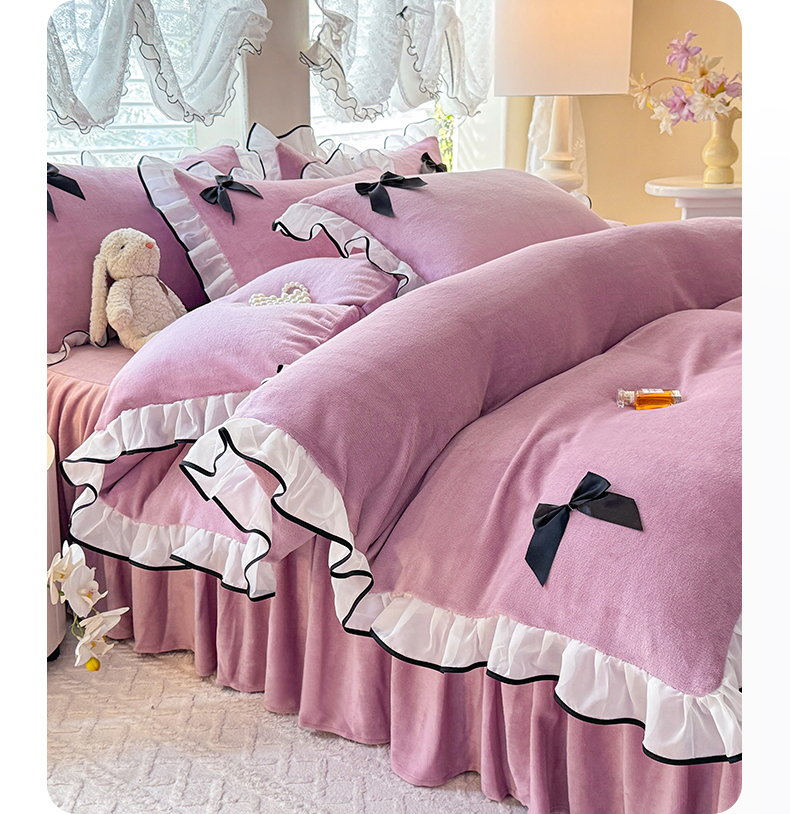 莉莉安家纺 2025新款牛奶绒床裙四件套-潘多拉系列 潘多拉-紫