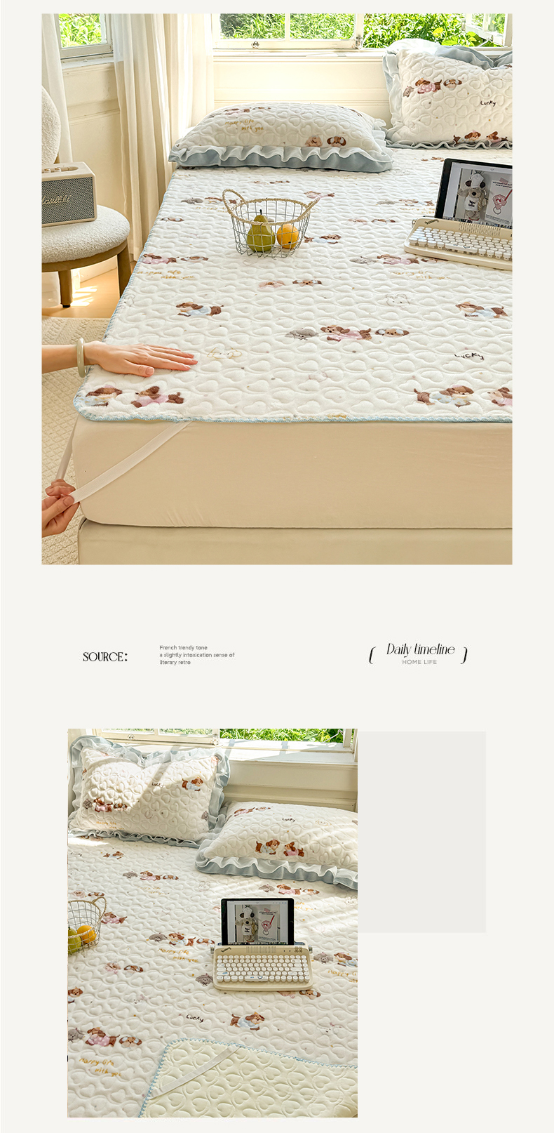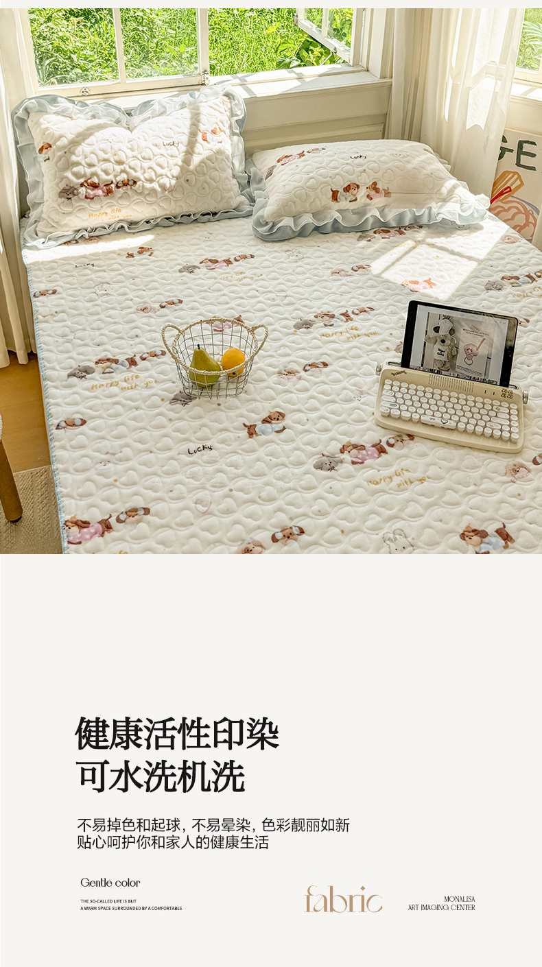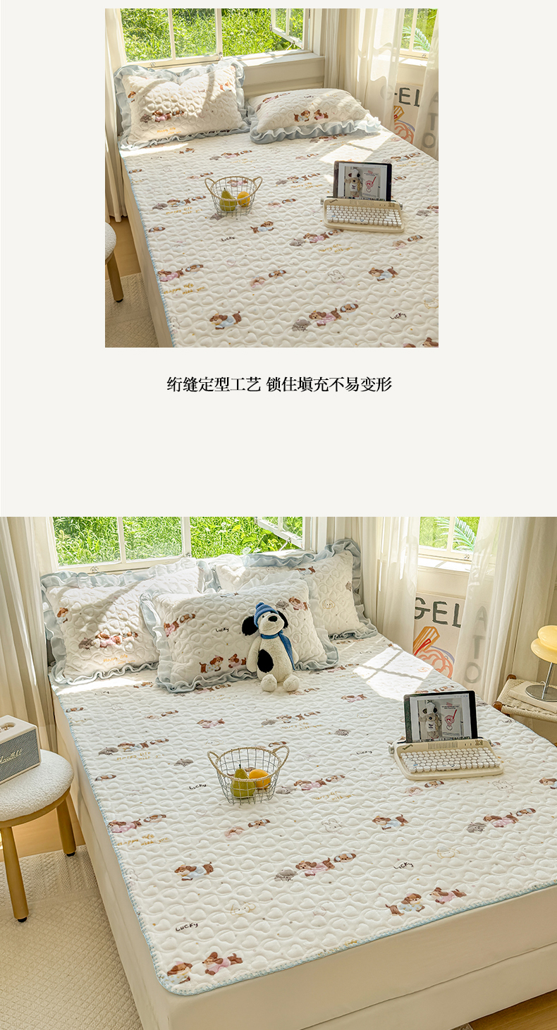 禧缘家纺(原梦想家) 2025新款牛奶绒三角针绑带款夹棉床笠床单 狗狗岛屿-绑带款