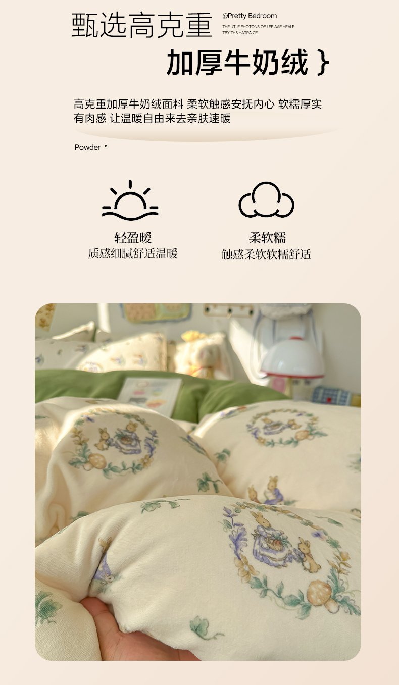 商品名称:韩巢家纺 2025新款双面高克重牛奶绒被套单件被罩 小兔幻境