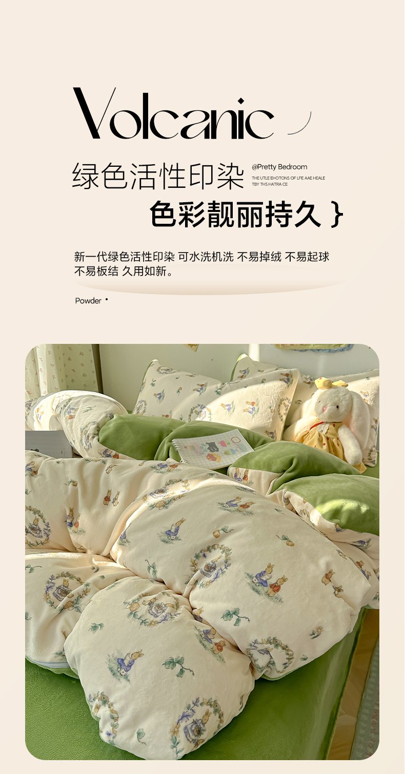 韩巢家纺 2025新款高克重印花牛奶绒床品四件套 爱丽丝,爱丽丝